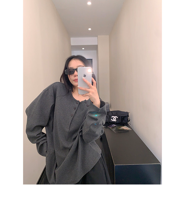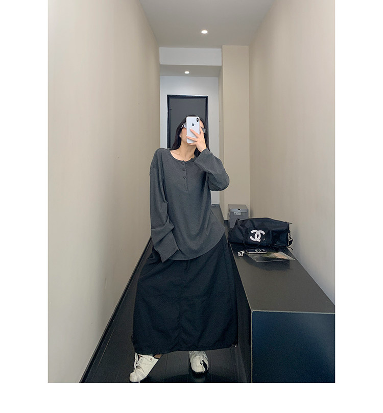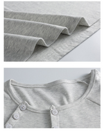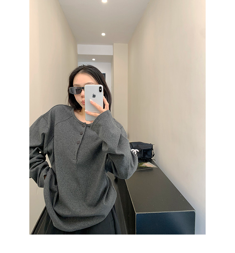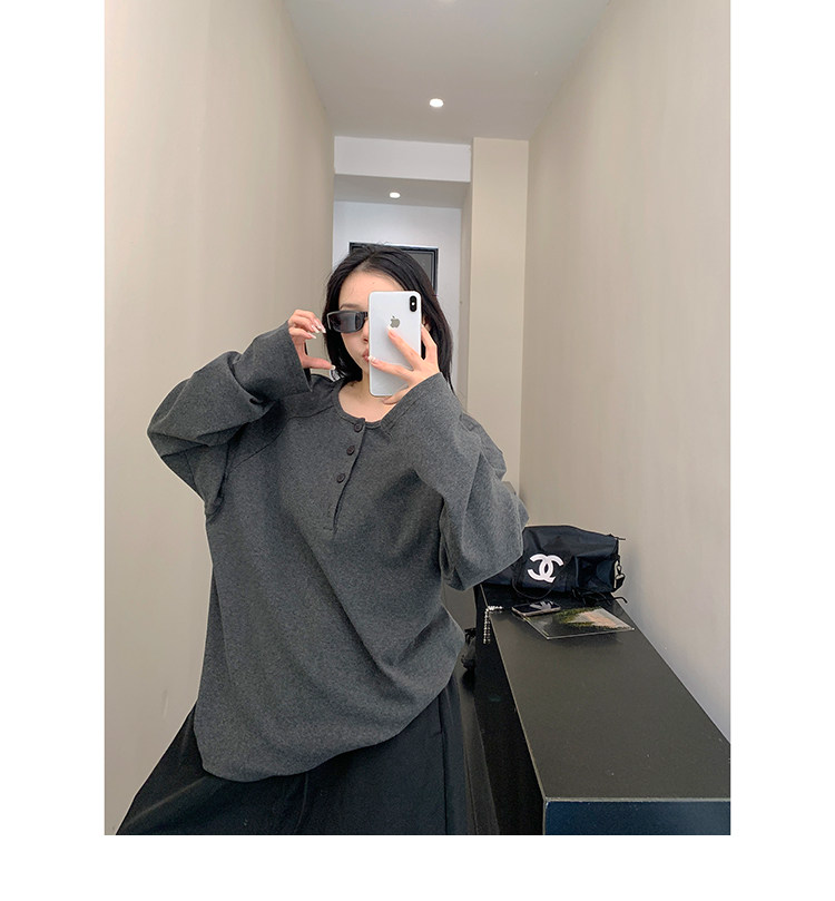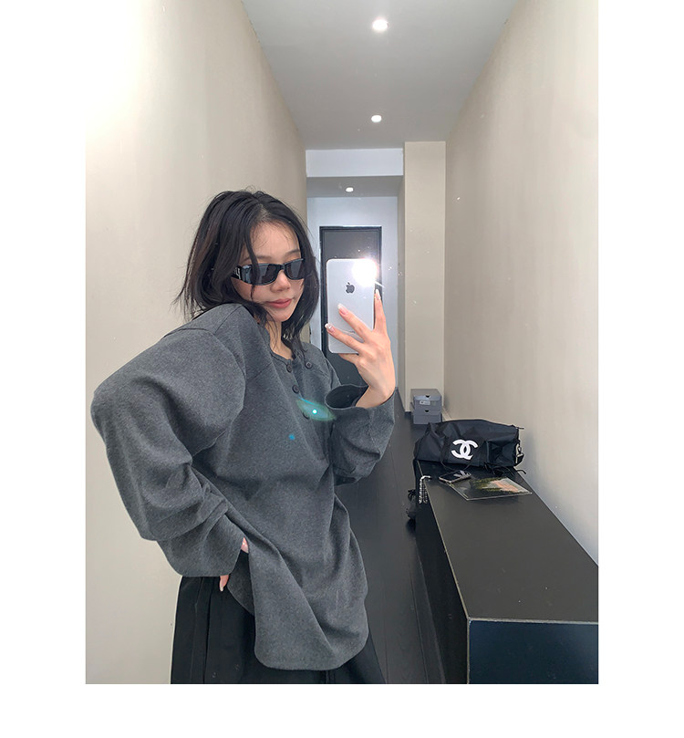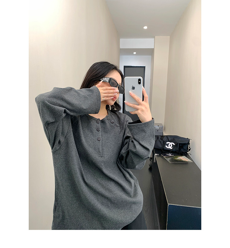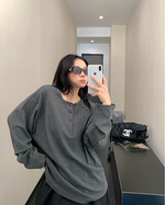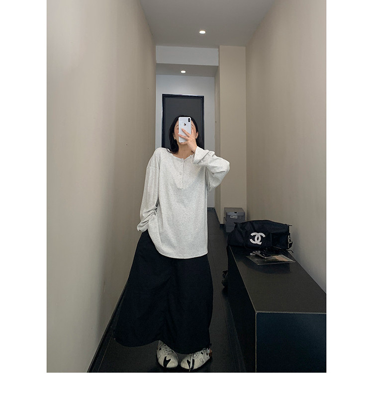 フロントボタンがアクセントになったヘンリーネックトップス。シンプルながらも程よいデザイン性で、着回し力抜群の一枚。ワイドパンツやキャップを合わせて、こなれたカジュアルに。 ✟Model✟