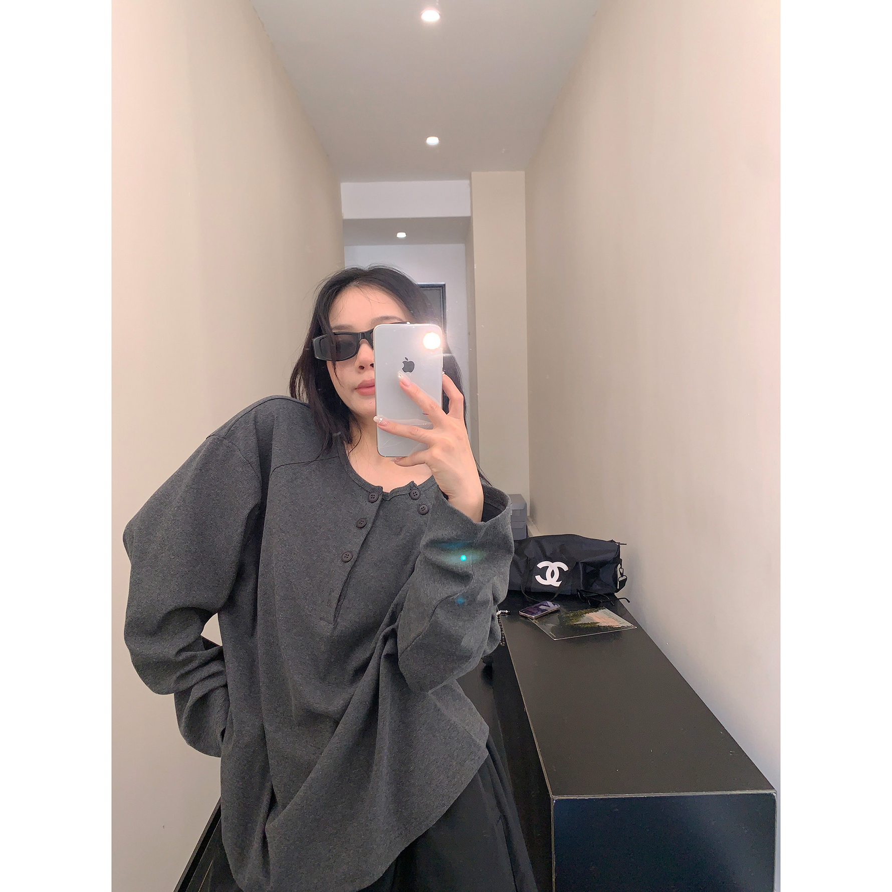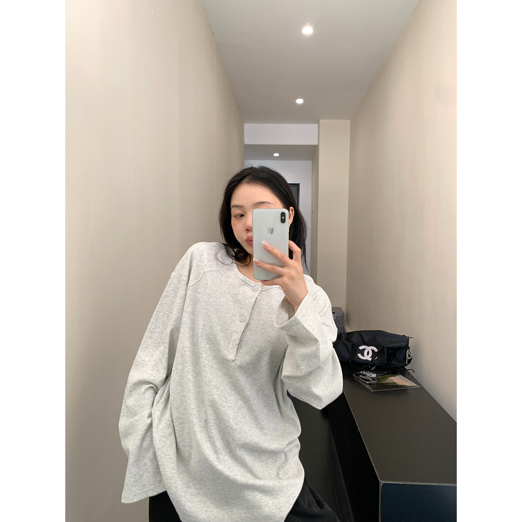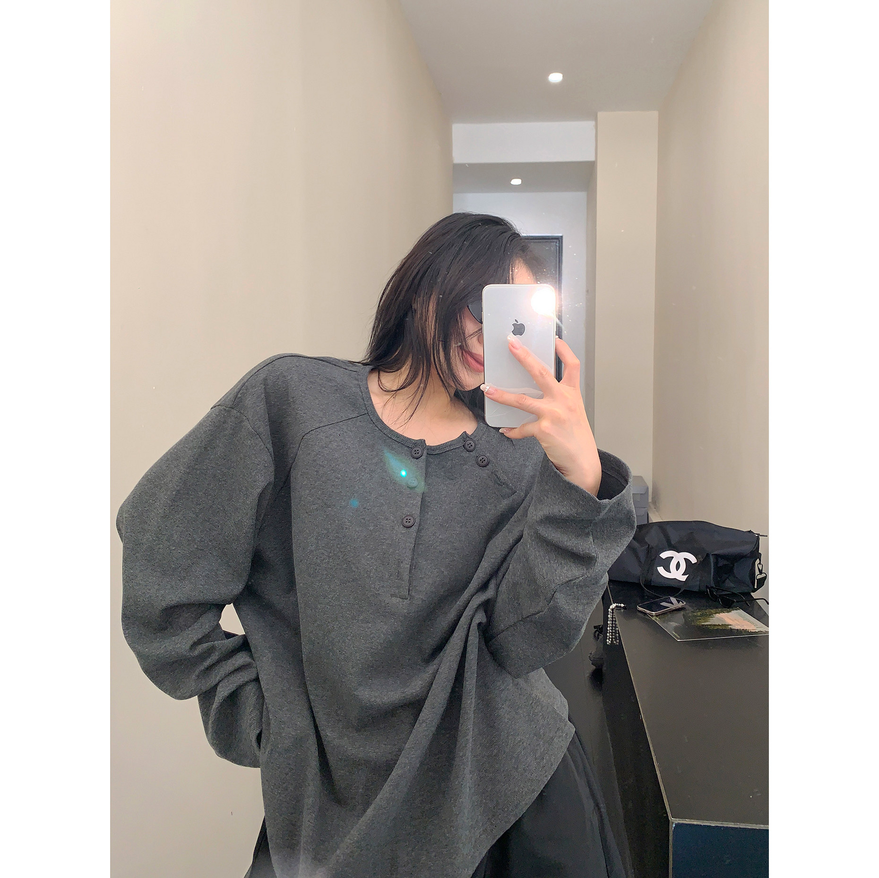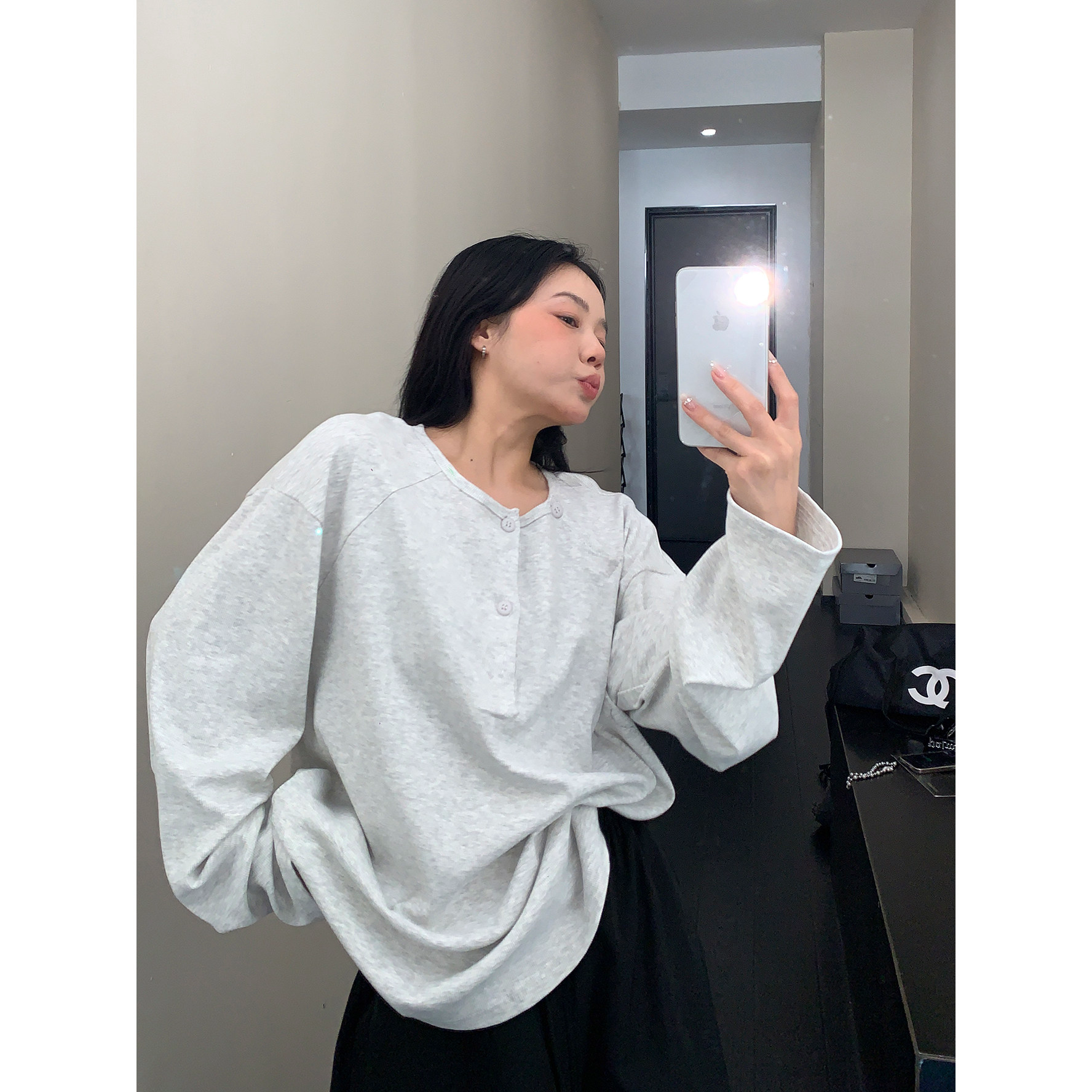 フロントボタンがアクセントになったヘンリーネックトップス。シンプルながらも程よいデザイン性で、着回し力抜群の一枚。ワイドパンツやキャップを合わせて、こなれたカジュアルに。 ✟Model✟
