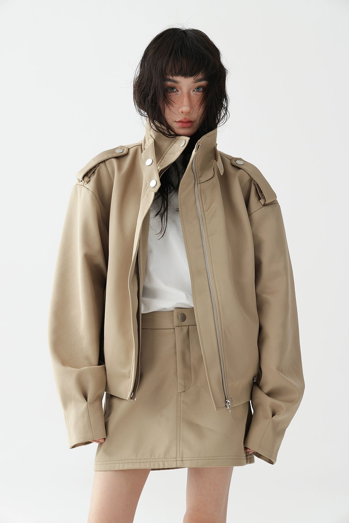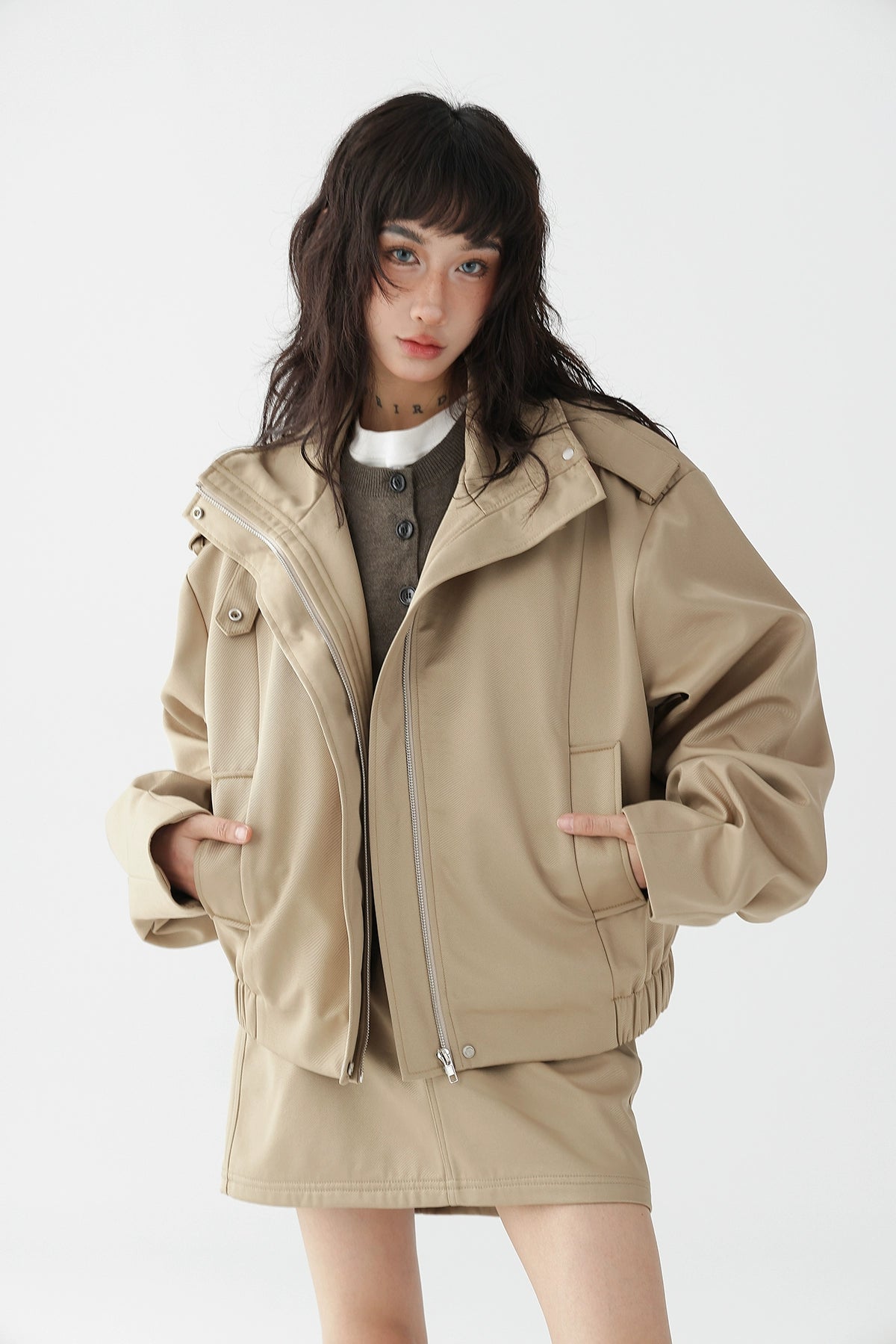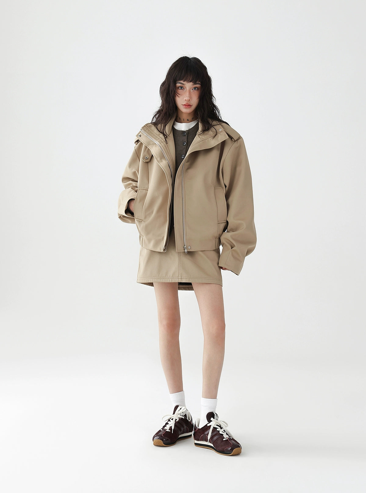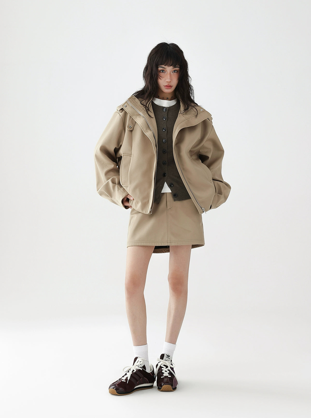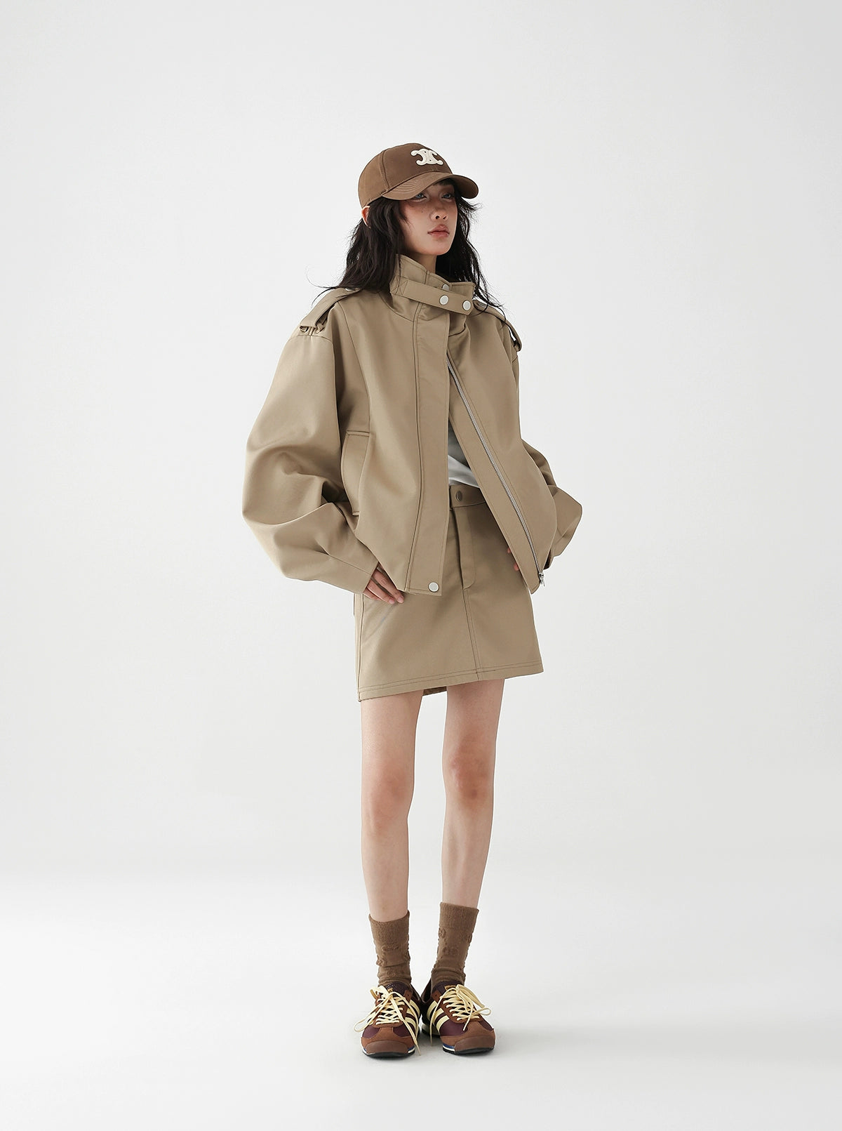 ブルゾンとスカートのセットアップは、カジュアルだけどおしゃれに見える!
