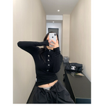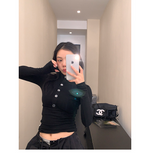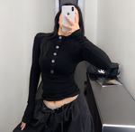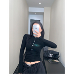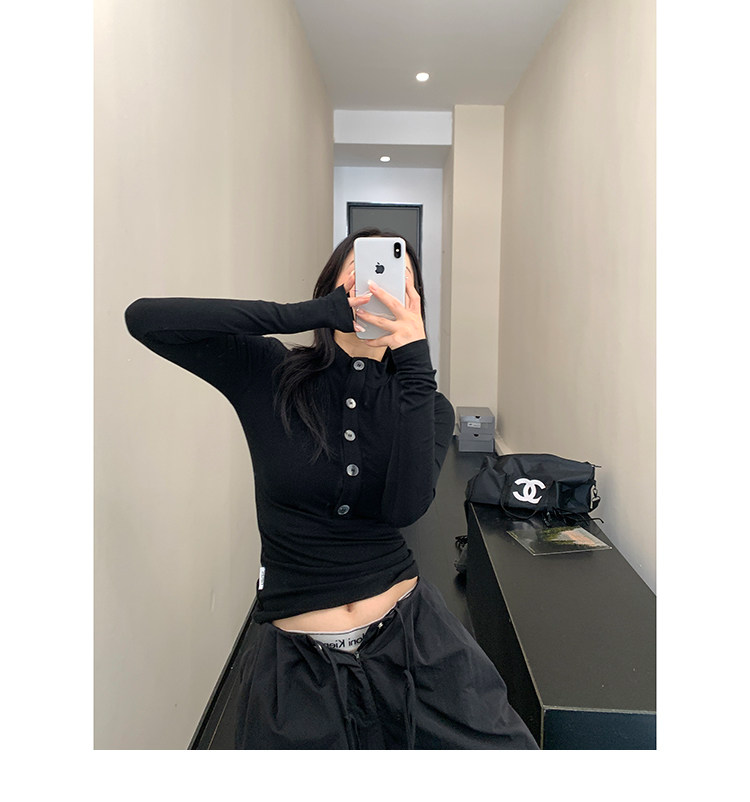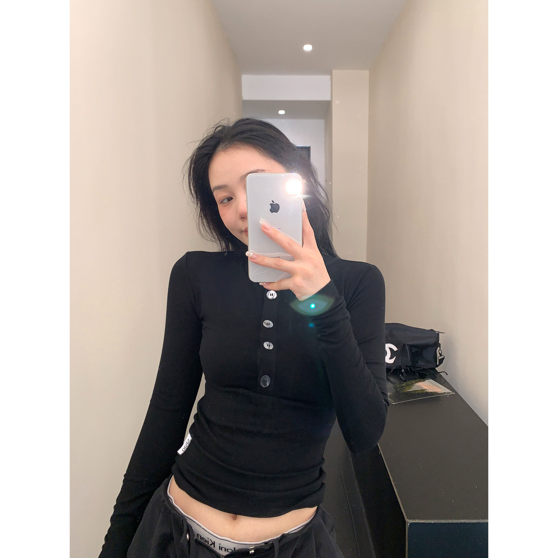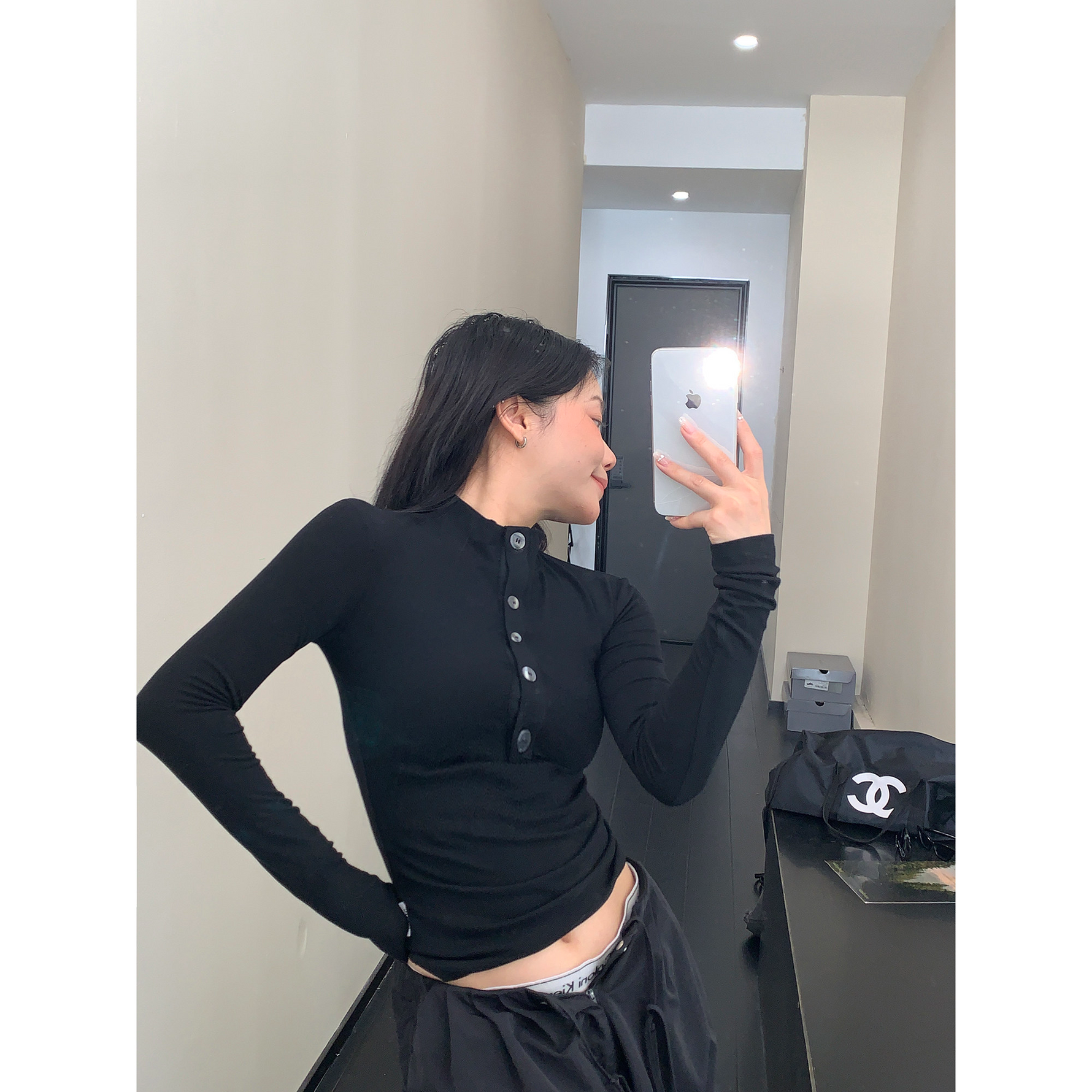 タイトなシルエットがスタイルアップを叶える、ヘンリーネックのロンT。