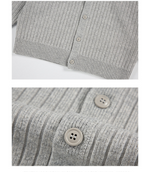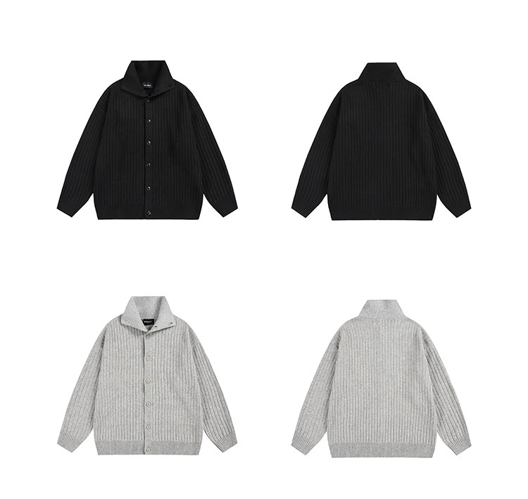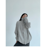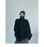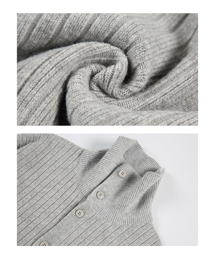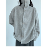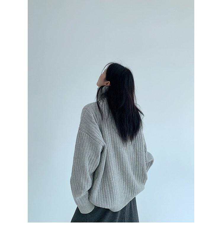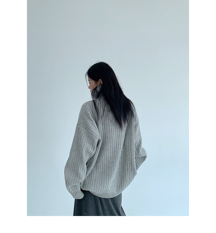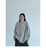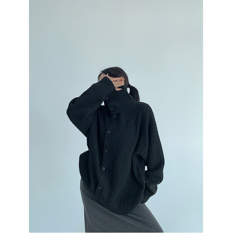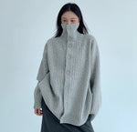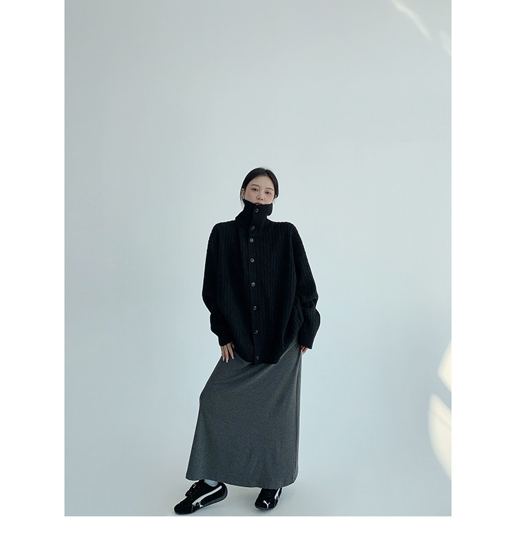 首元まで包み込むハイネック仕様が特徴のニットカーディガン。