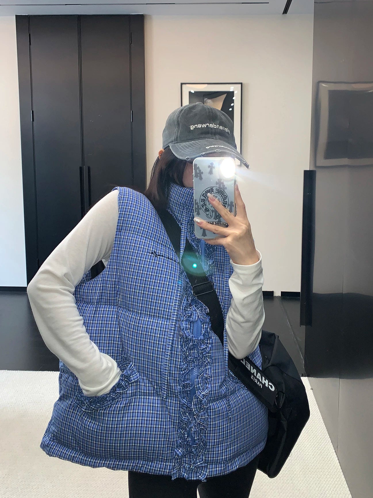 カジュアルなベストも、フリルとチェック柄で周りと差がつく主役級アイテムに大変身!