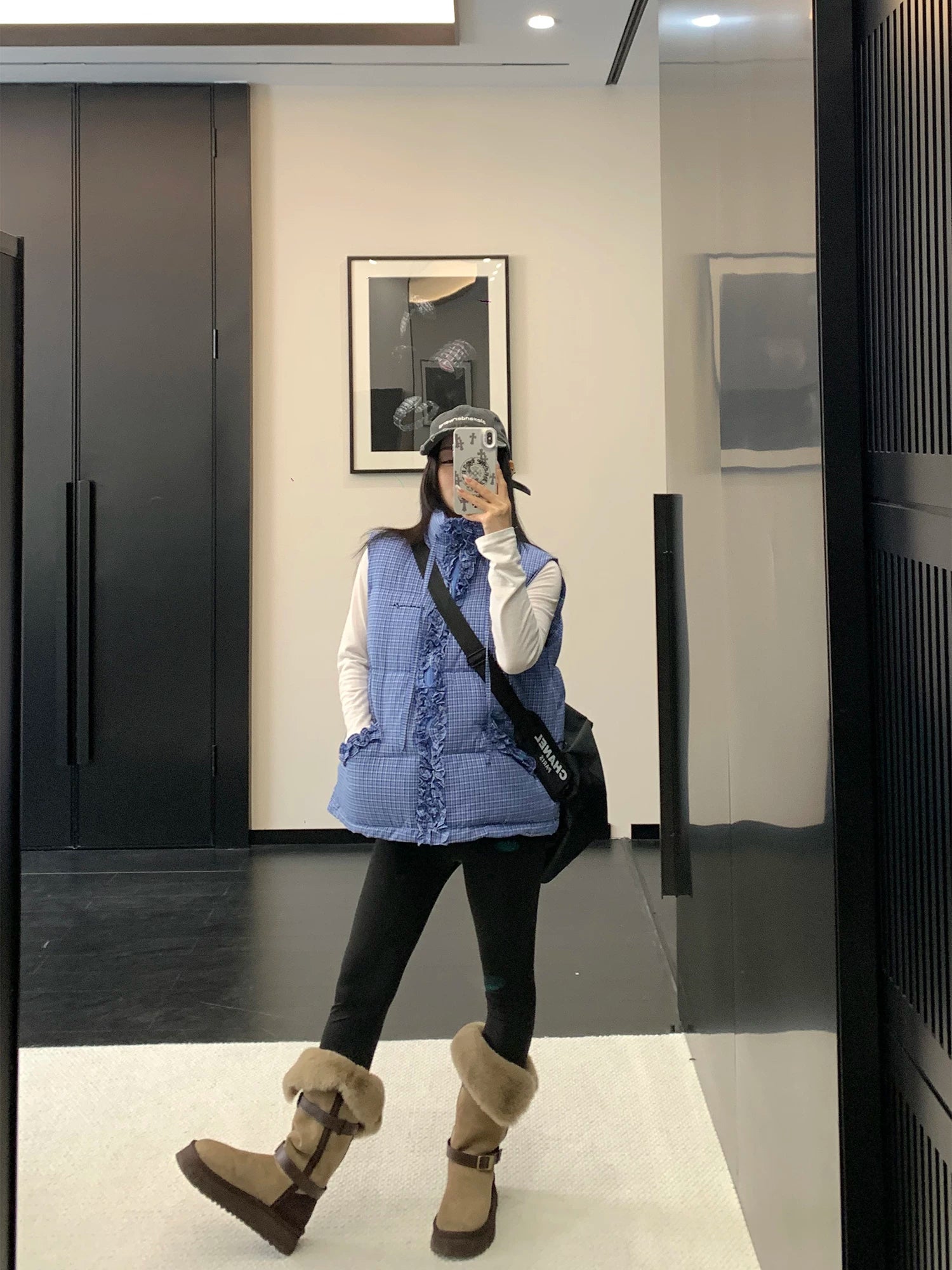 Frill Plaid Puffer Vest / OS10396