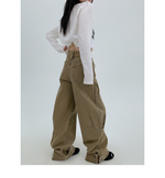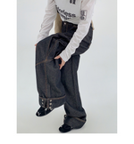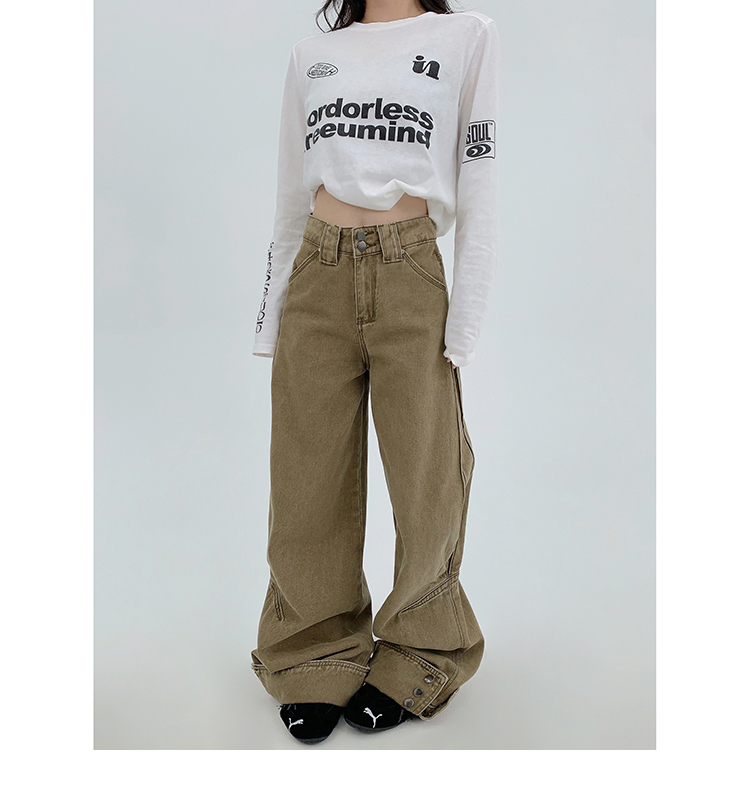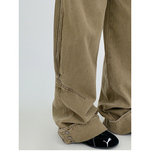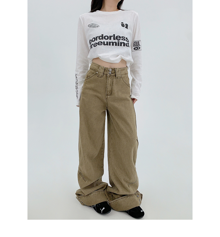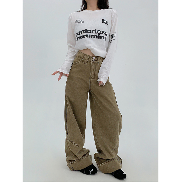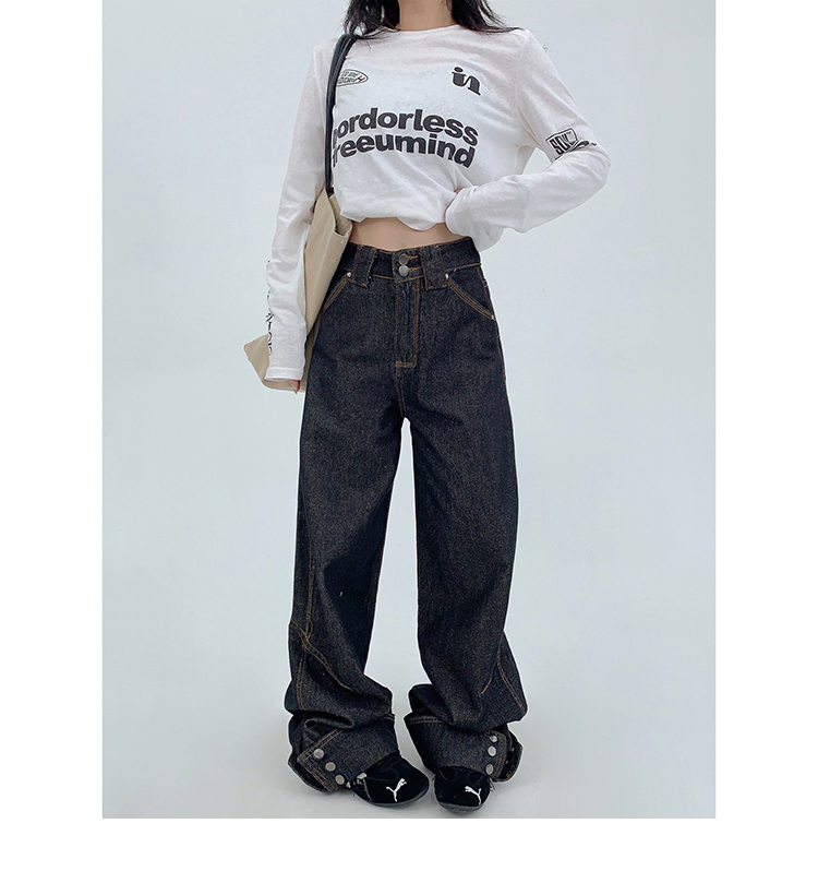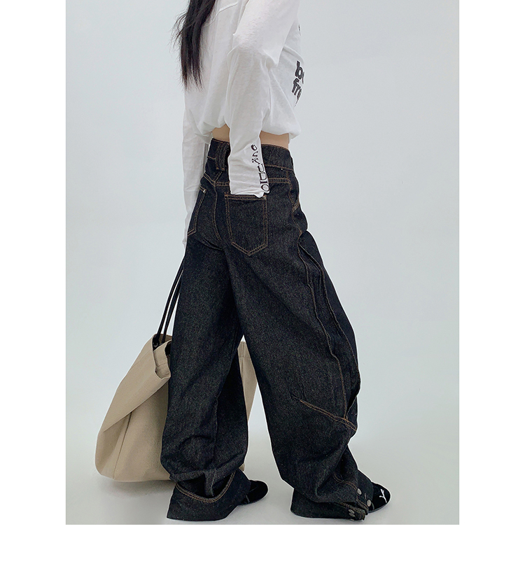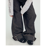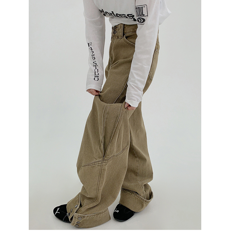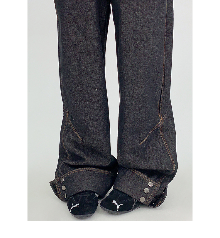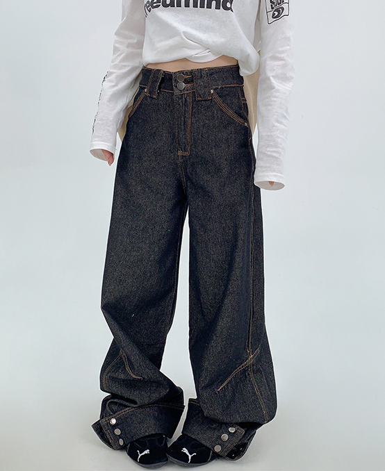 裾のスナップボタンがユニークな、デザイン性の高いワイドデニム。