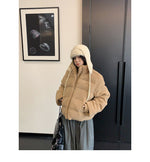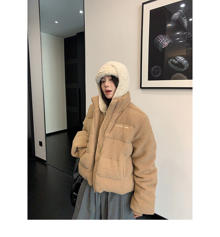 もこもこのボアとキルティングの組み合わせが新しい、フライトキャップ付きジャケット。