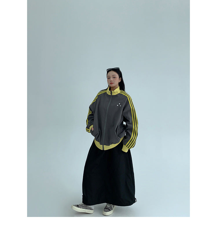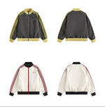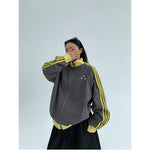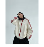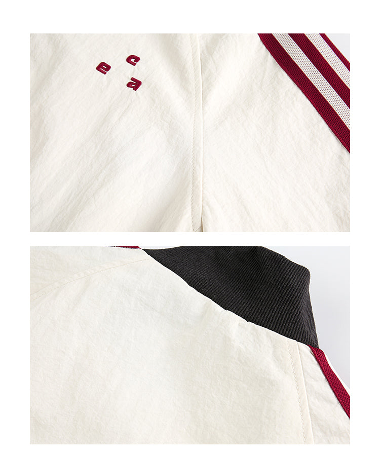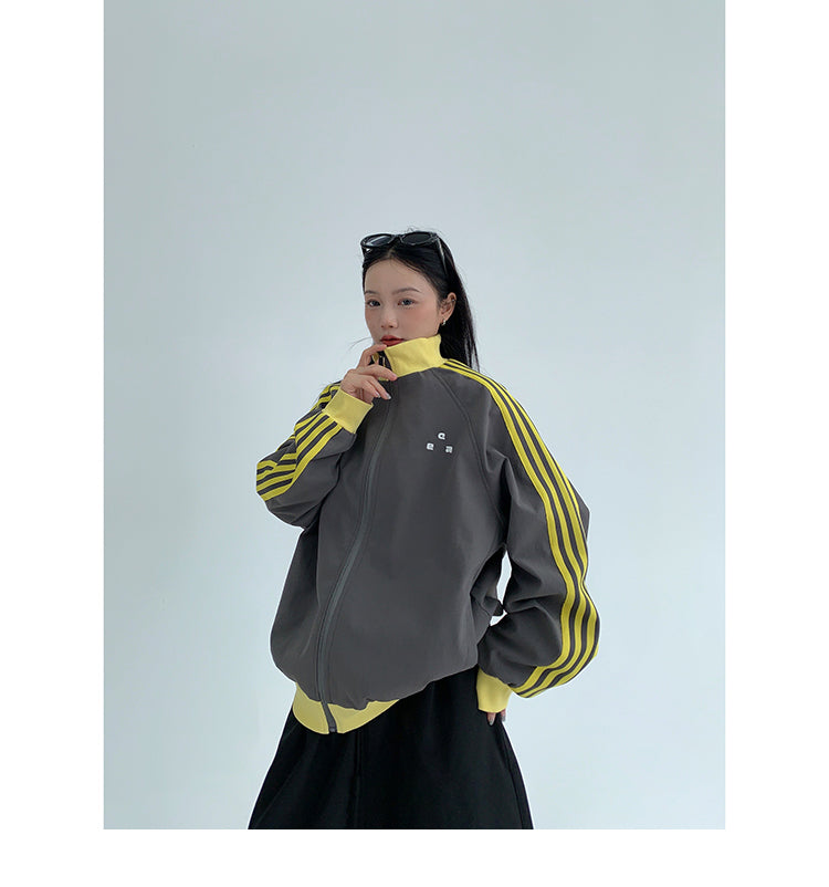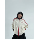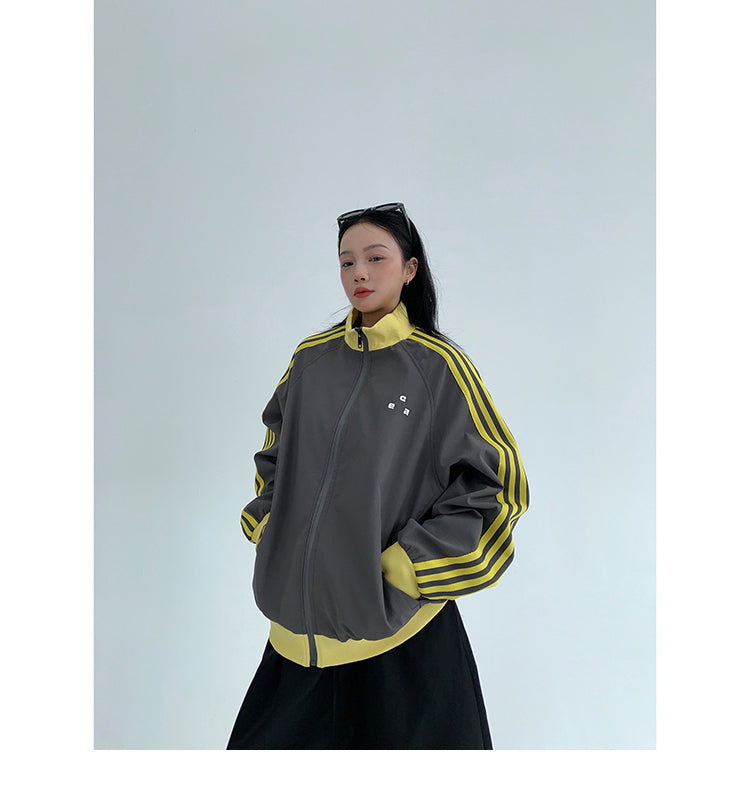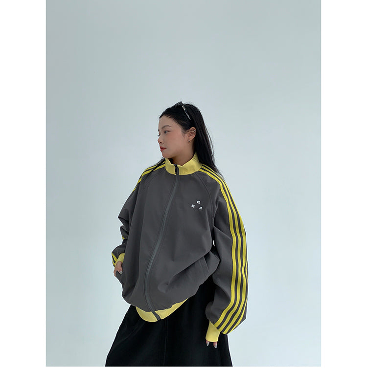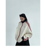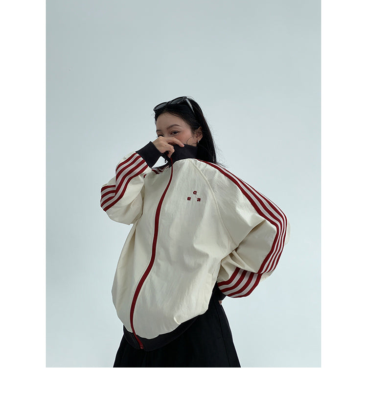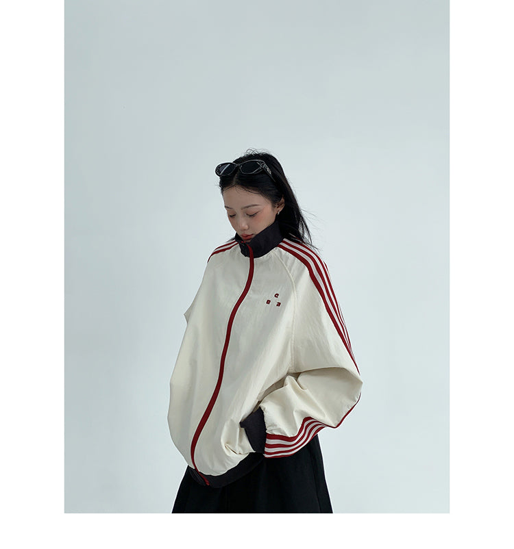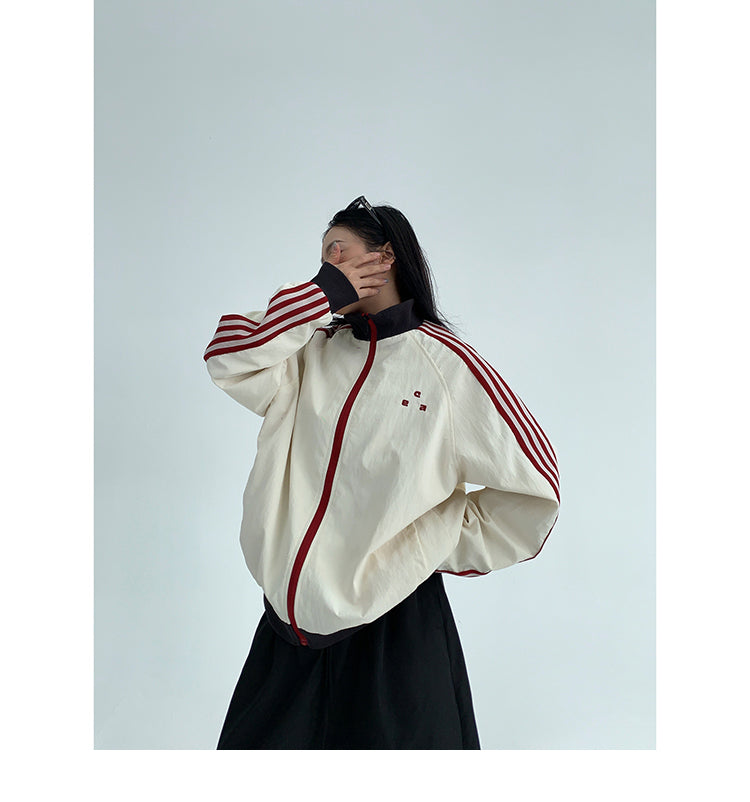 レトロな配色と袖のラインが目を引く、スポーティーなトラックジャケット。