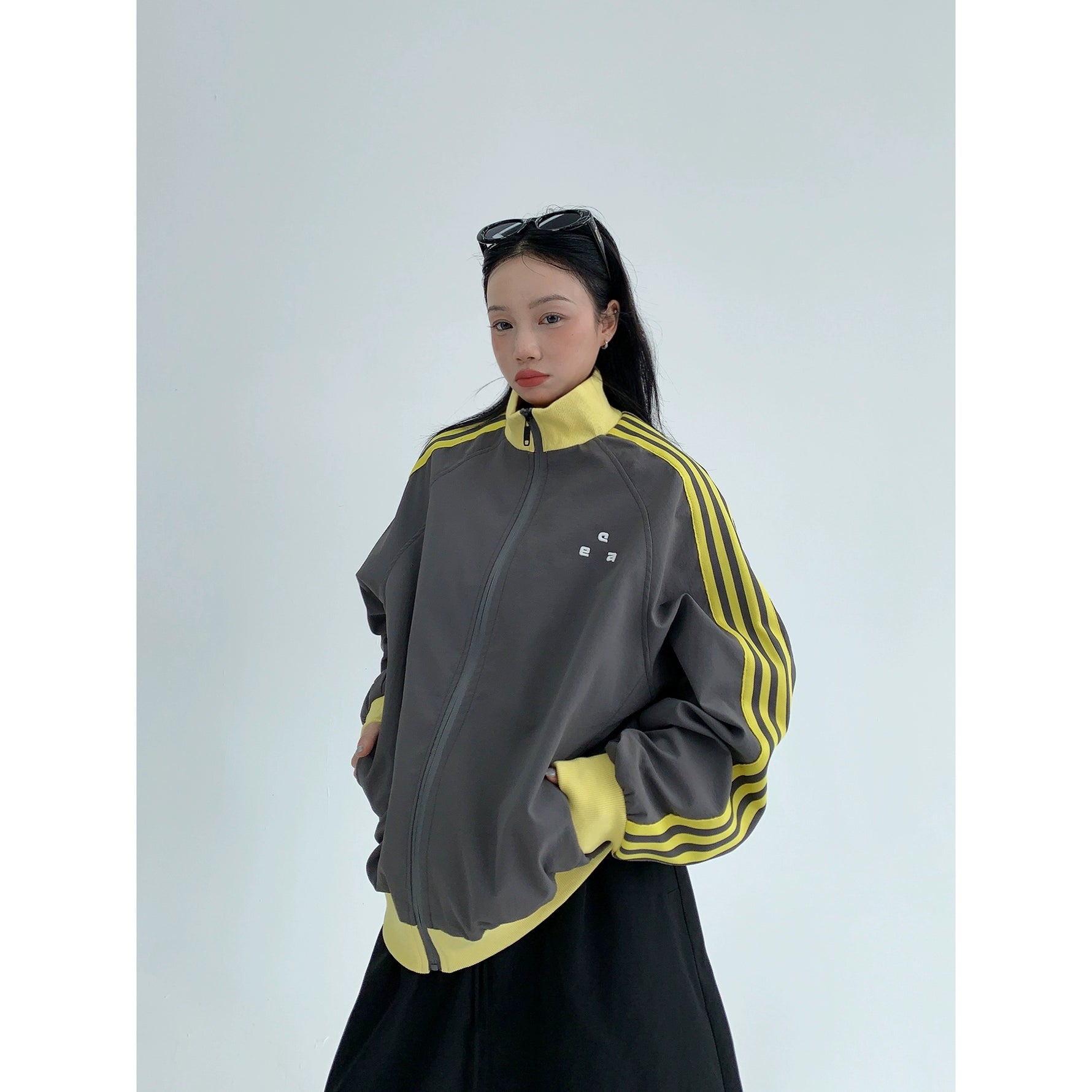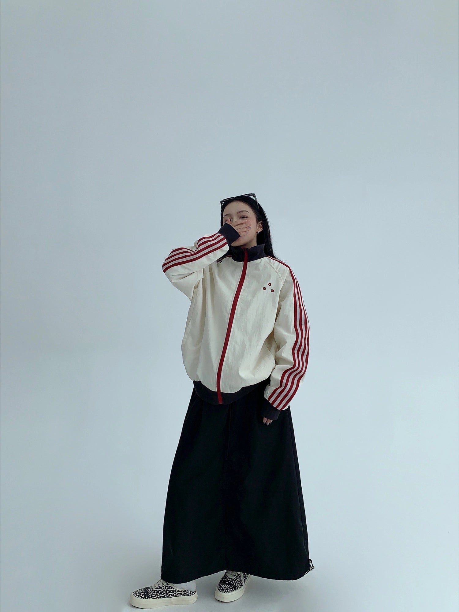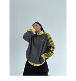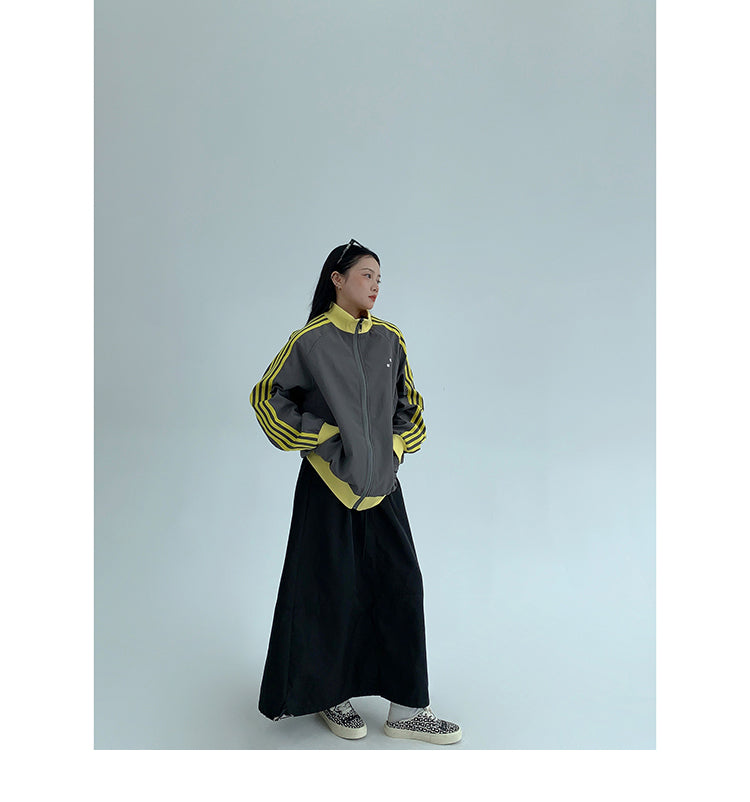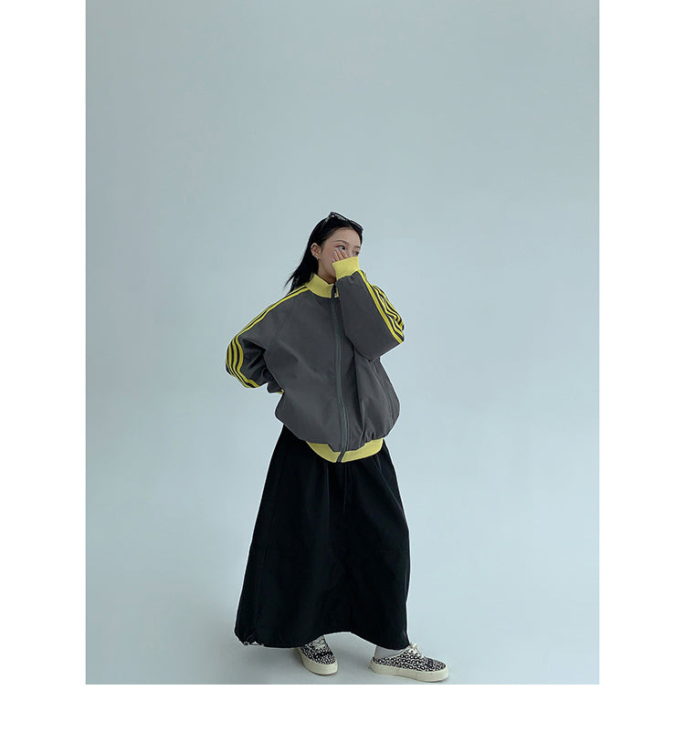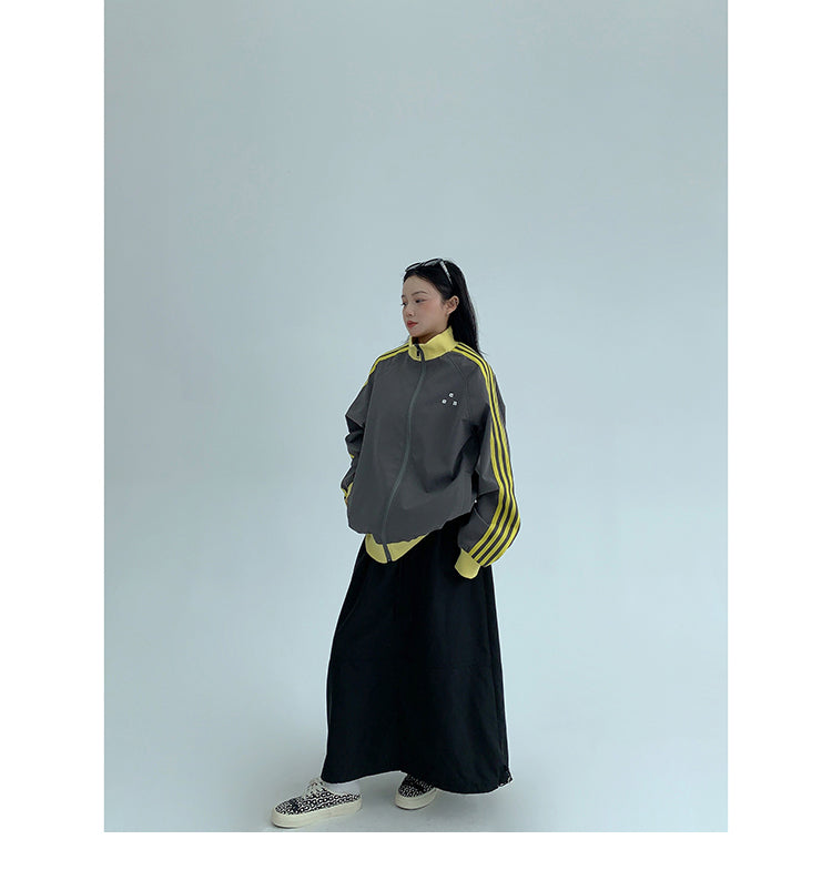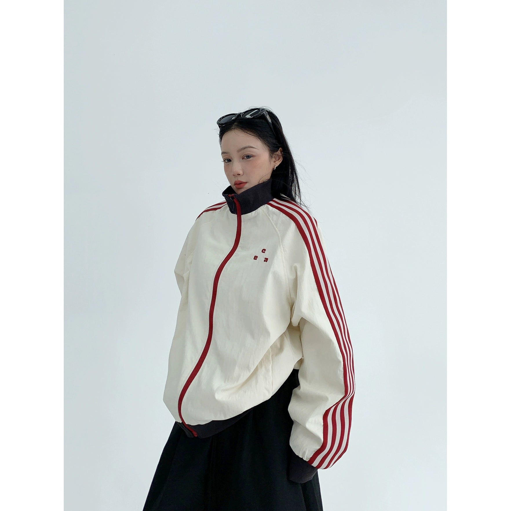 レトロな配色と袖のラインが目を引く、スポーティーなトラックジャケット。