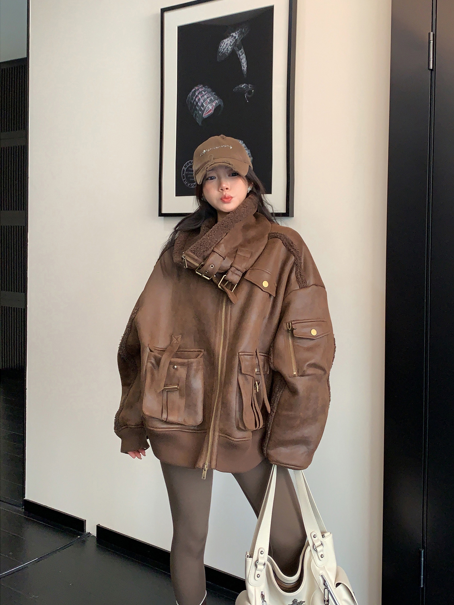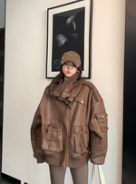 ヴィンテージ感たっぷりのフライトデザインが目を引く、存在感抜群のボアジャケット。