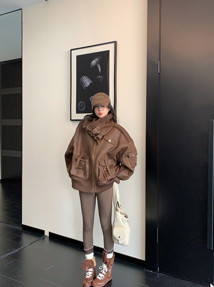 ワイドパンツやレギンスと合わせて、無骨さと抜け感をミックスしたコーデがおすすめ。