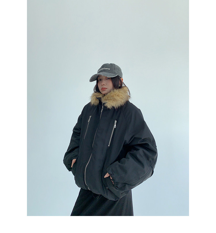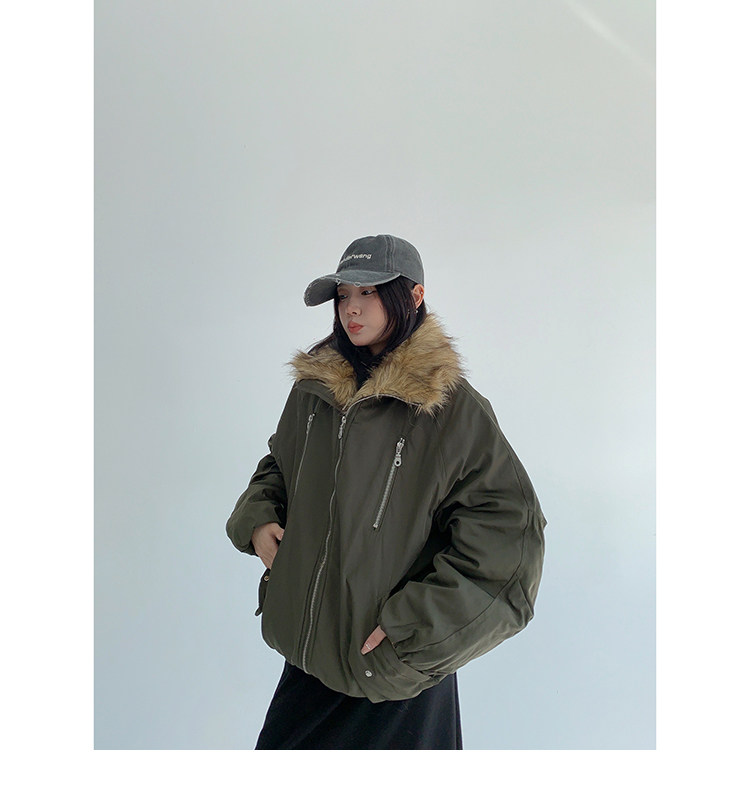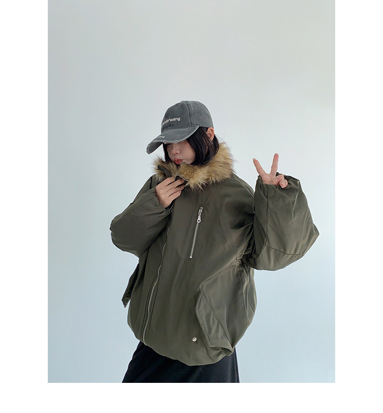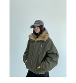 ウォッシュ加工がお洒落なコーデュロイ素材に、ボリュームファーのフードが付いたアウター。
