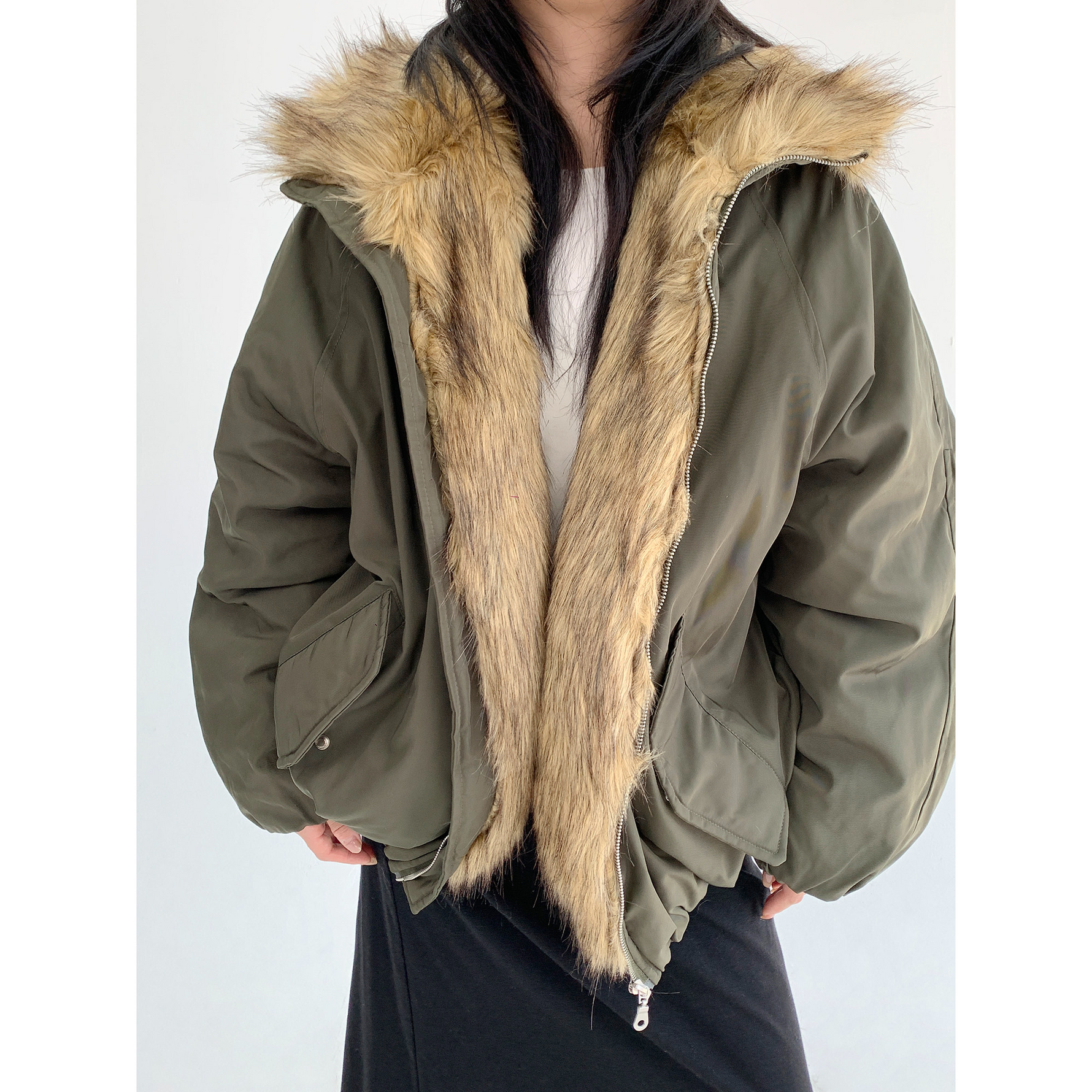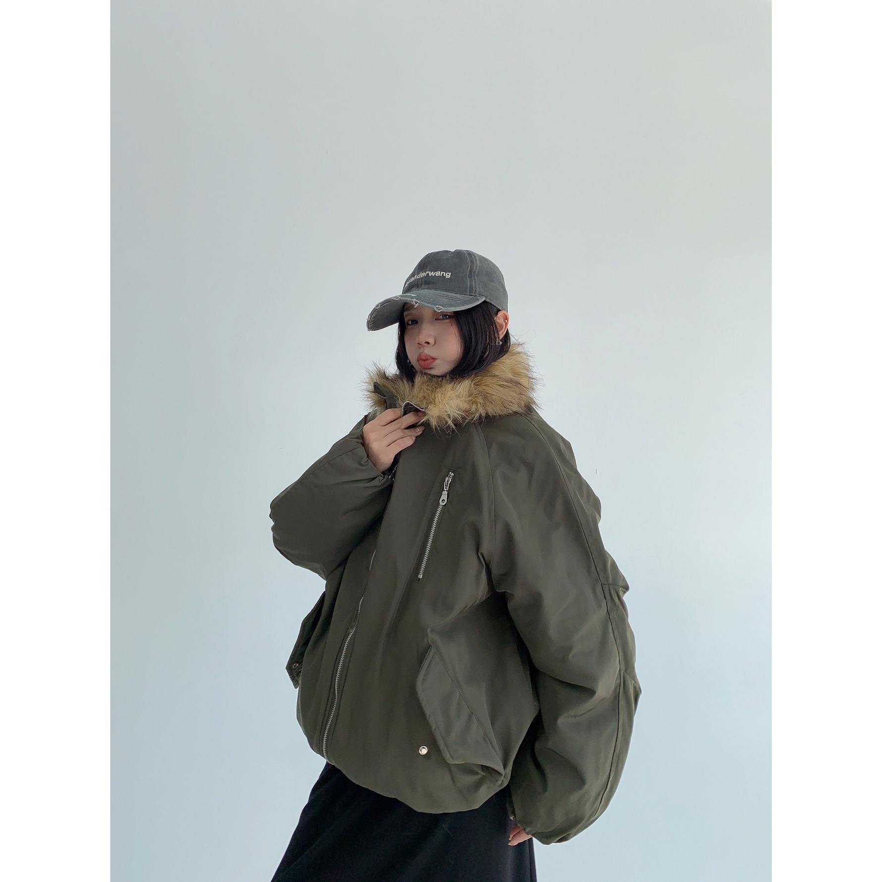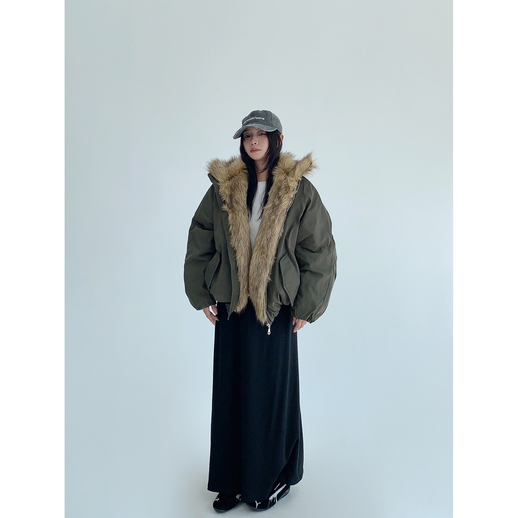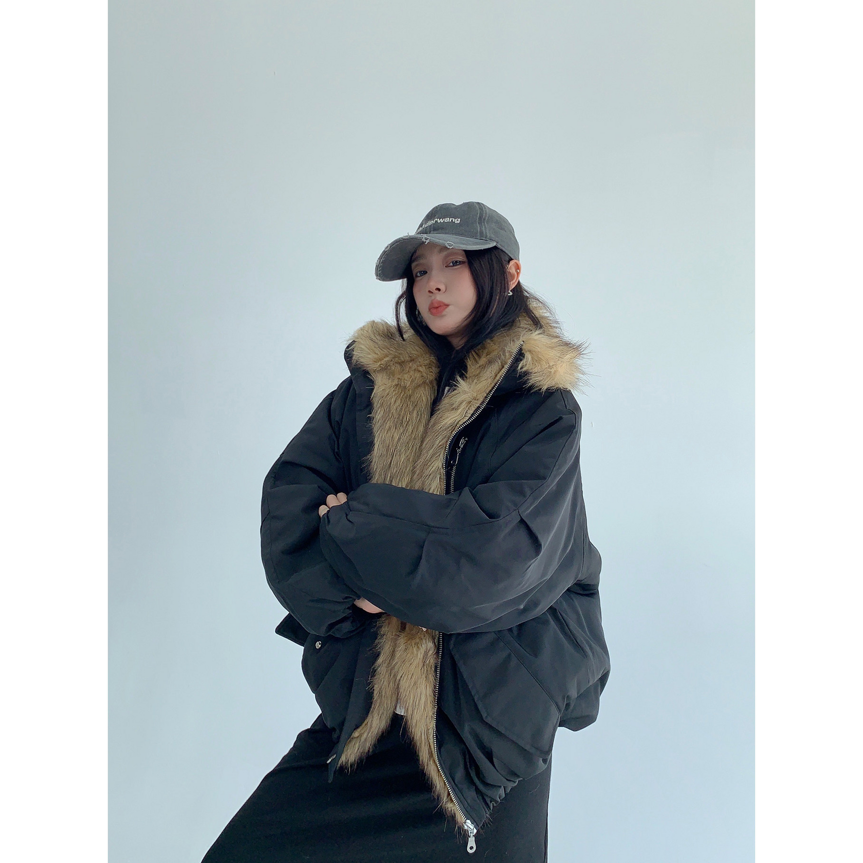 ゆったりとしたシルエットで中に着込めるから、真冬のストリートコーデもバッチリ決まる。