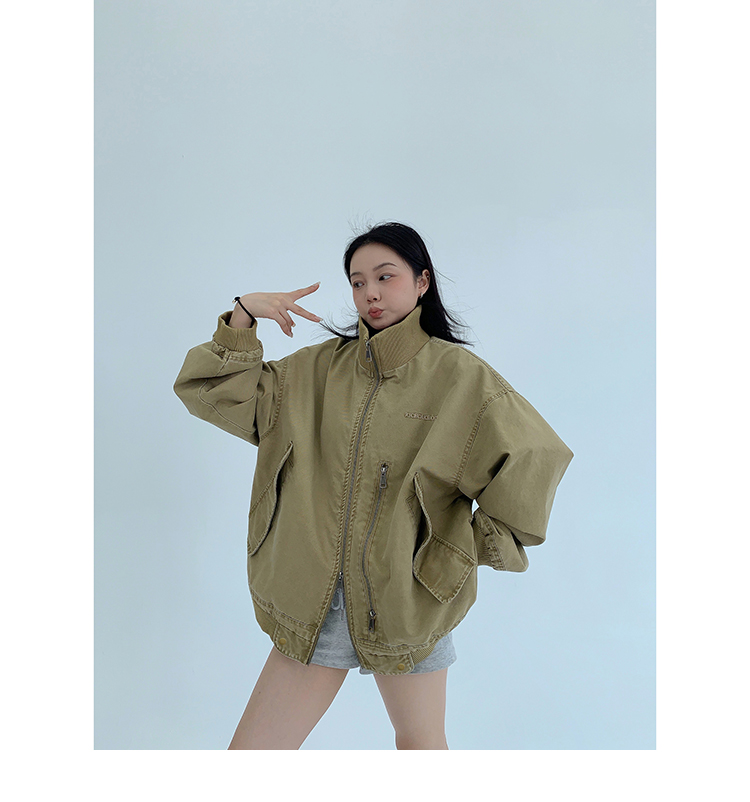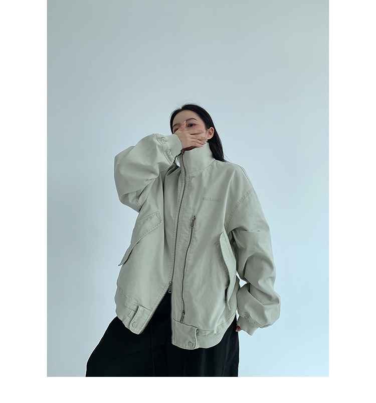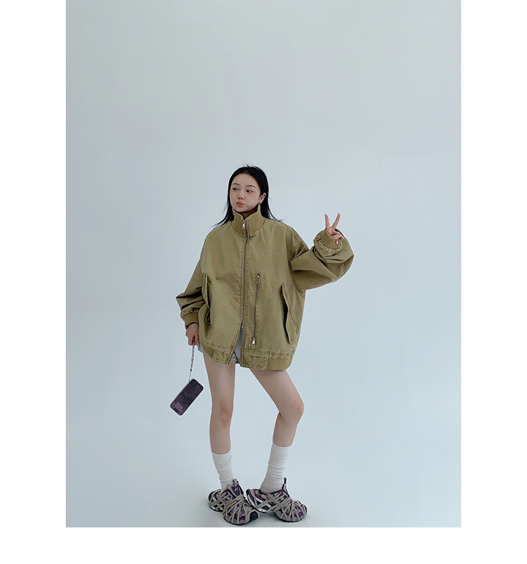複数のジップや大きなポケットが、コーデに立体感とアクセントを加えてくれるよ。