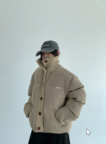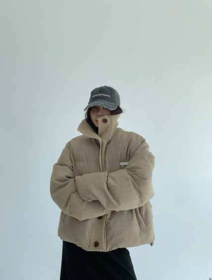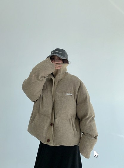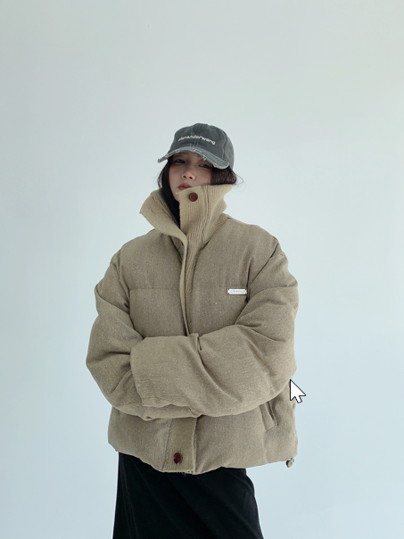 もこもこ素材とハイネックデザインが超あったかい、ショート丈のダウンジャケット。