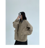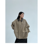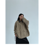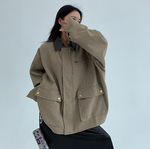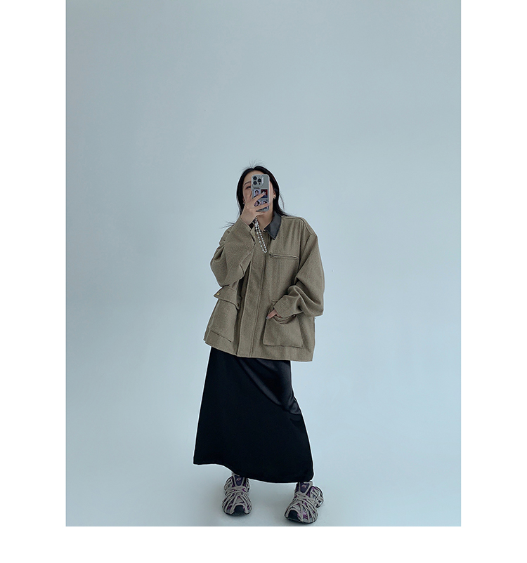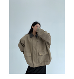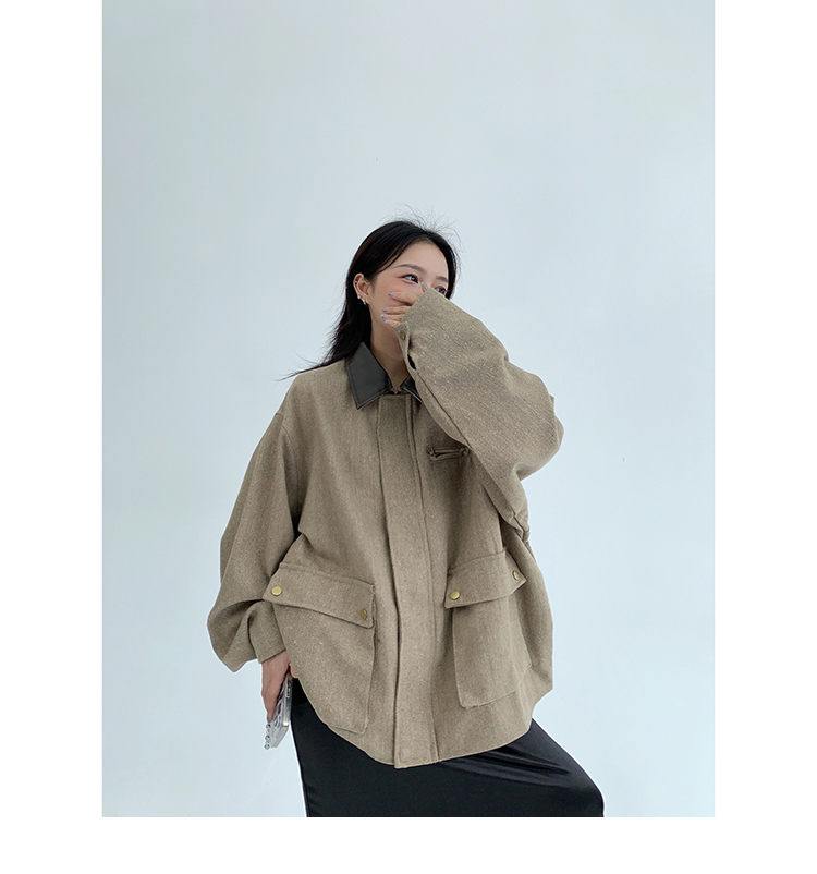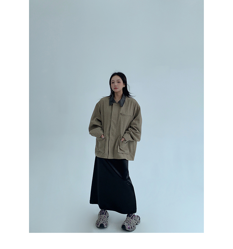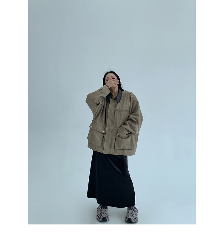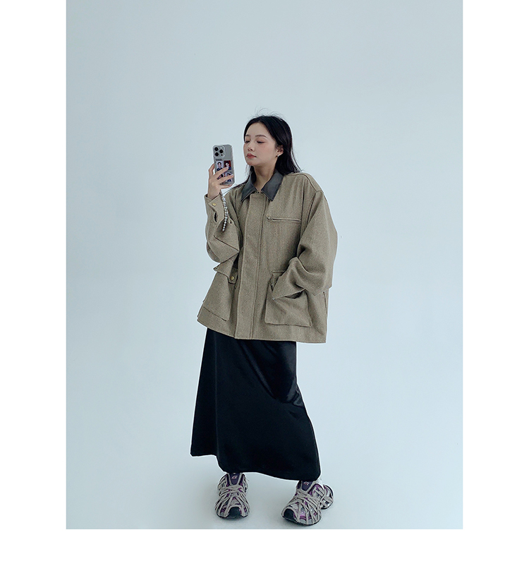襟の異素材切り替えがお洒落な、ヴィンテージライクなブルゾン。