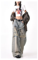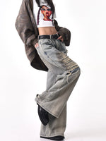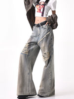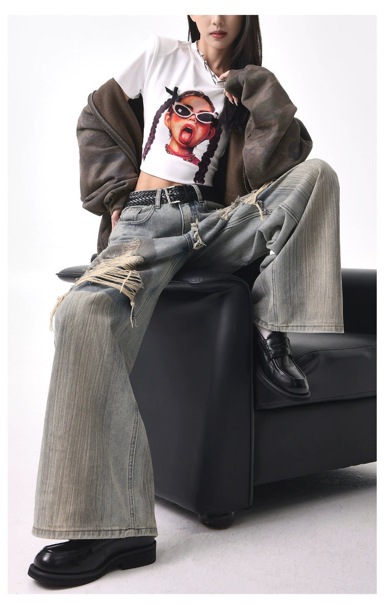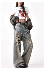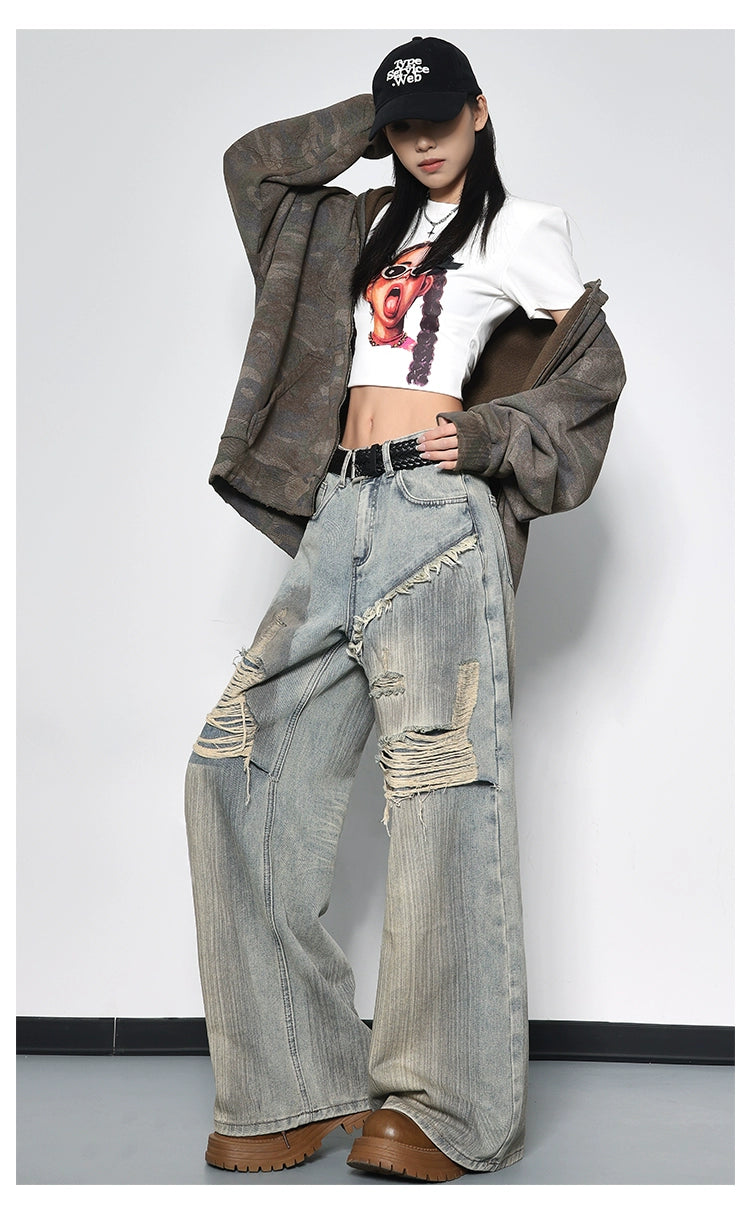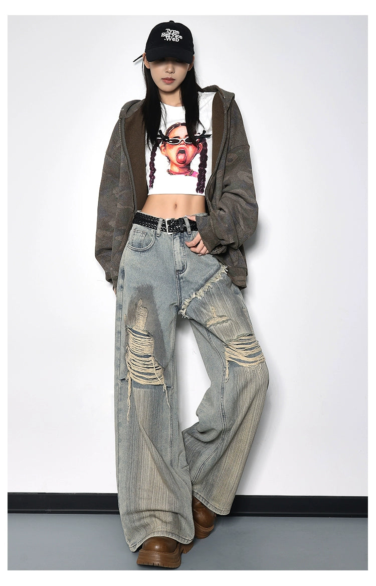 ダメージ加工のデニムワイドパンツは、ルーズなシルエットが超クール!