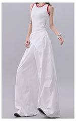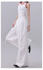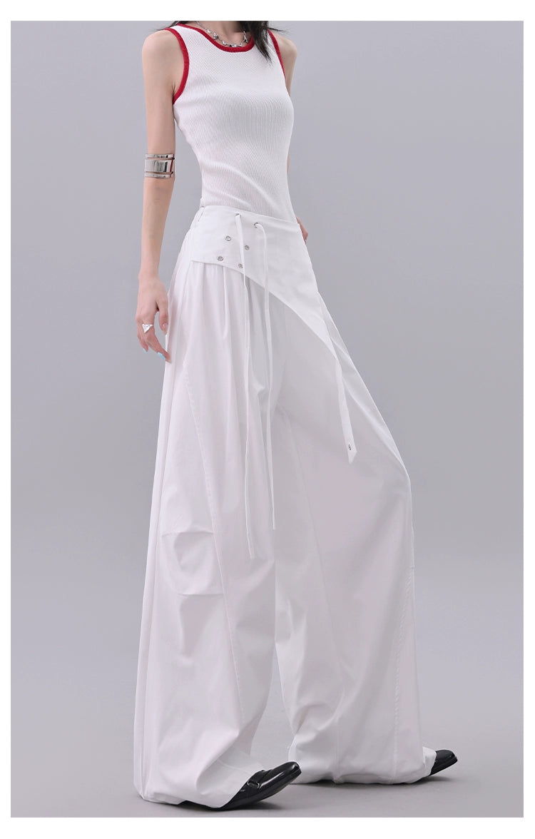 ウエストパーツがアクセントのデザインワイドパンツ。