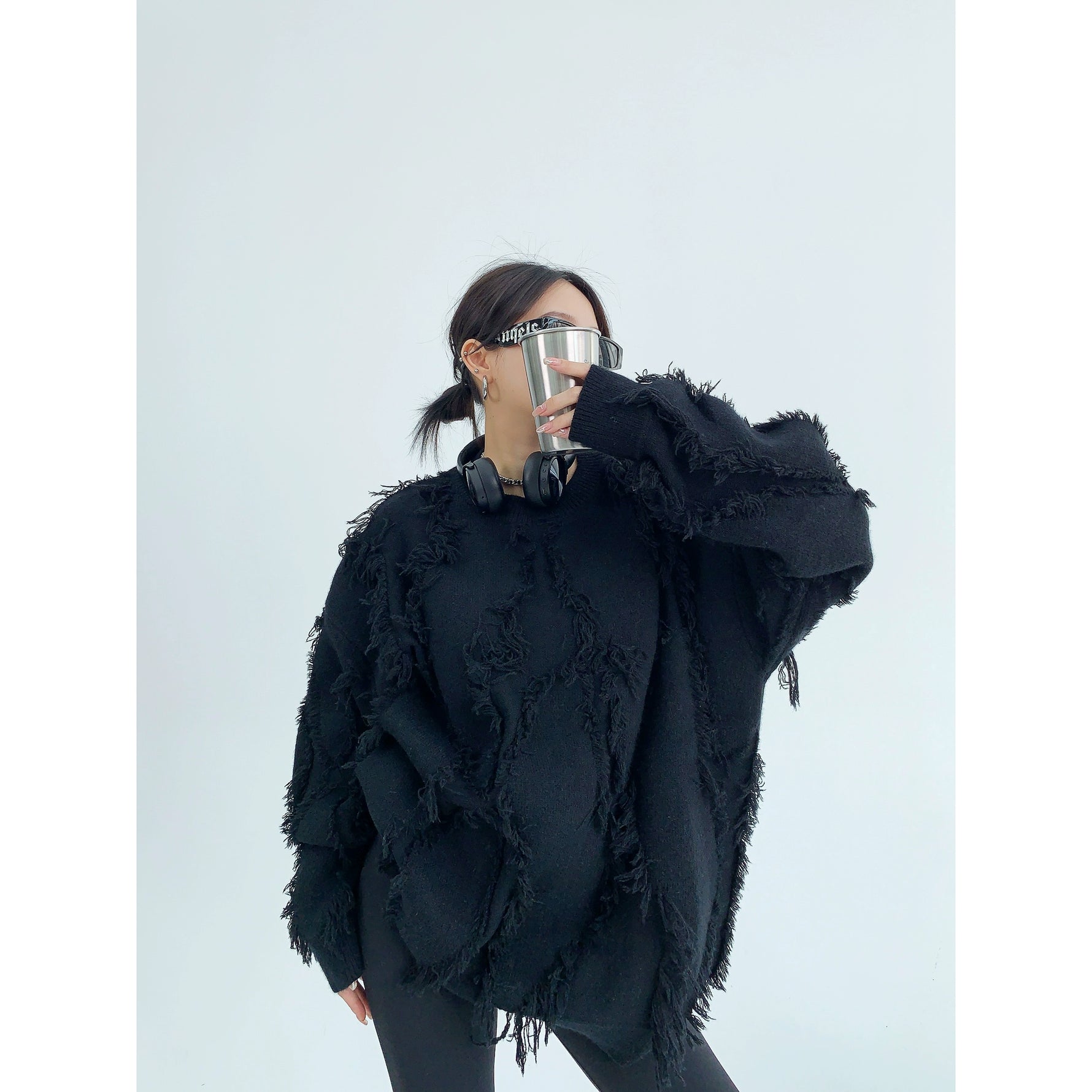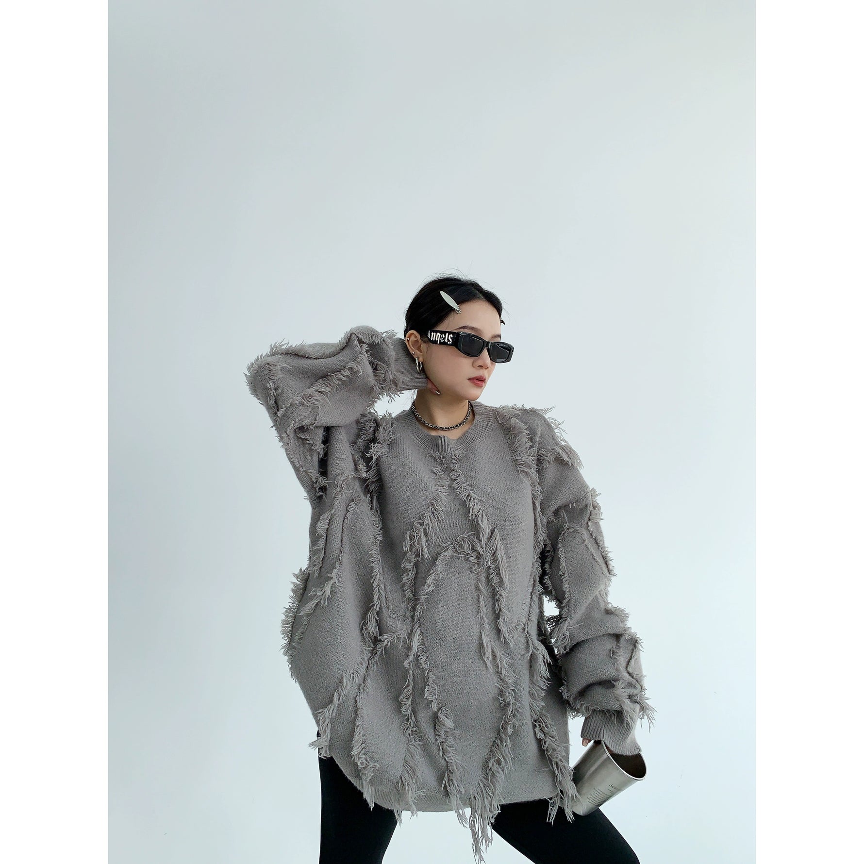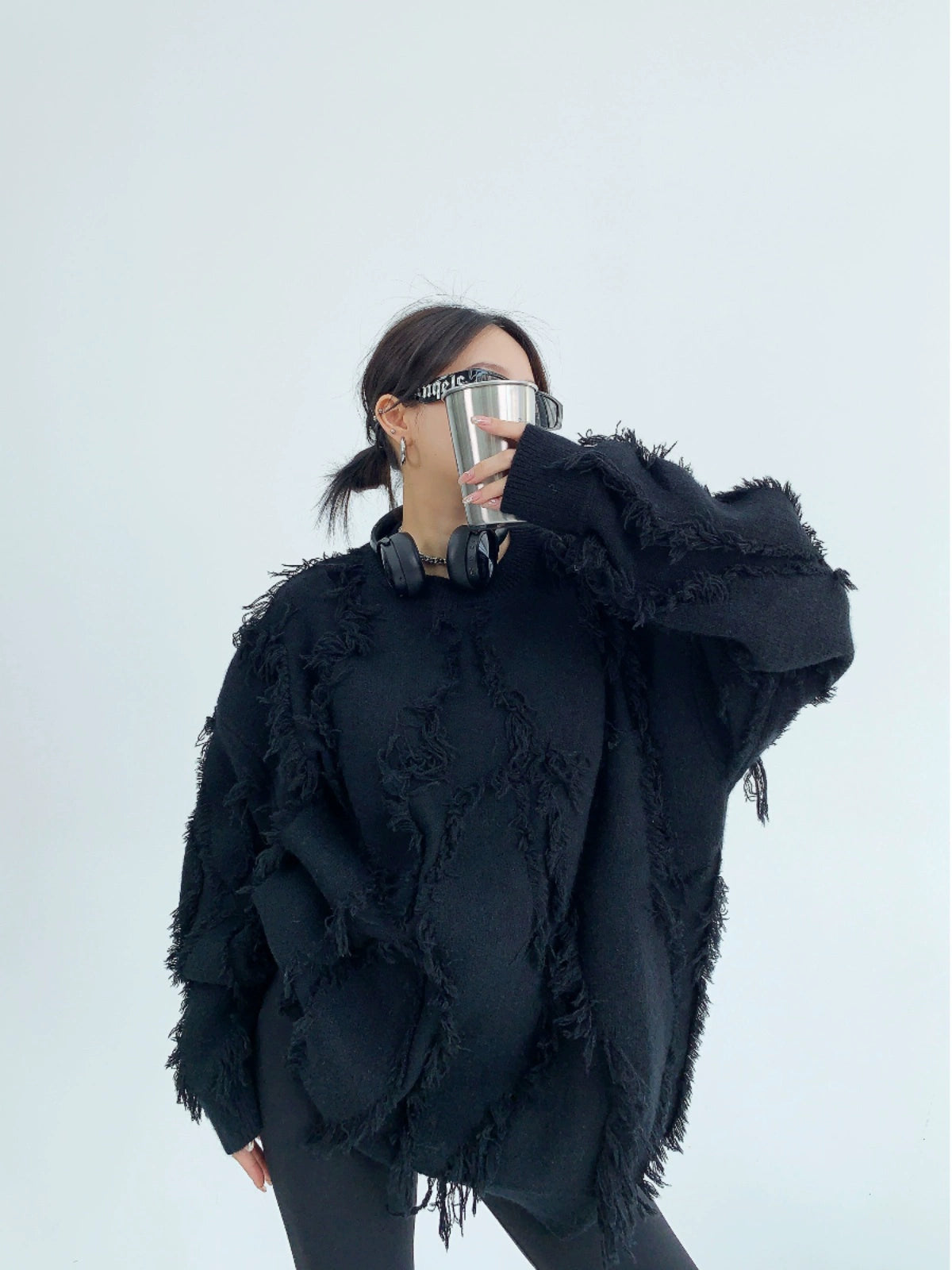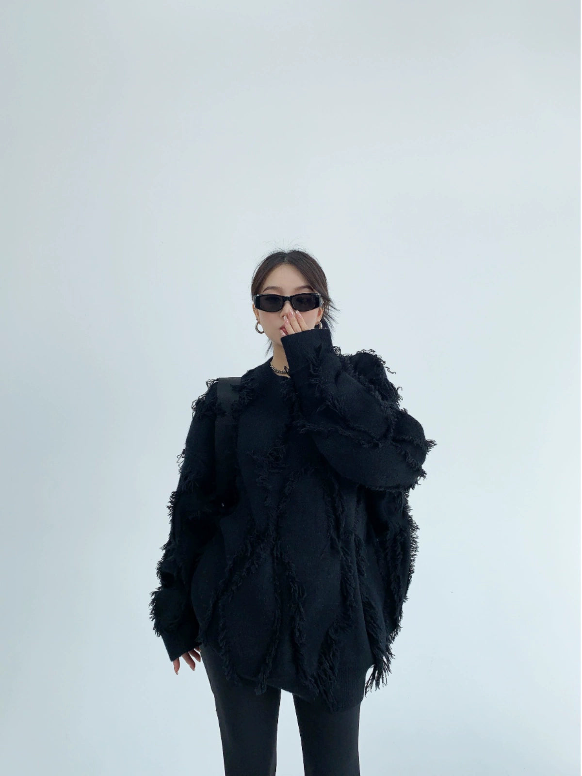 さっと一枚で着てパッと目を引く主役級シャギーニットトップス。