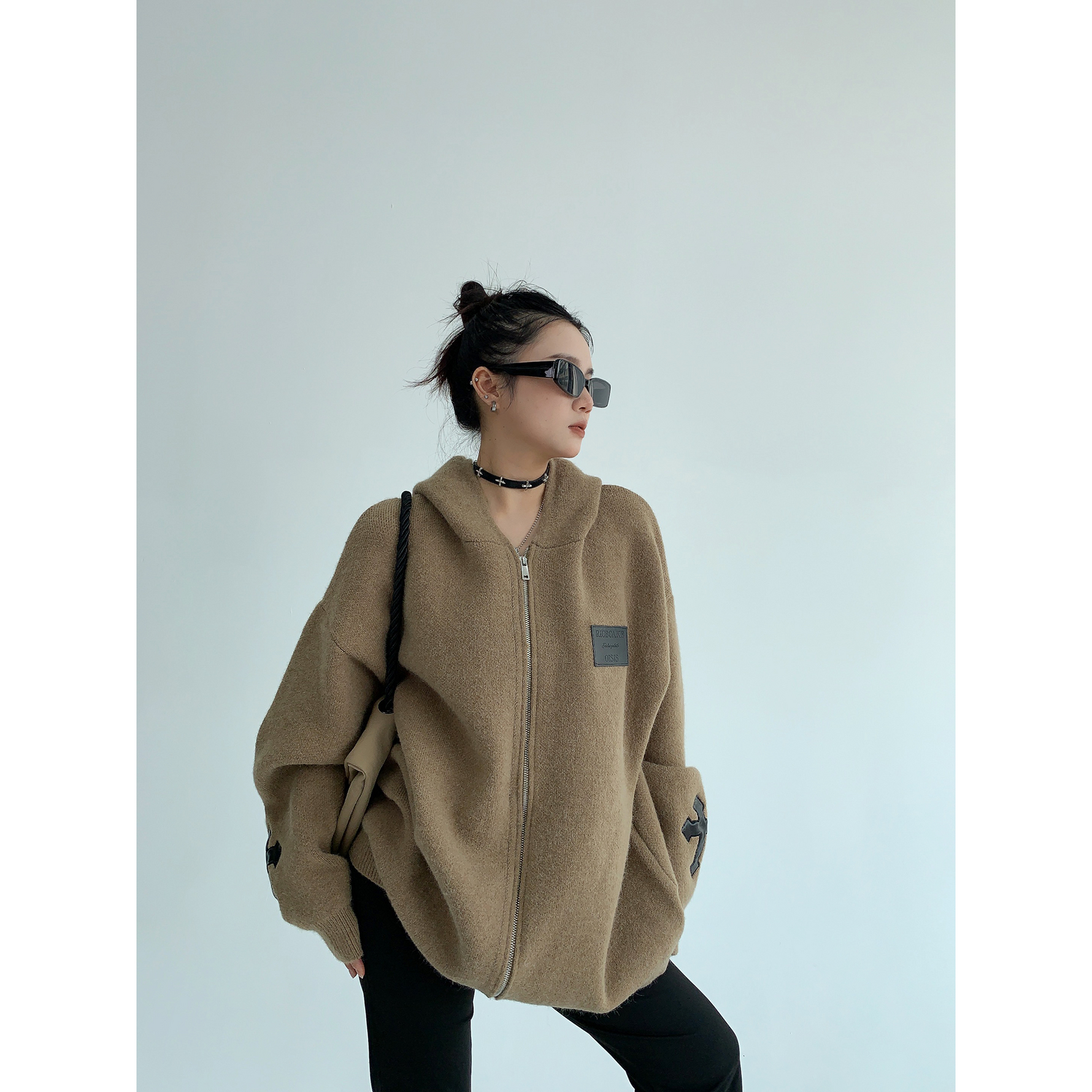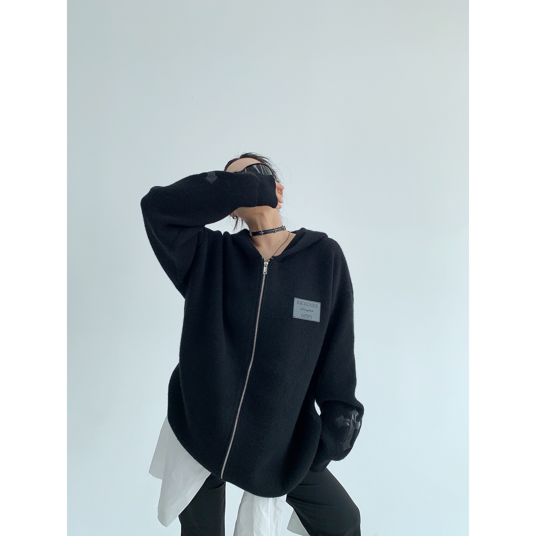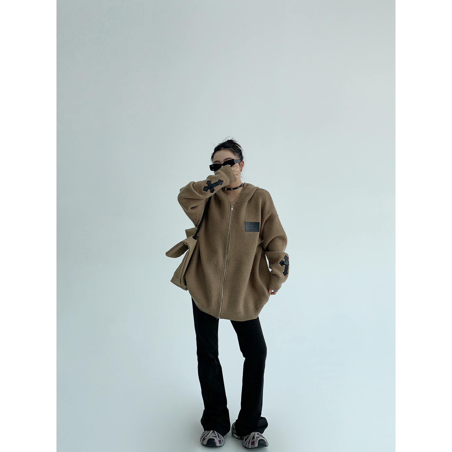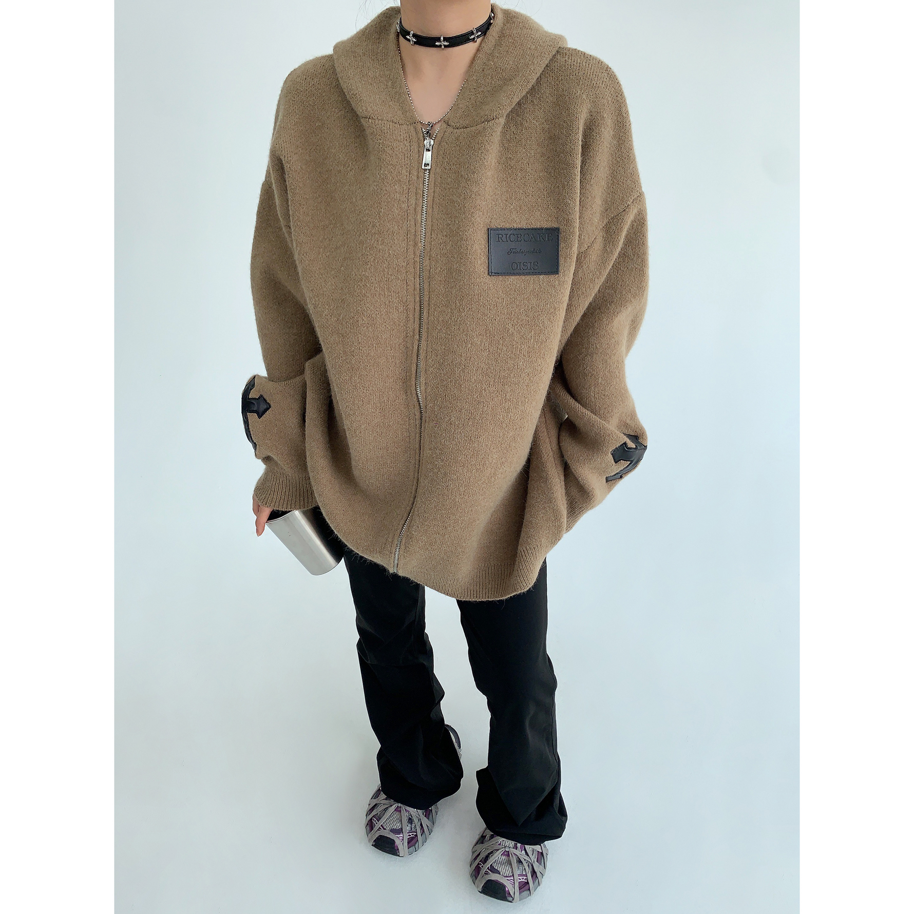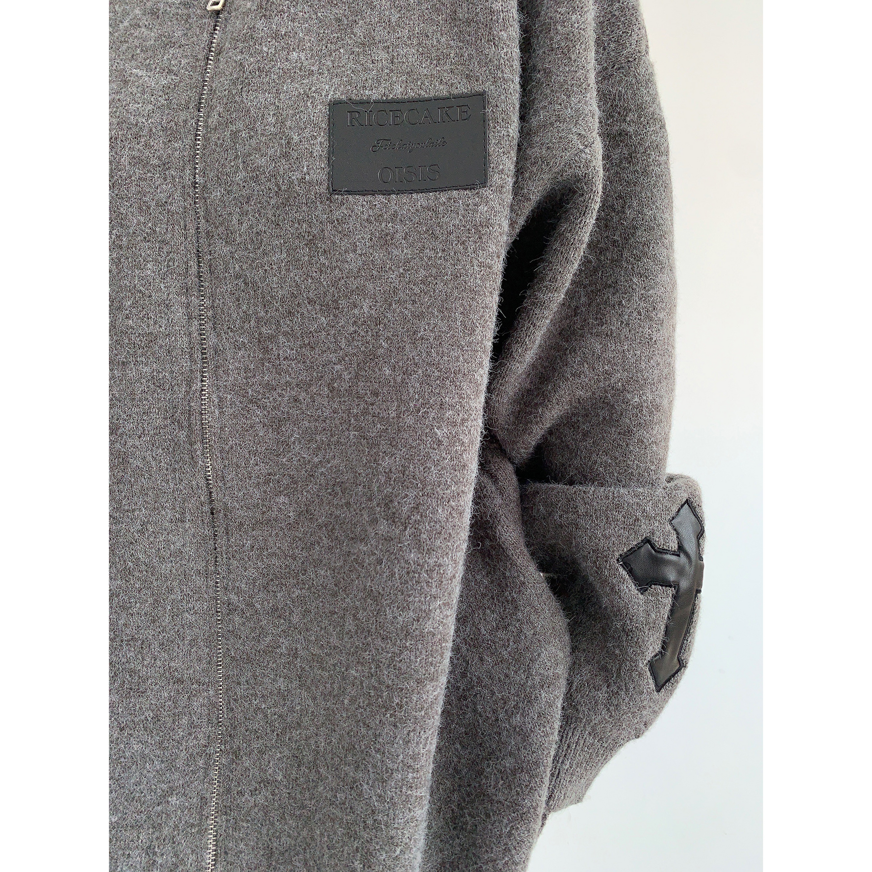 袖のロゴがインパクト抜群な、ニット素材のジップパーカー。