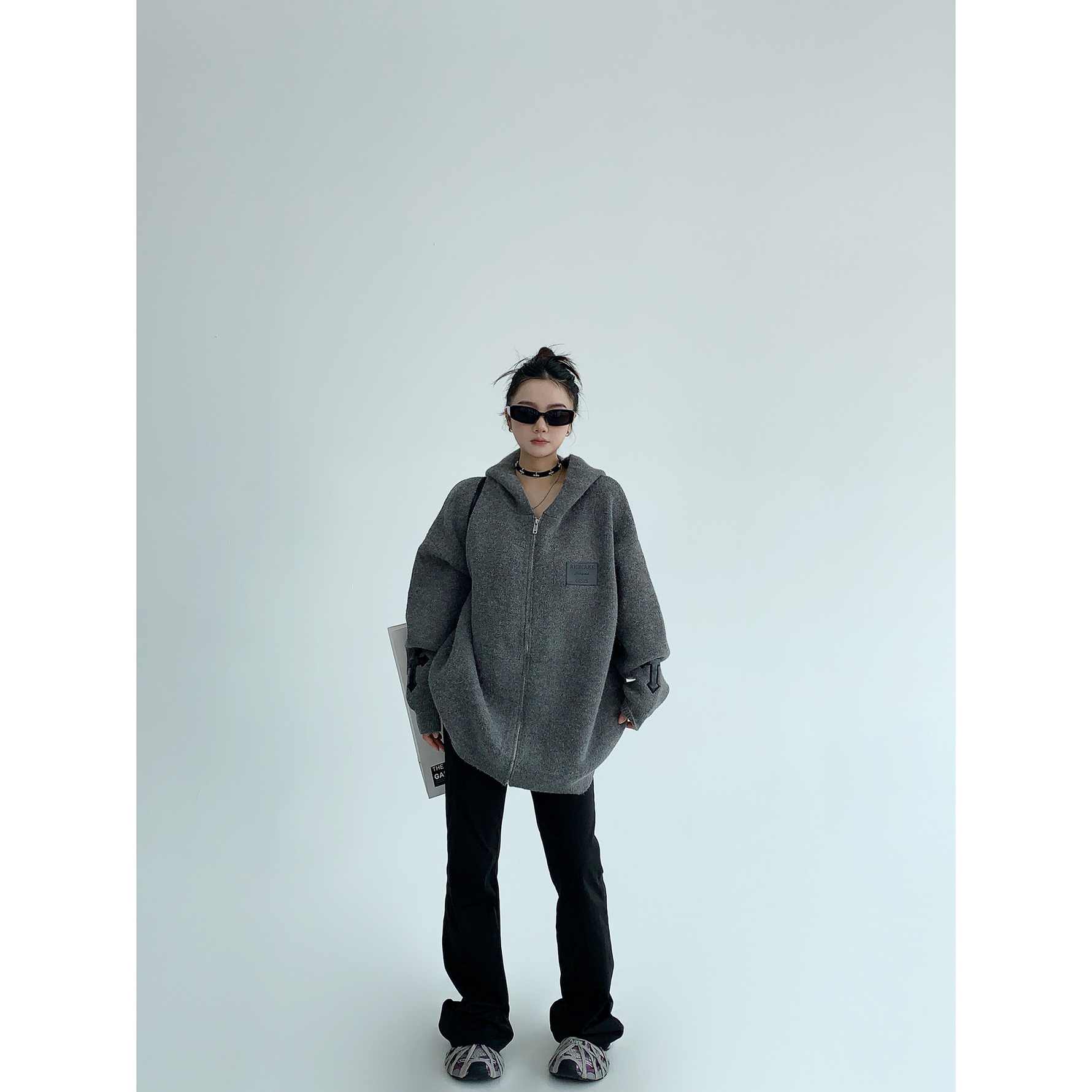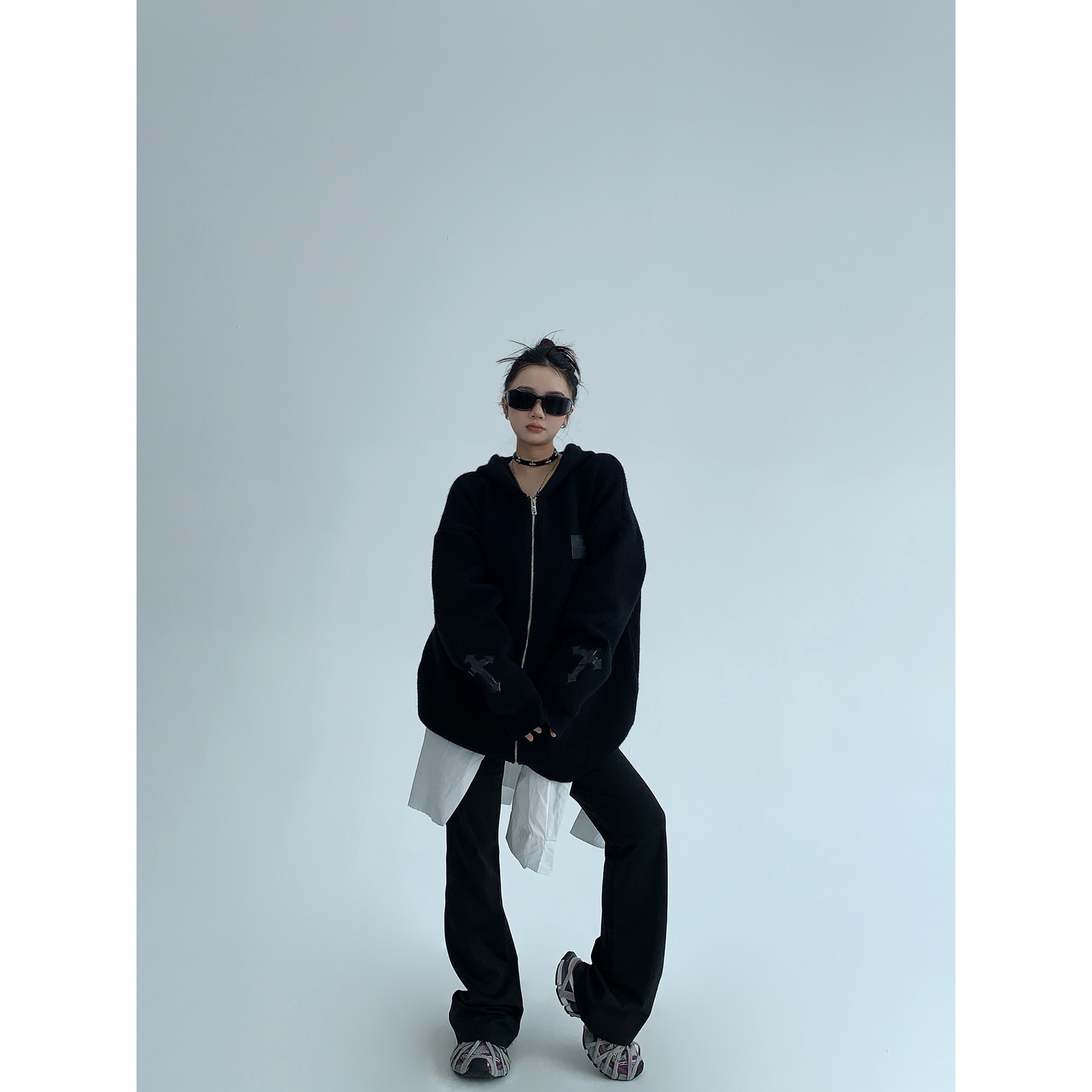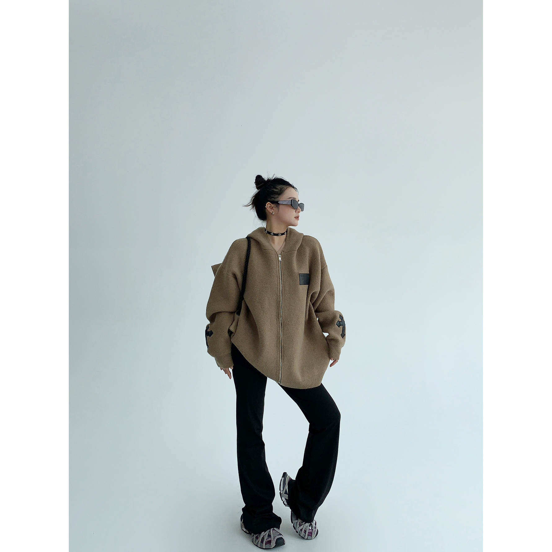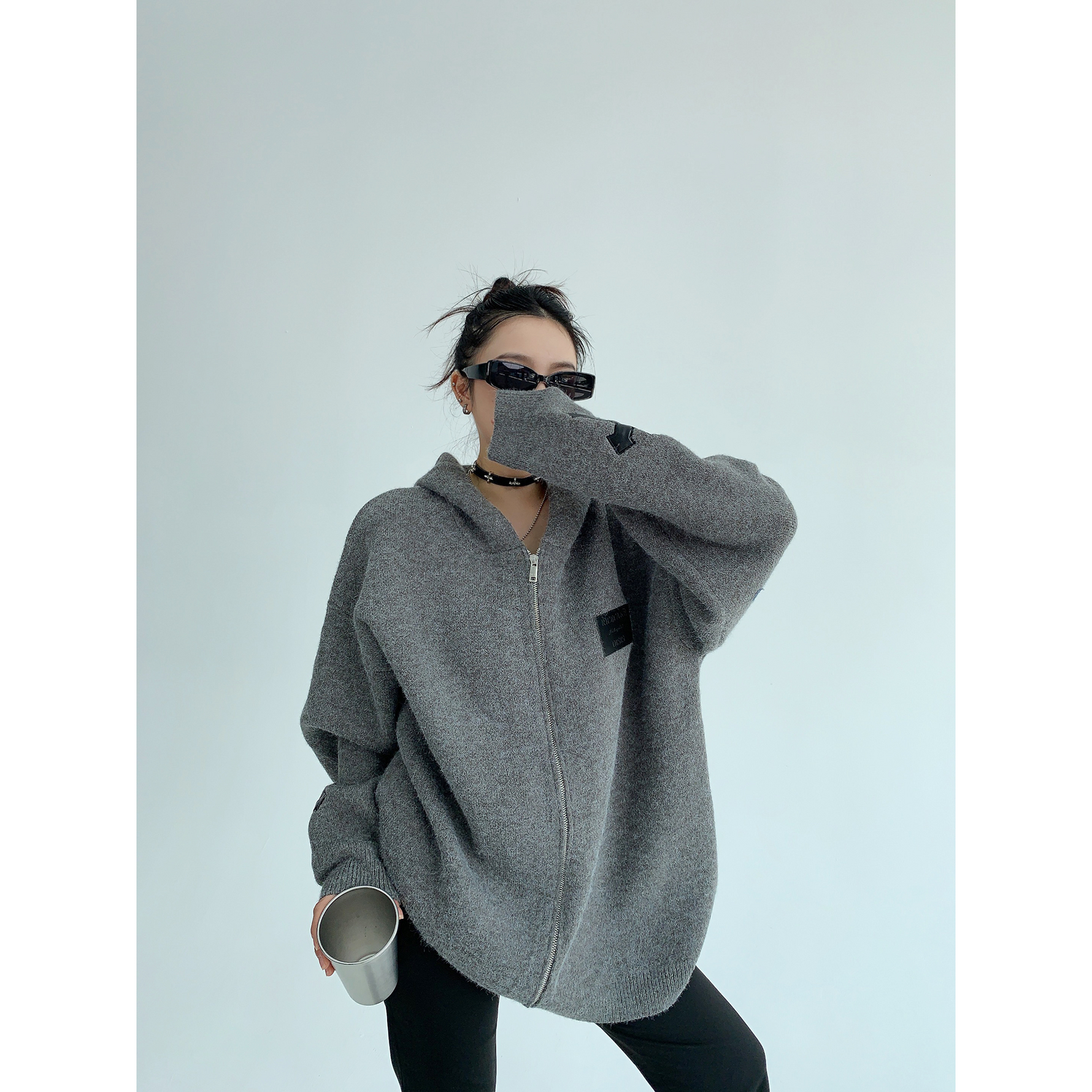 袖のロゴがインパクト抜群な、ニット素材のジップパーカー。