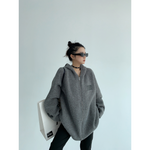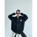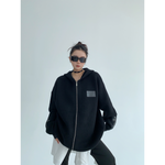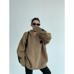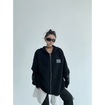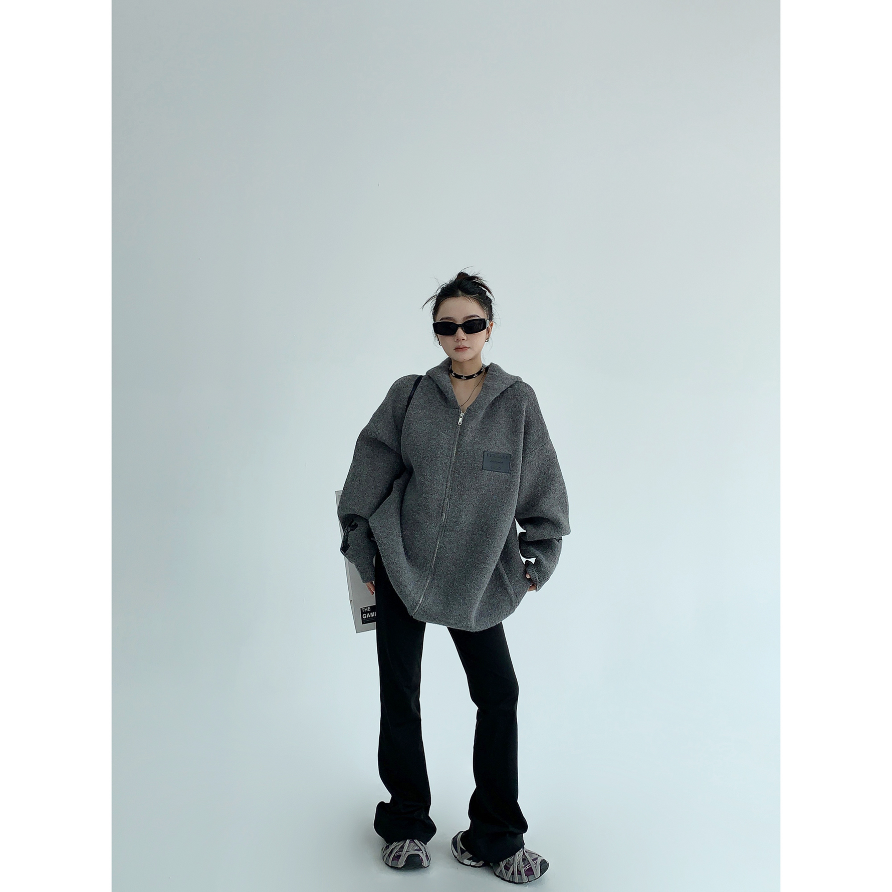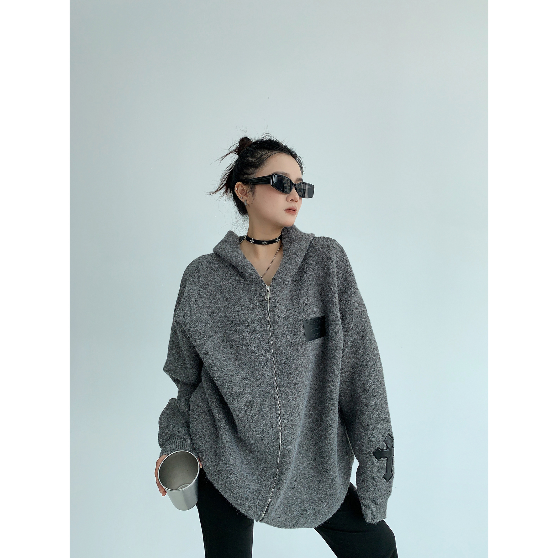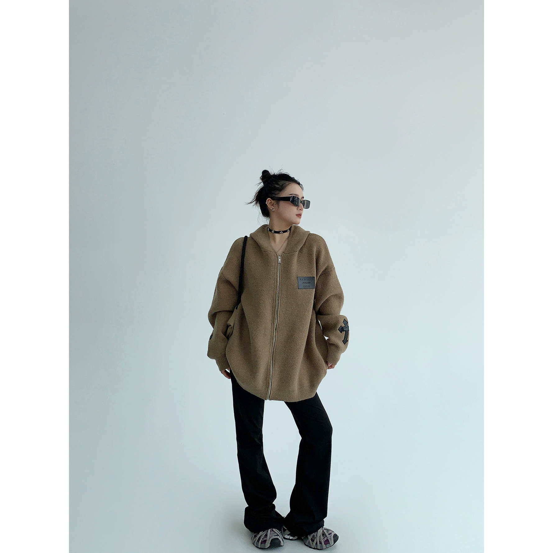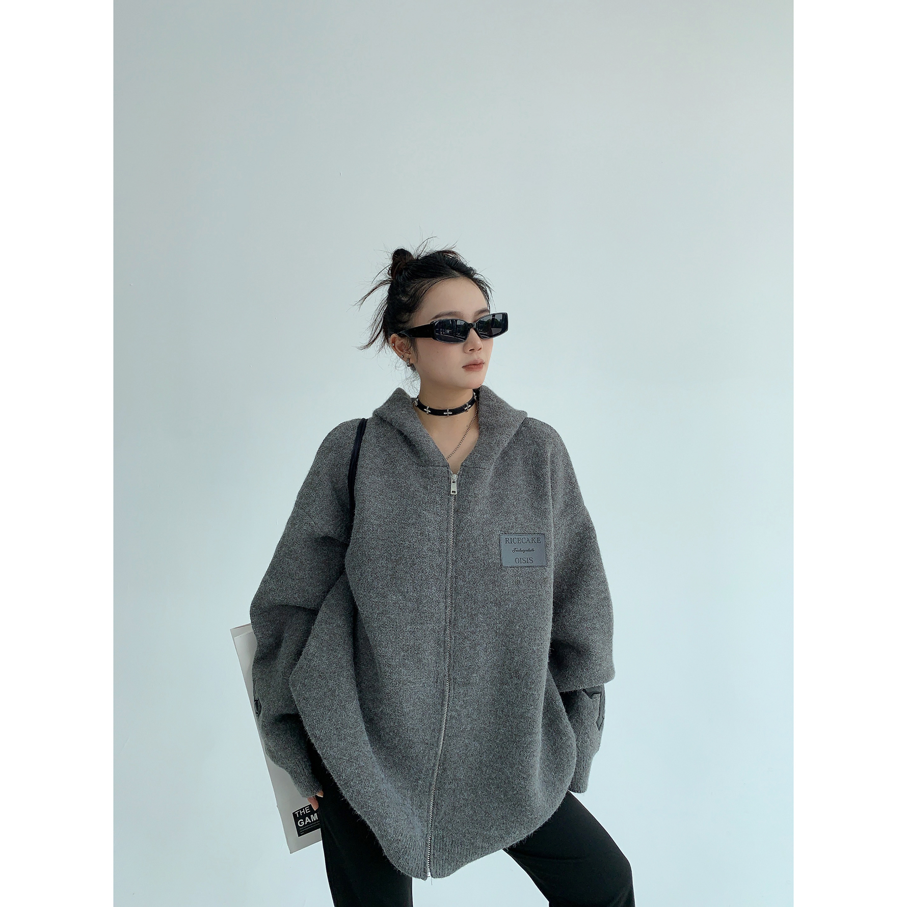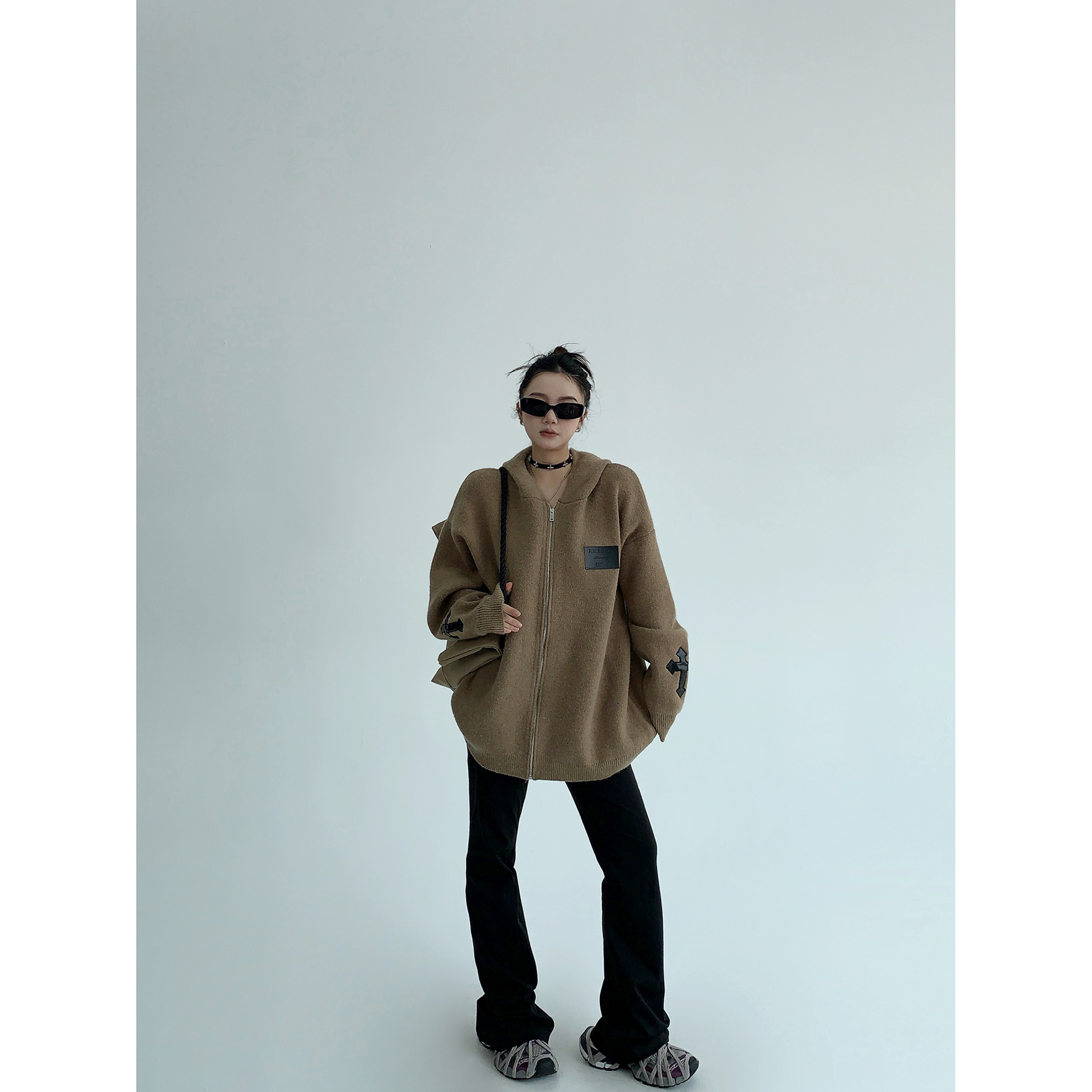 袖のロゴがインパクト抜群な、ニット素材のジップパーカー。