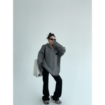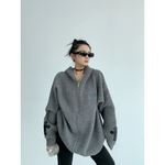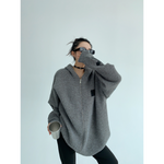 だぼっとしたメンズライクなシルエットと、ニットの柔らかい雰囲気が絶妙にマッチ。