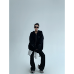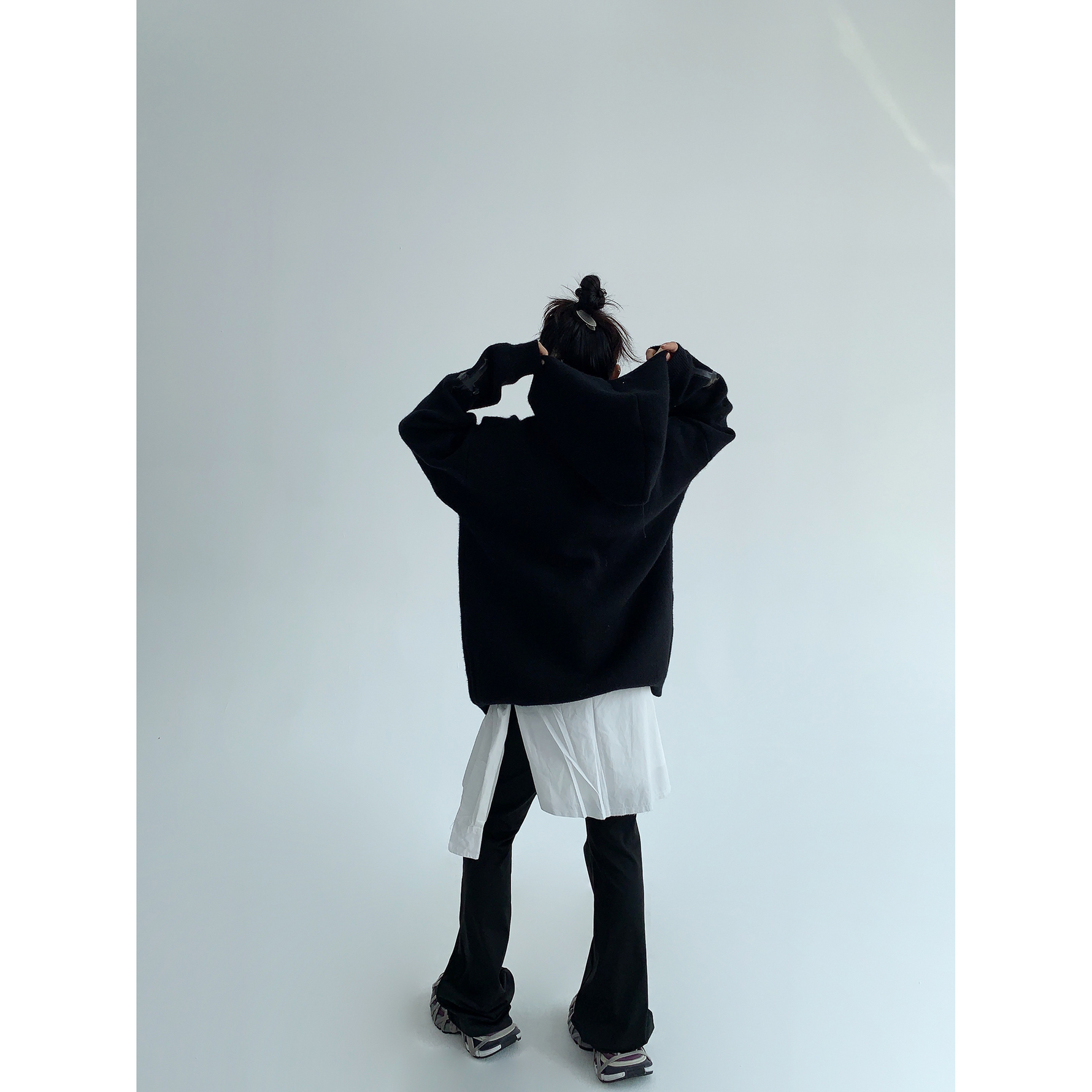 オールブラックコーデにプラスして、パーカーを主役にしたスタイリングがクール!