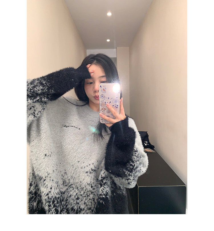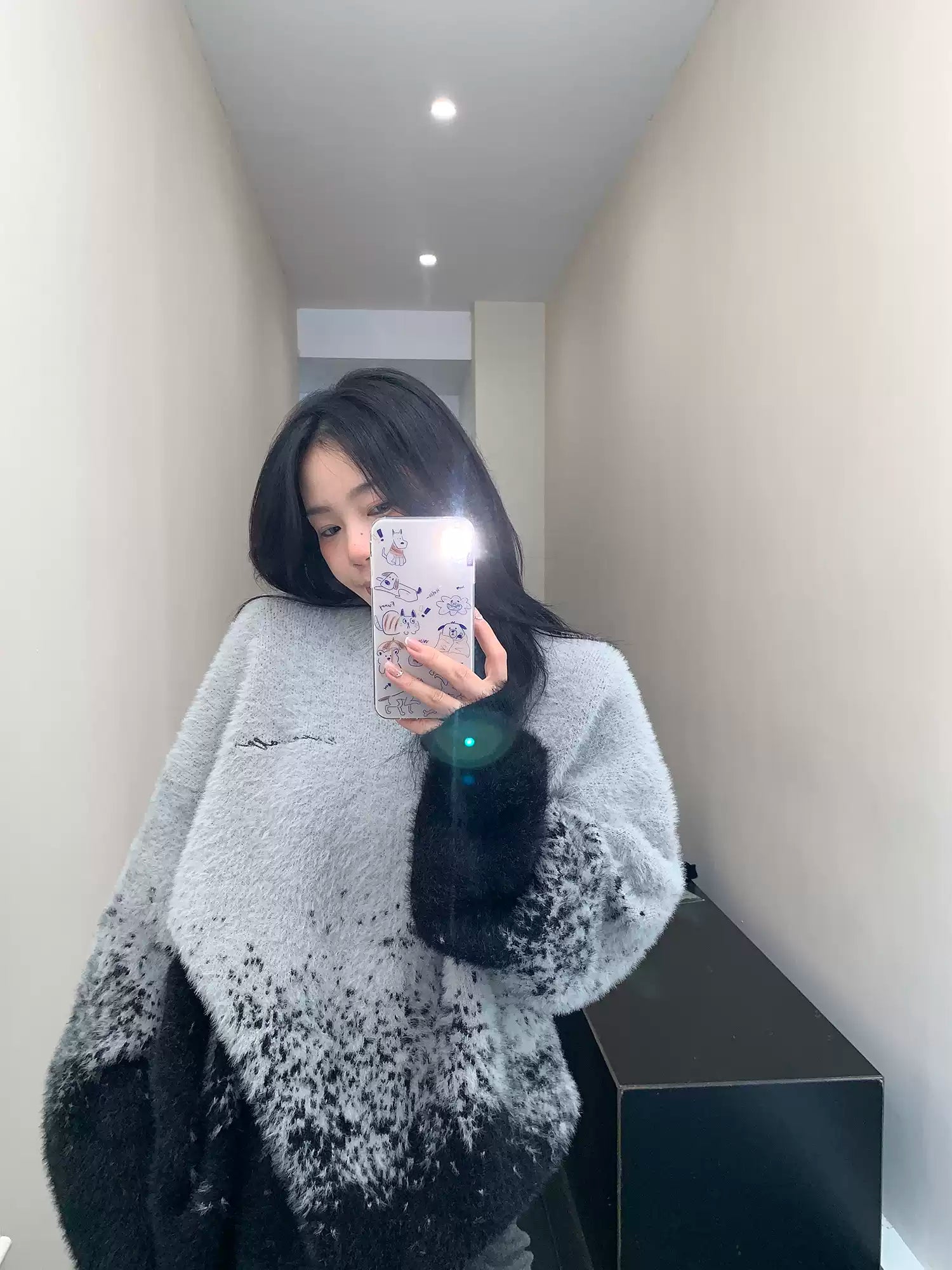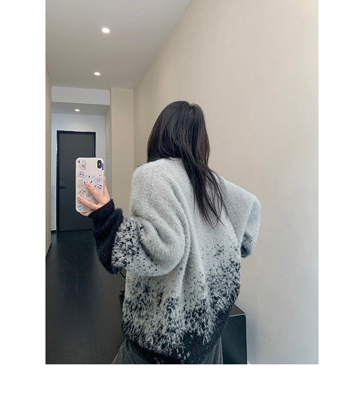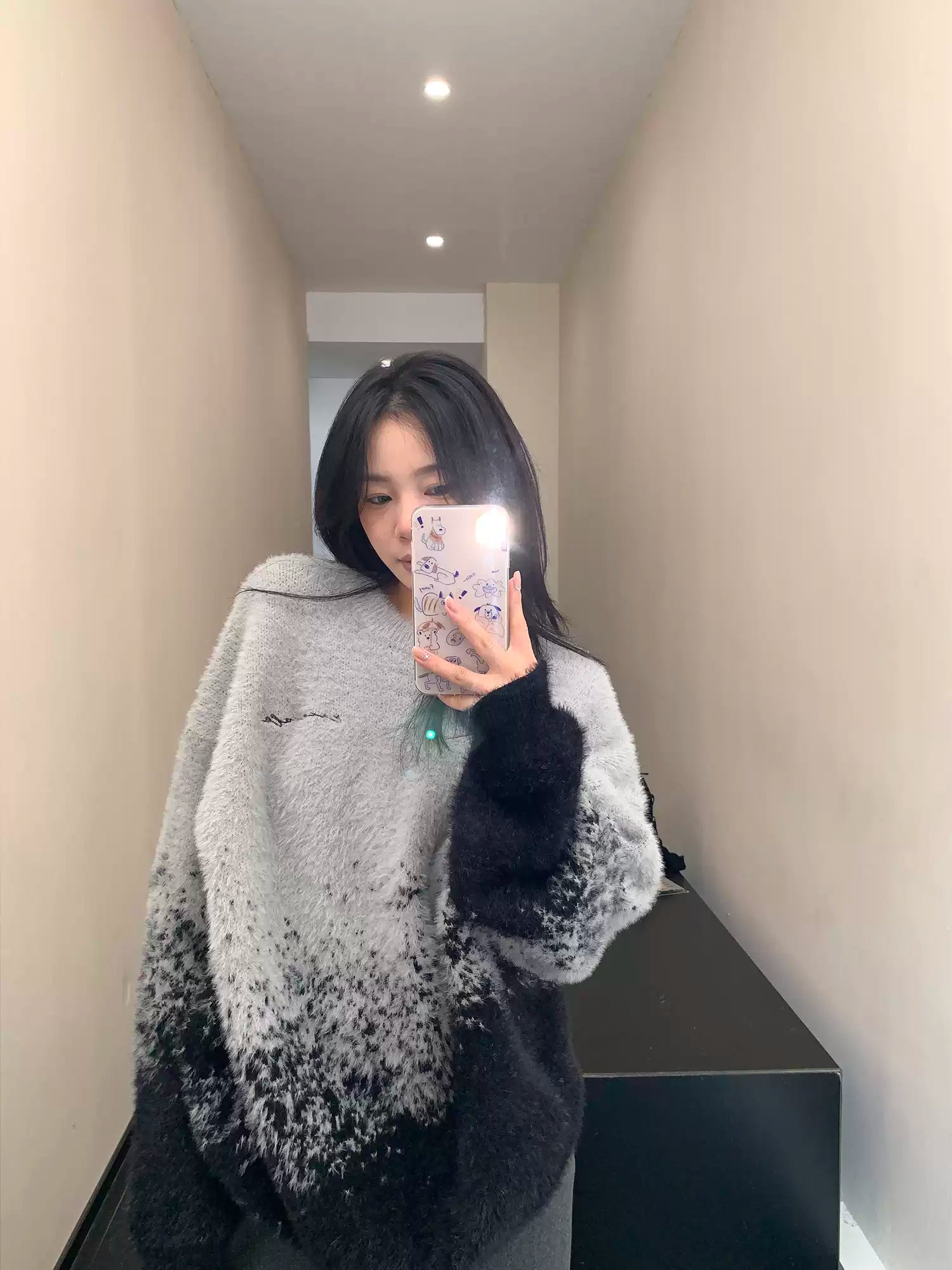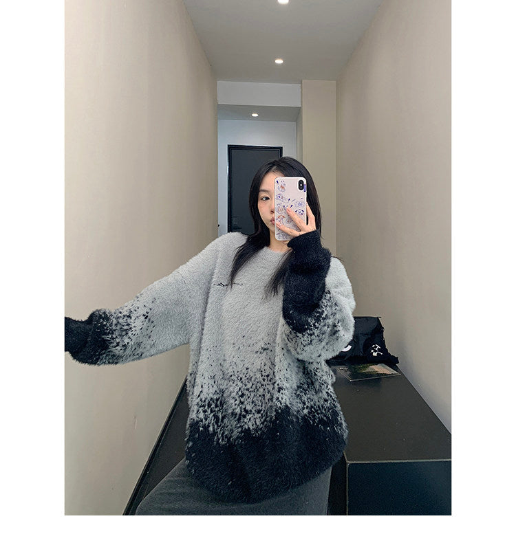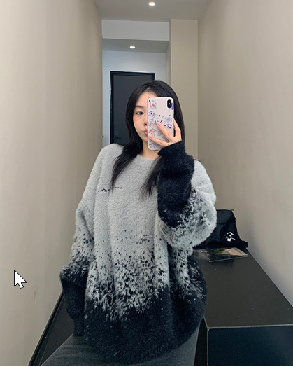 スプラッシュ柄のようなグラデーションがアーティスティックなシャギーニット。