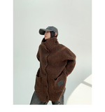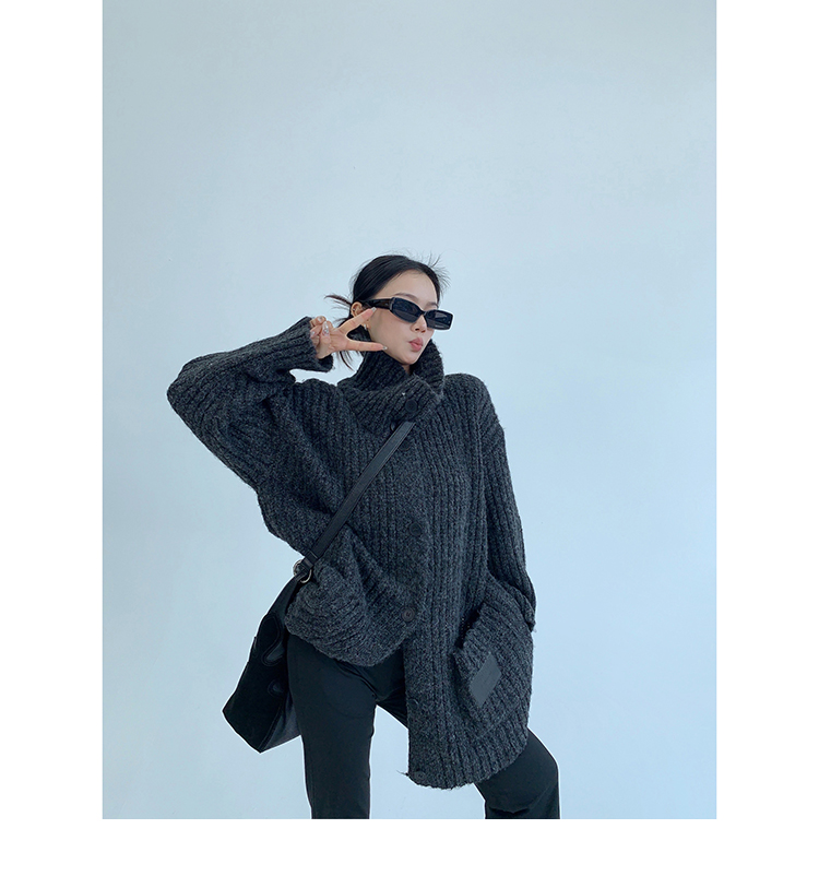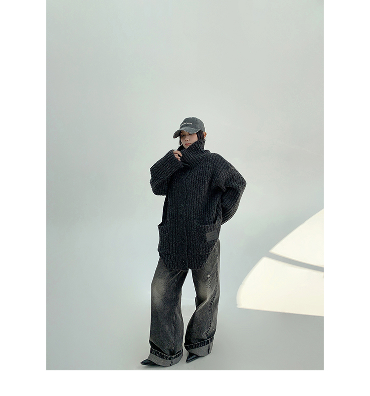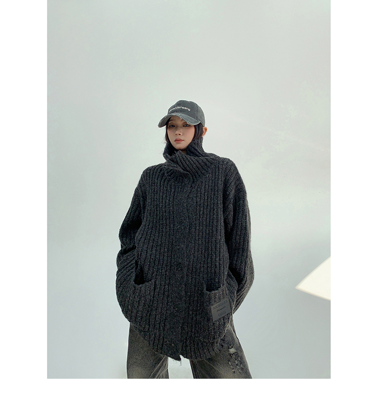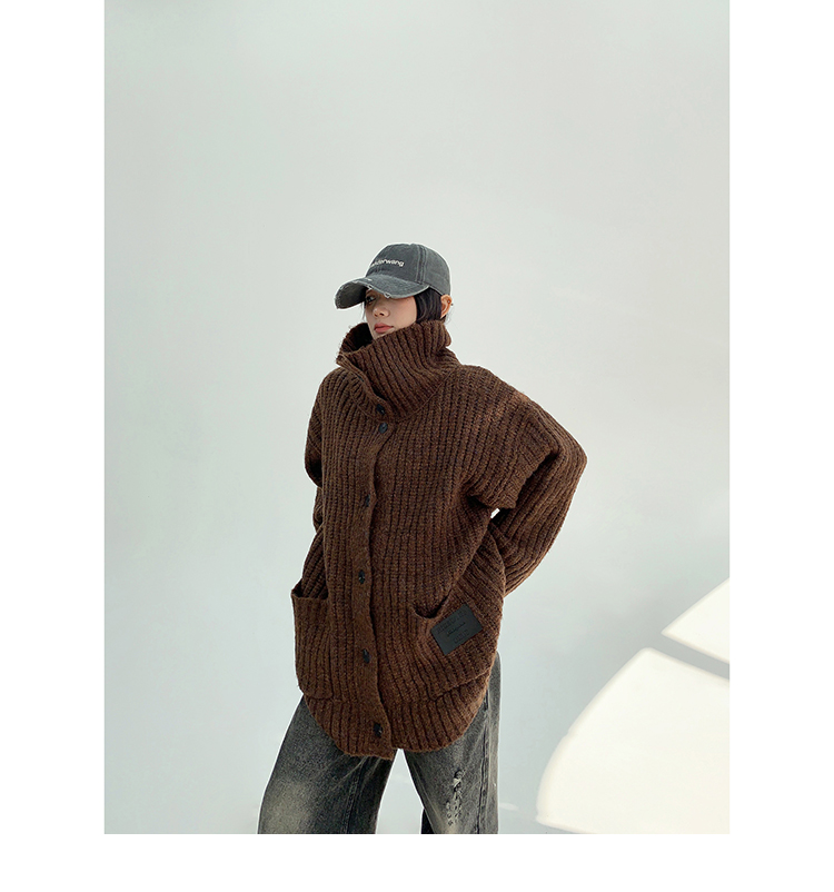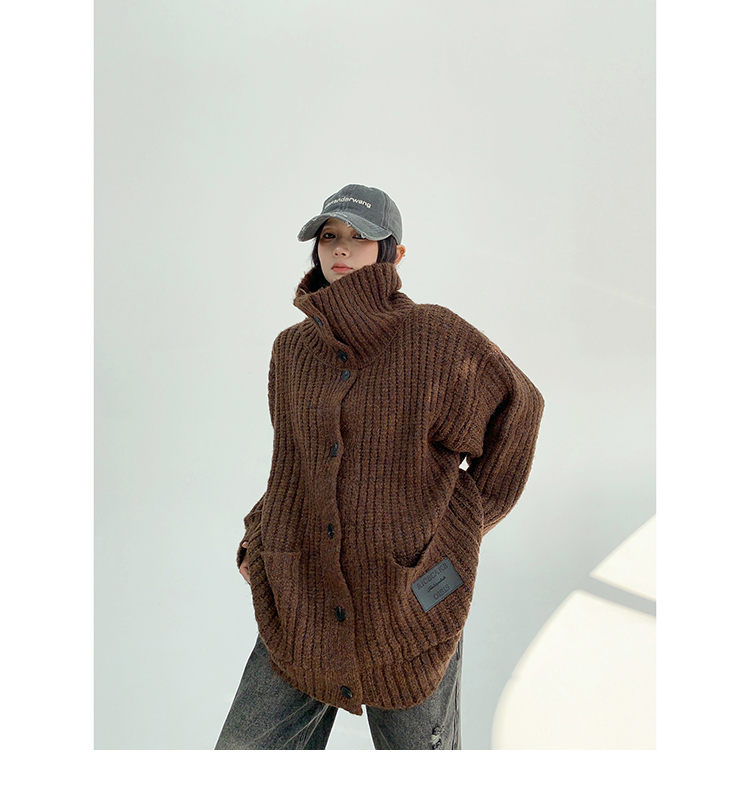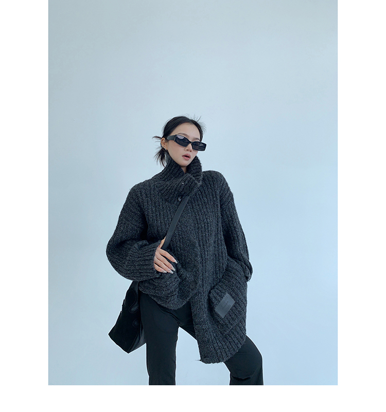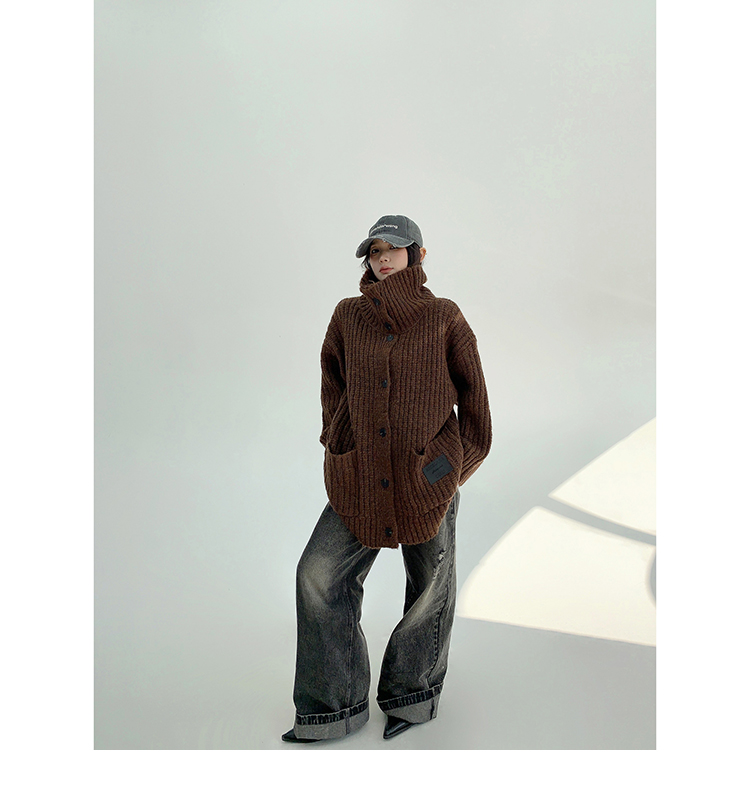 ボタンを上まで留めれば、首元まで暖かいハイネックデザインに。