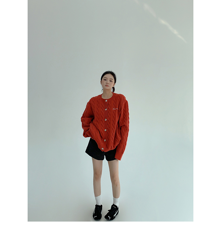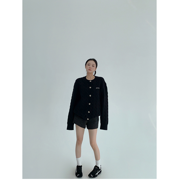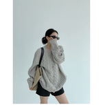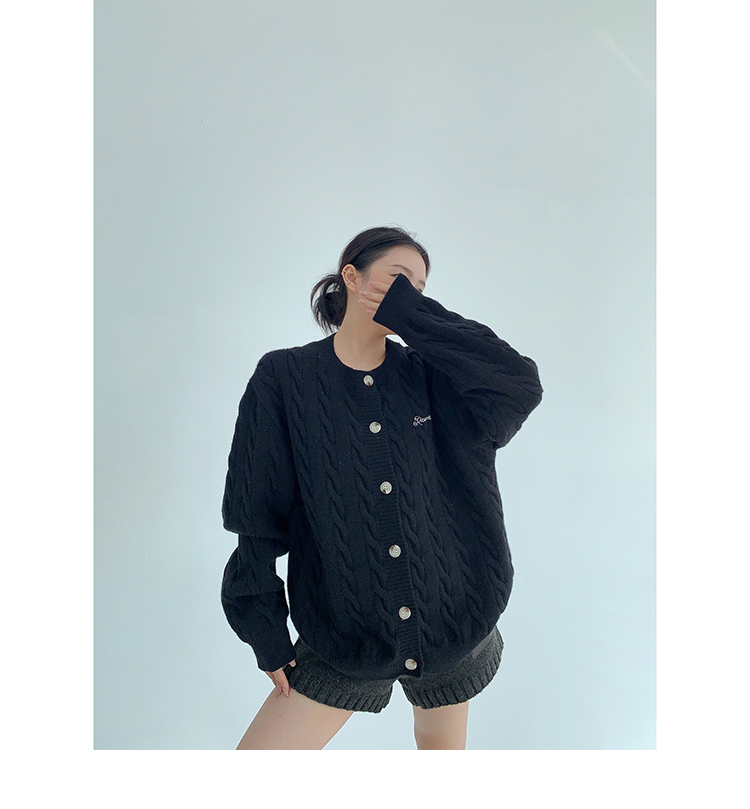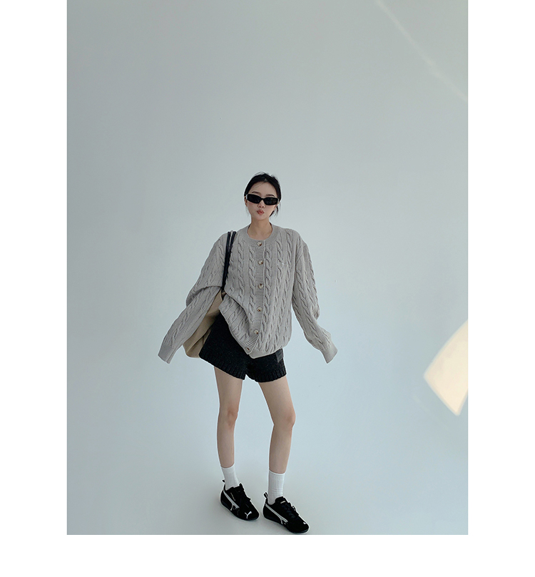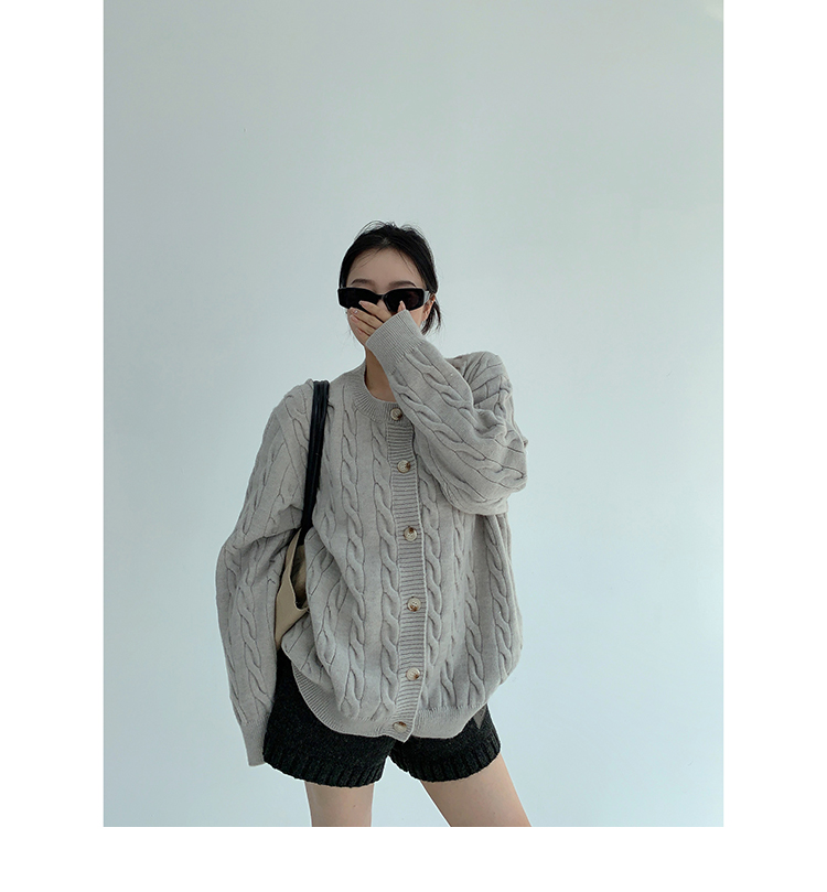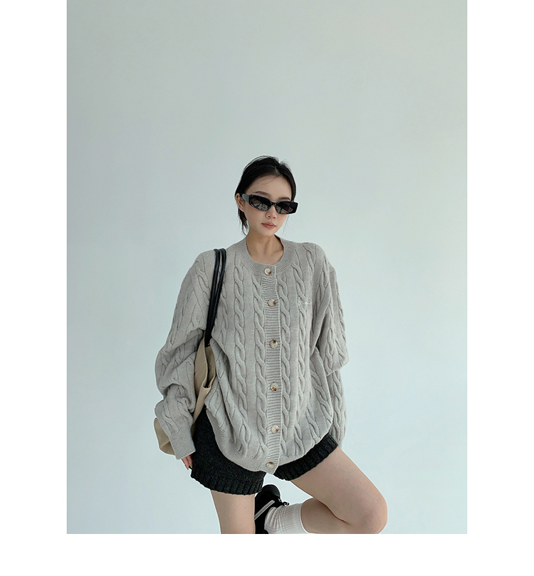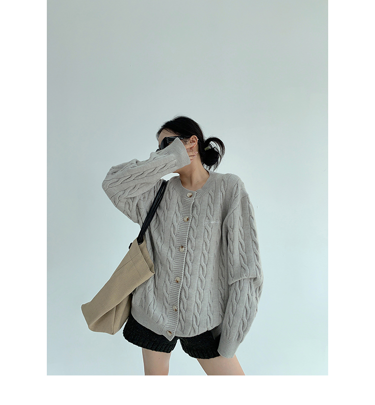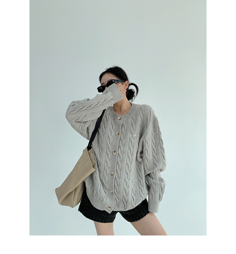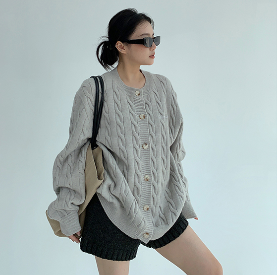 ざっくりとしたケーブル編みと、だぼっとしたシルエットが可愛いニットカーディガン。