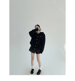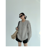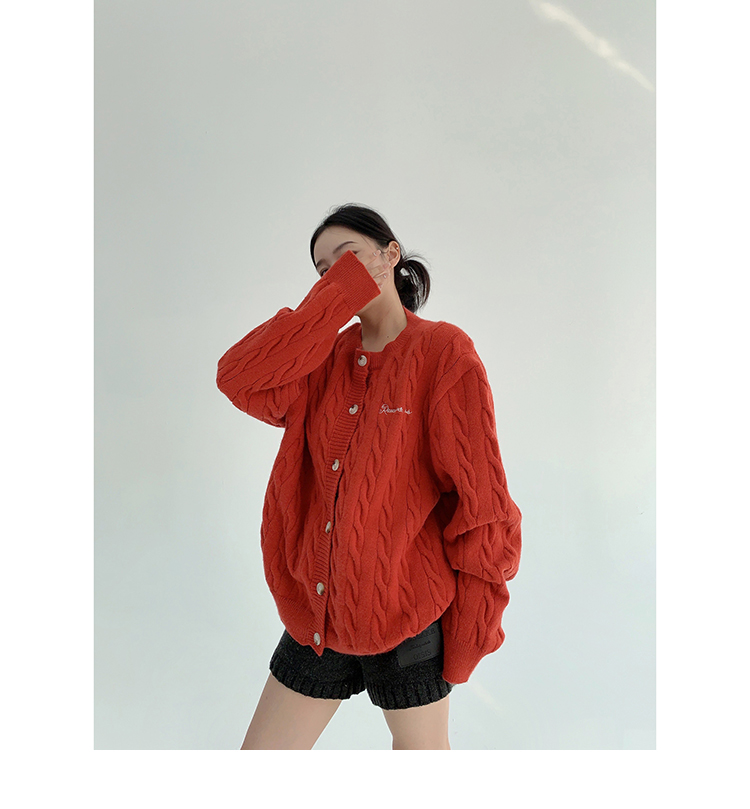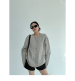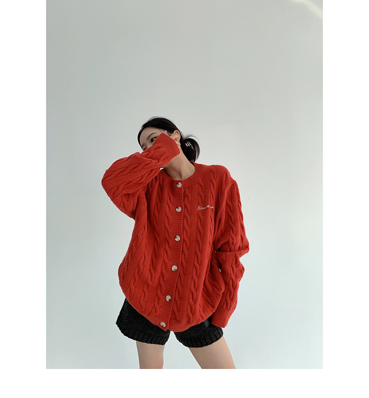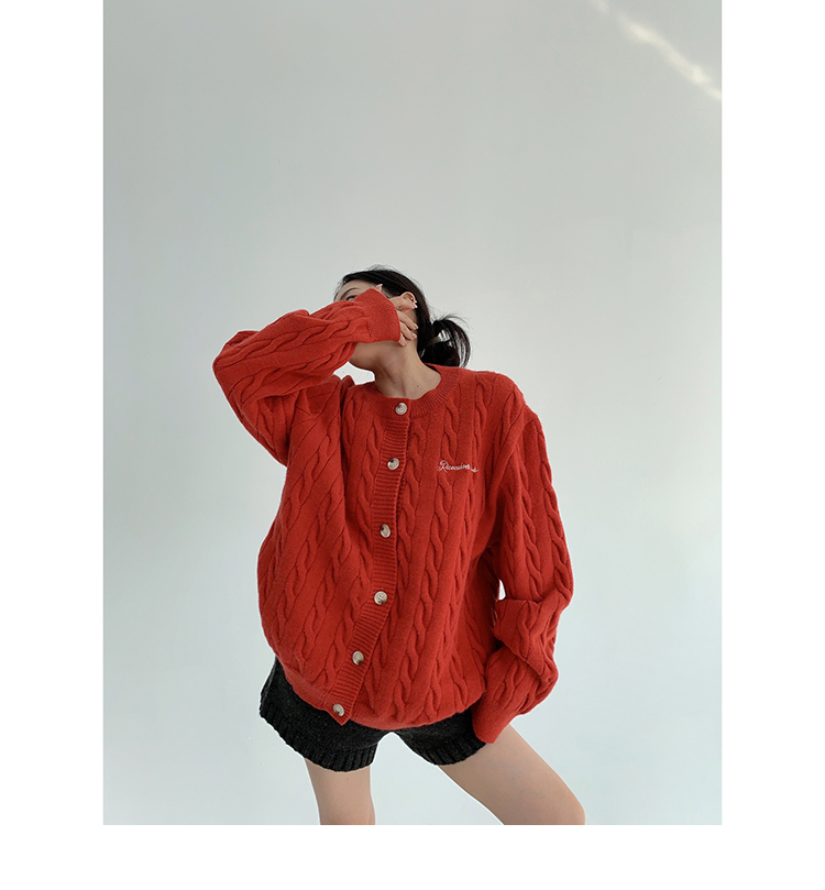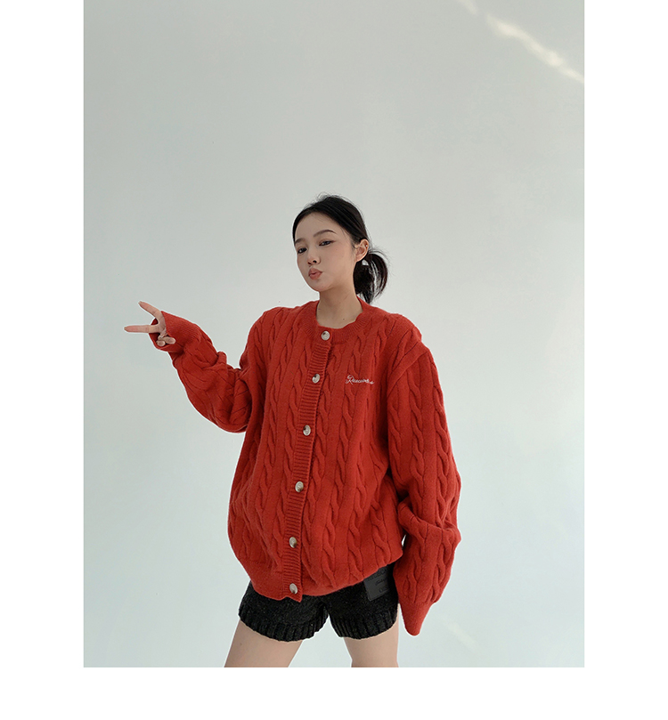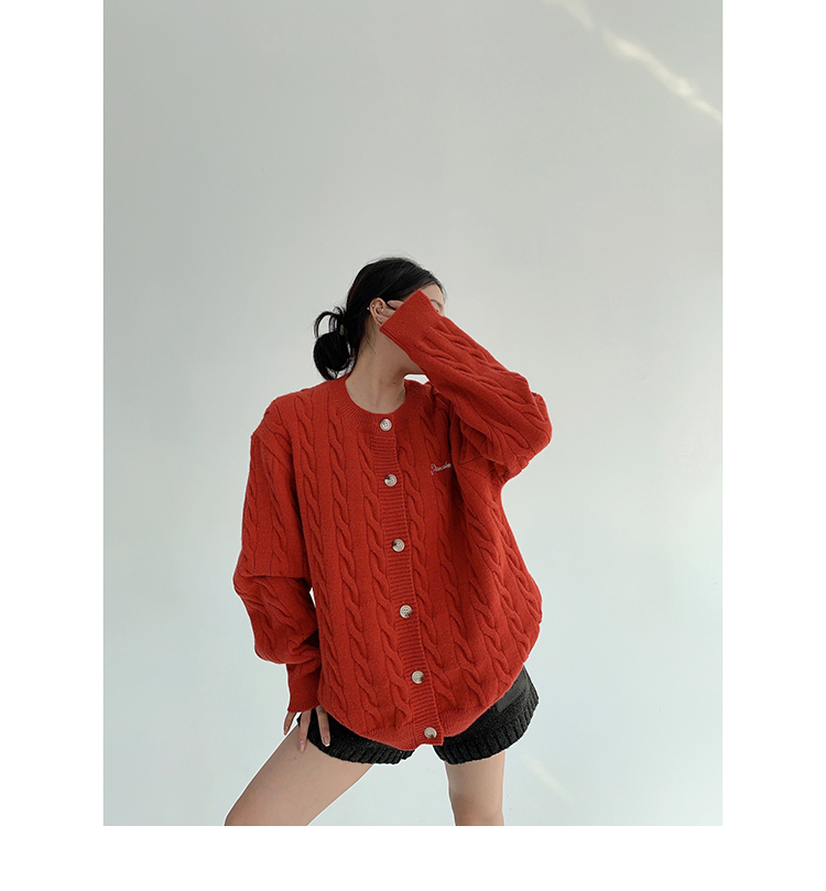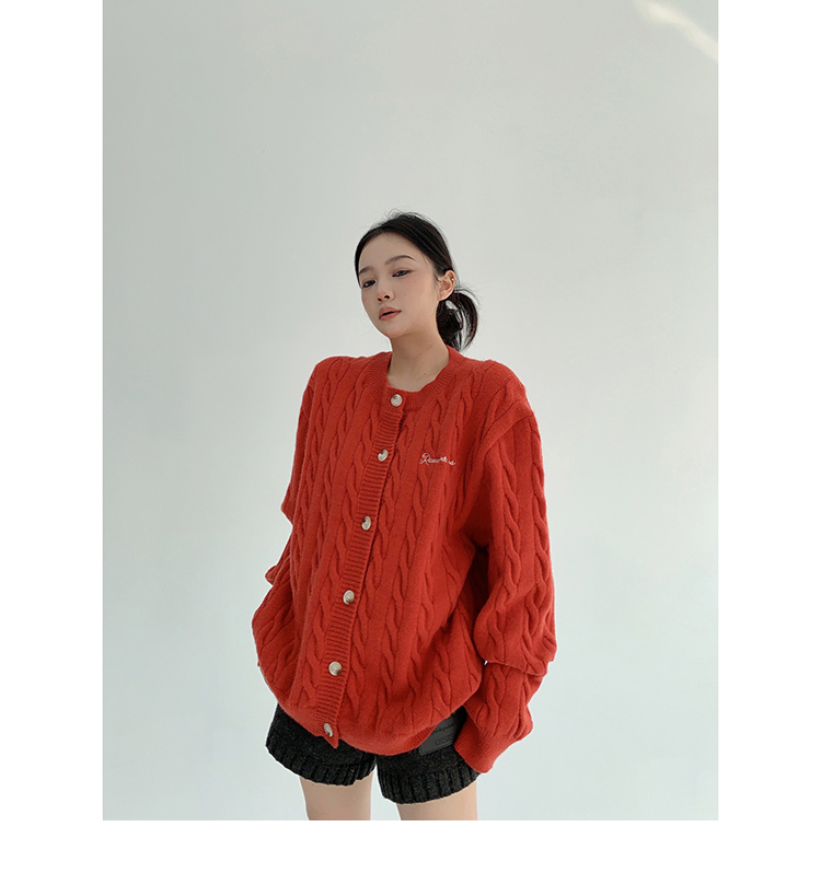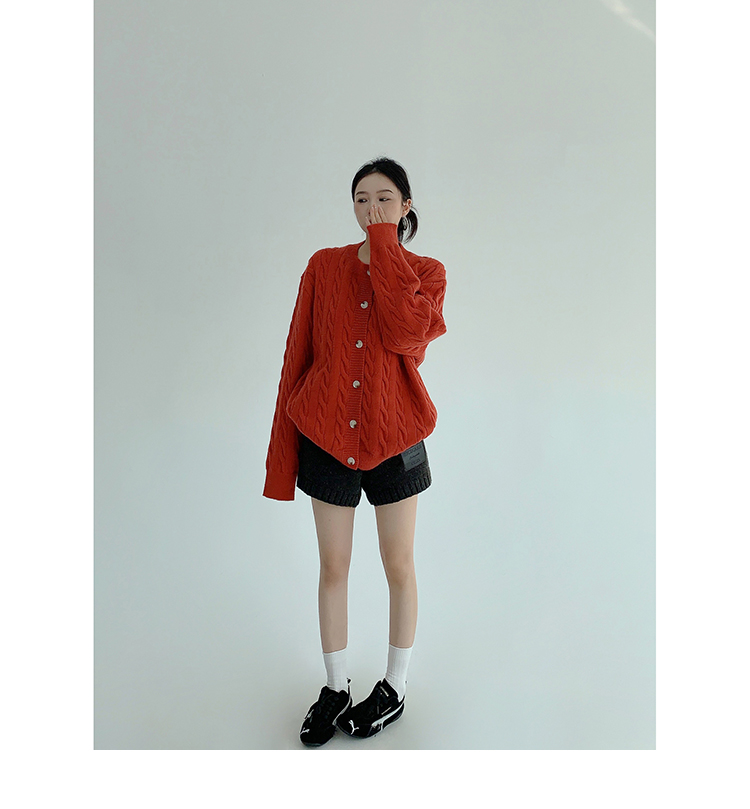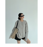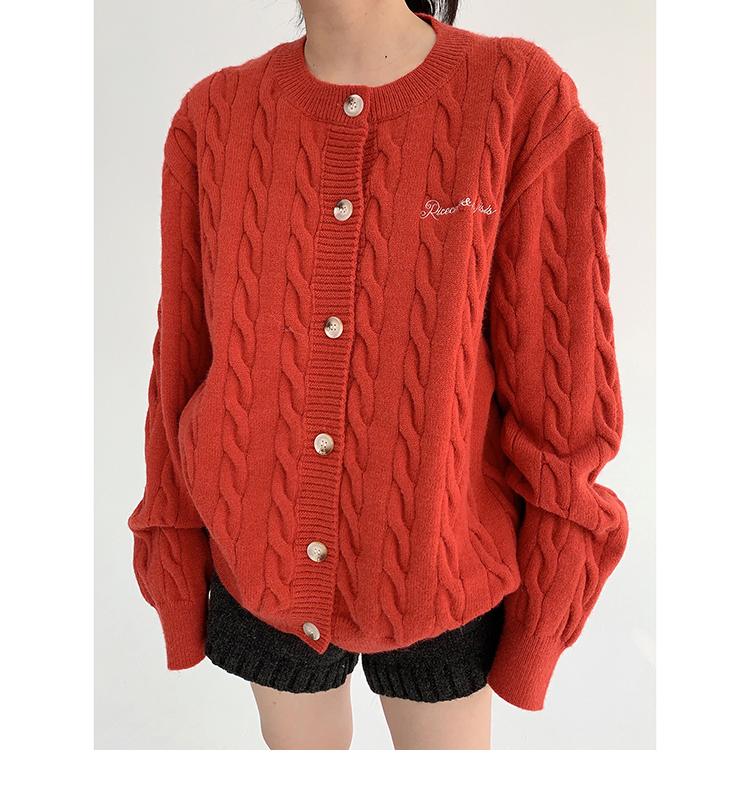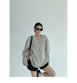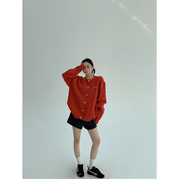 ざっくりとしたケーブル編みと、だぼっとしたシルエットが可愛いニットカーディガン。