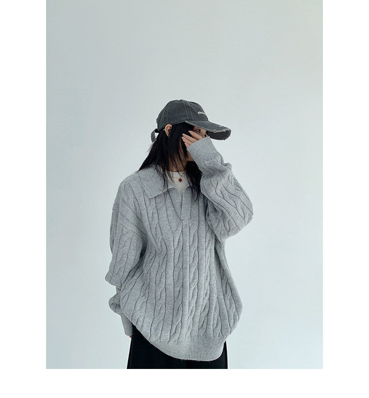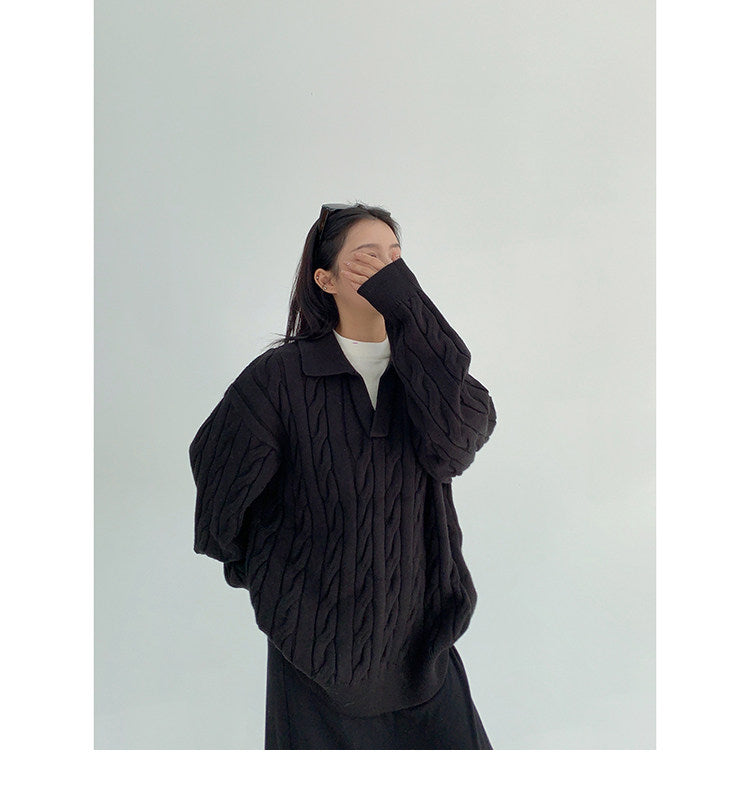 Cable Knit Collar Top / OS10328