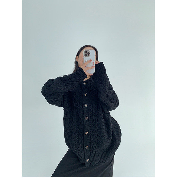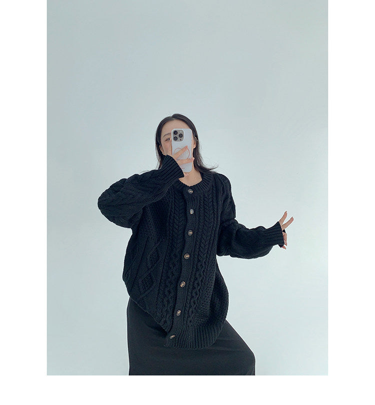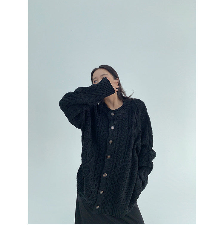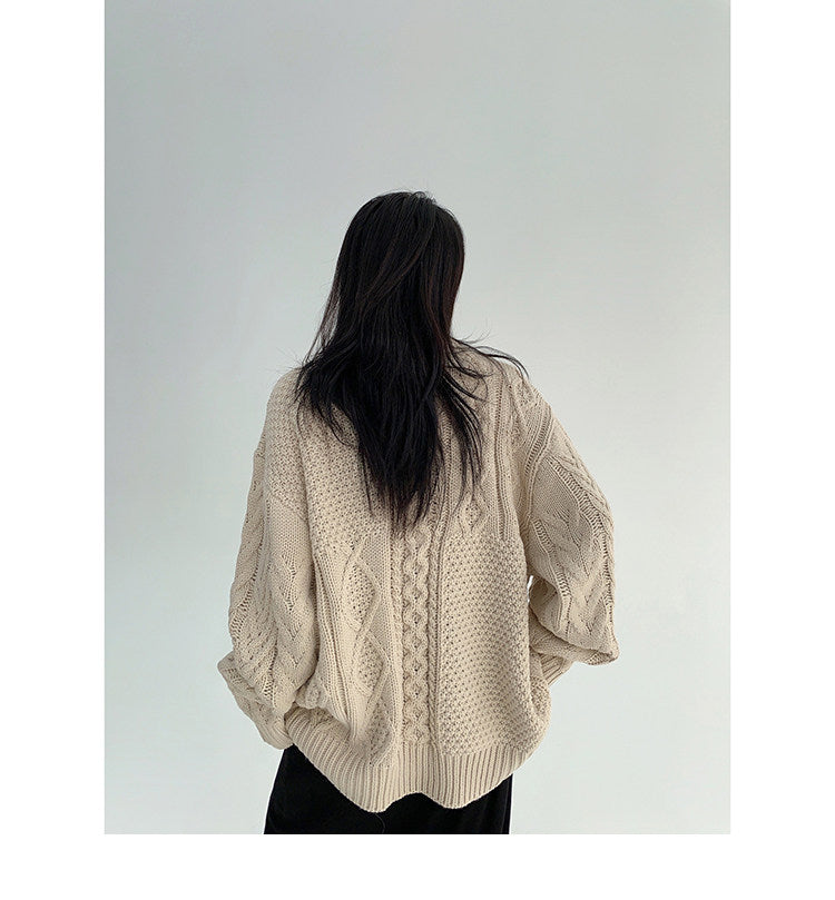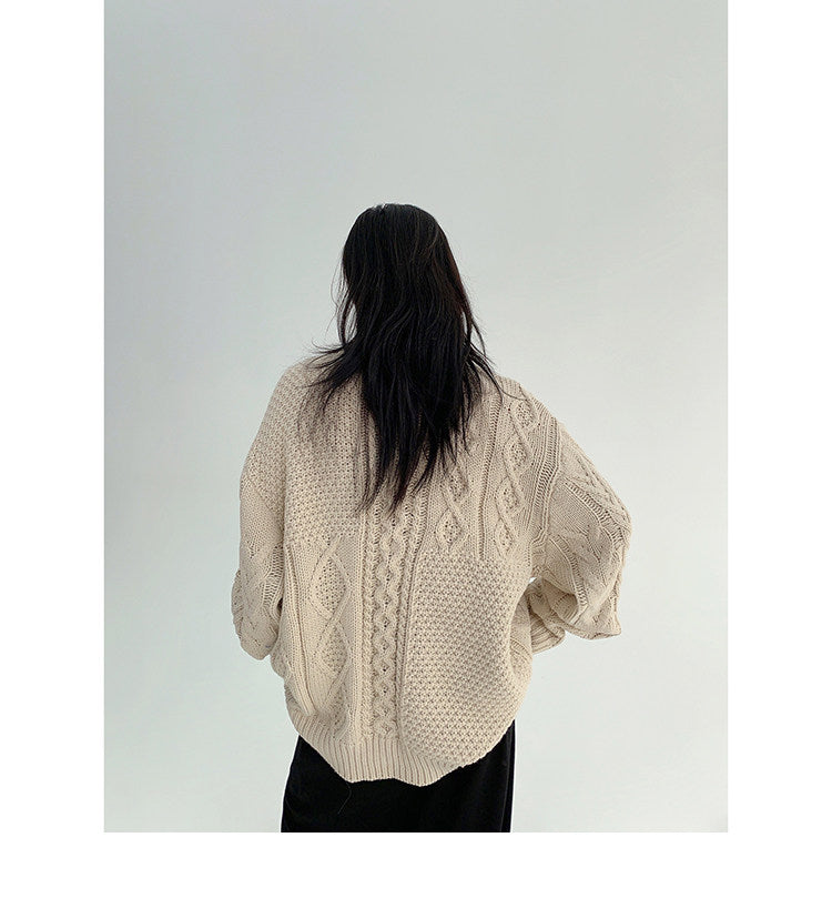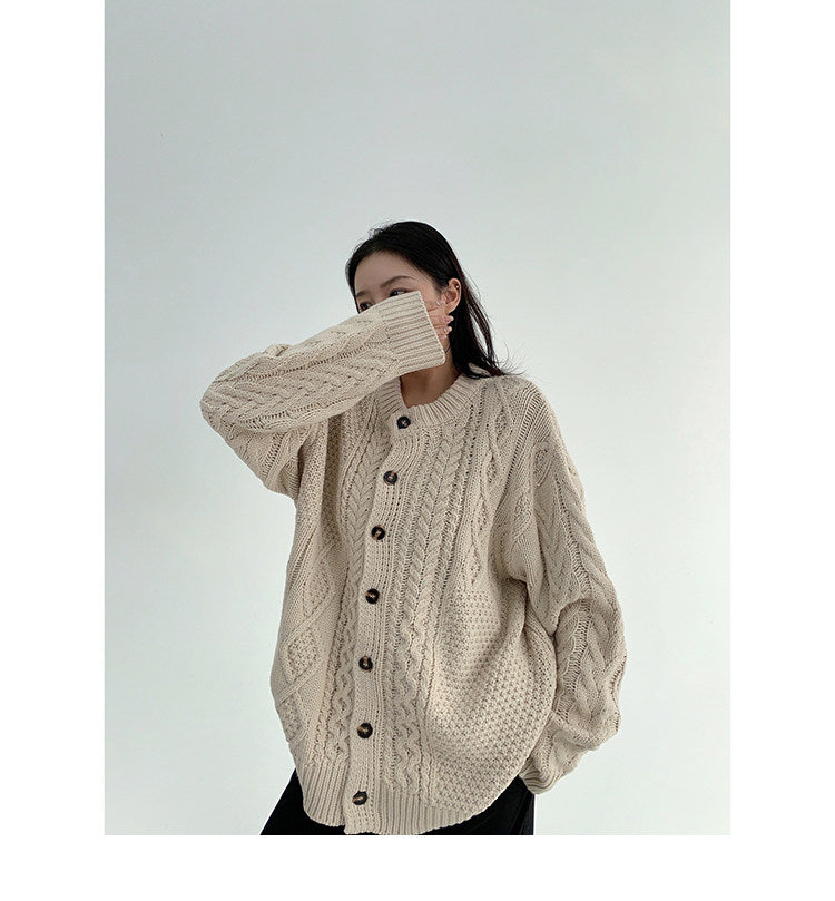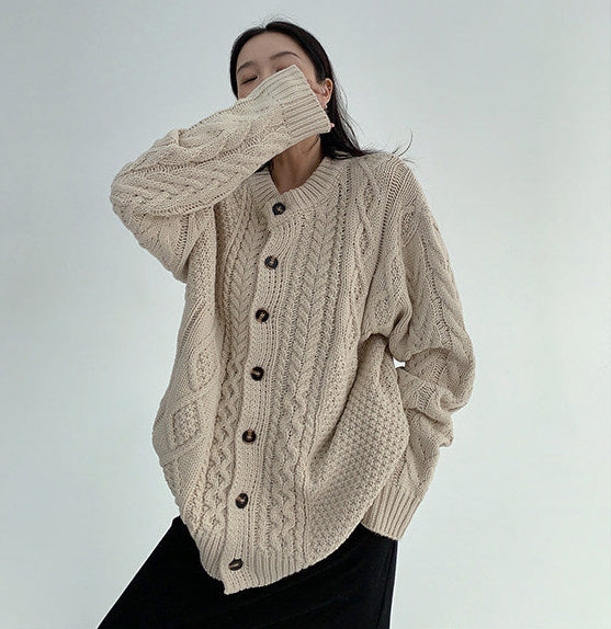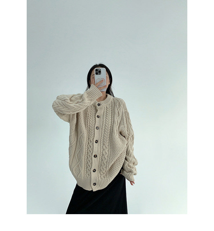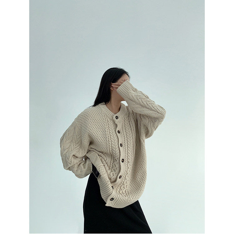 ざっくりとしたケーブル編みが可愛い、ゆるっと羽織れるオーバーサイズカーディガン。