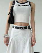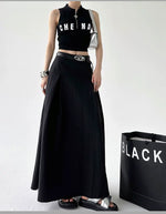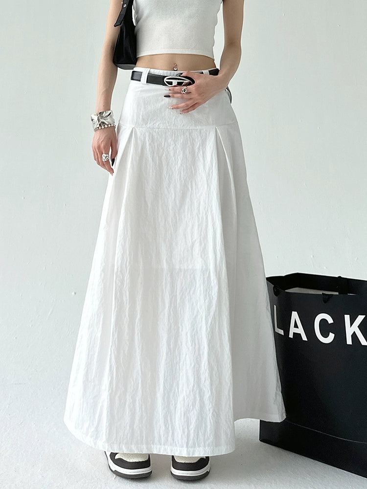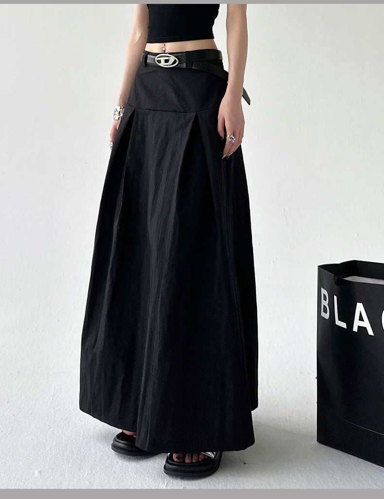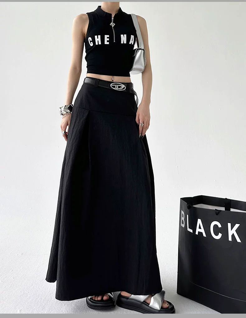 短丈トップスやTシャツと合わせて甘辛ミックスに。