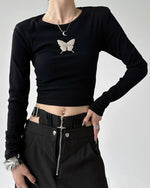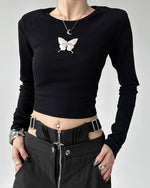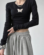 バタフライモチーフのトップスは、一枚で主役級の存在感!