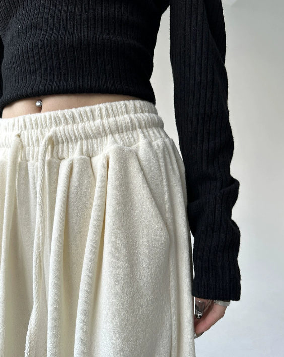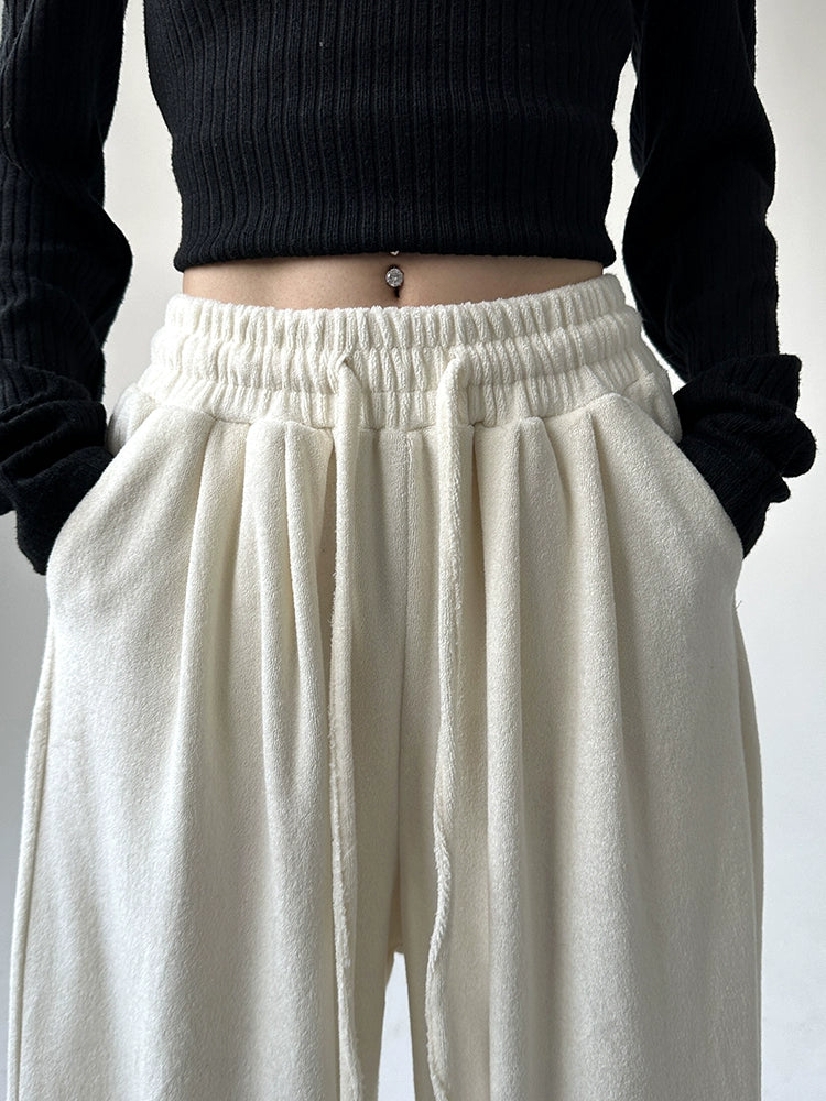 タオル地風ワイドパンツは、ゆったりとしたシルエットでリラックス感たっぷり!ショート丈トップスと合わせてスタイルアップしたり、オーバーサイズのスウェットと合わせてゆるっと
