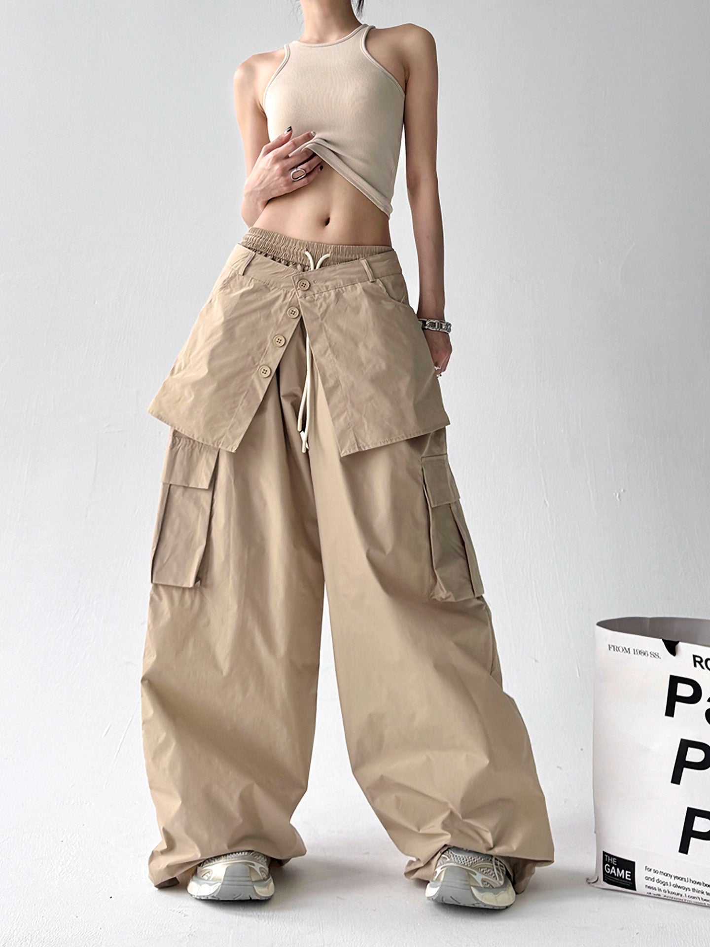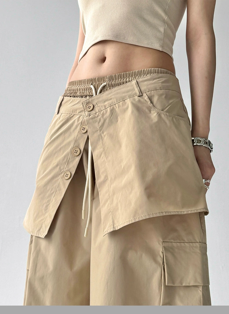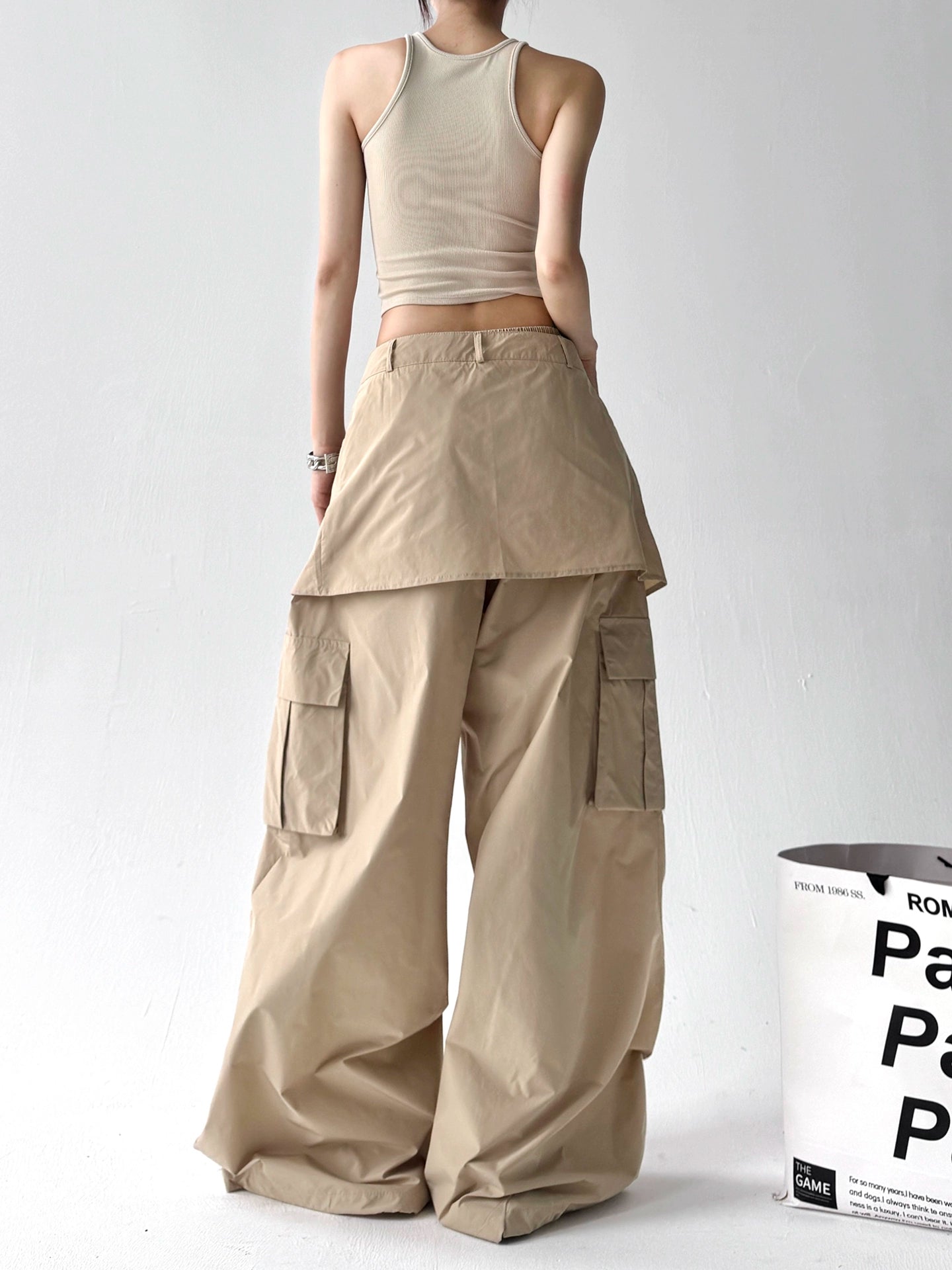 立体感のあるカーゴ風デザインが今っぽいスカート+パンツ。