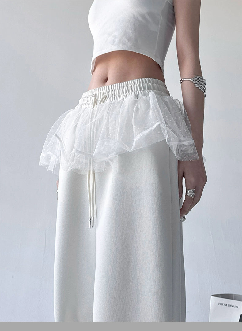 腰元のフリルが可愛いワイドパンツは、ゆったりシルエットでリラックス感たっぷり!