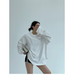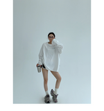 お尻まですっぽり隠れるビッグシルエットで、ワンピース風に着こなすのも可愛い!