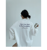 背中の大きなメッセージロゴが、後ろ姿までお洒落に演出してくれるロンT。