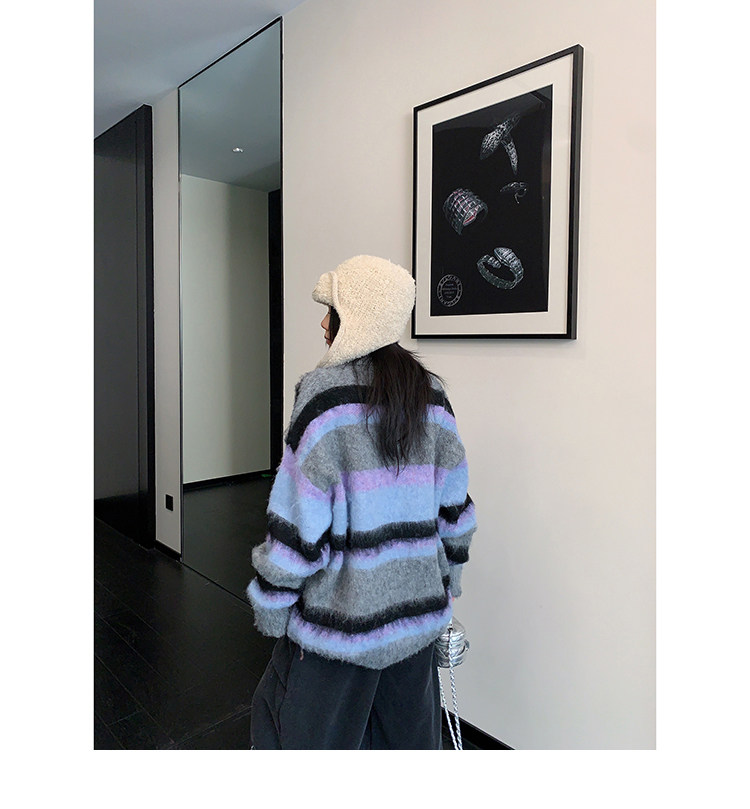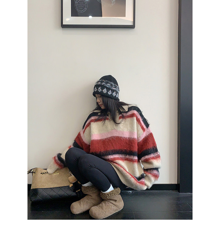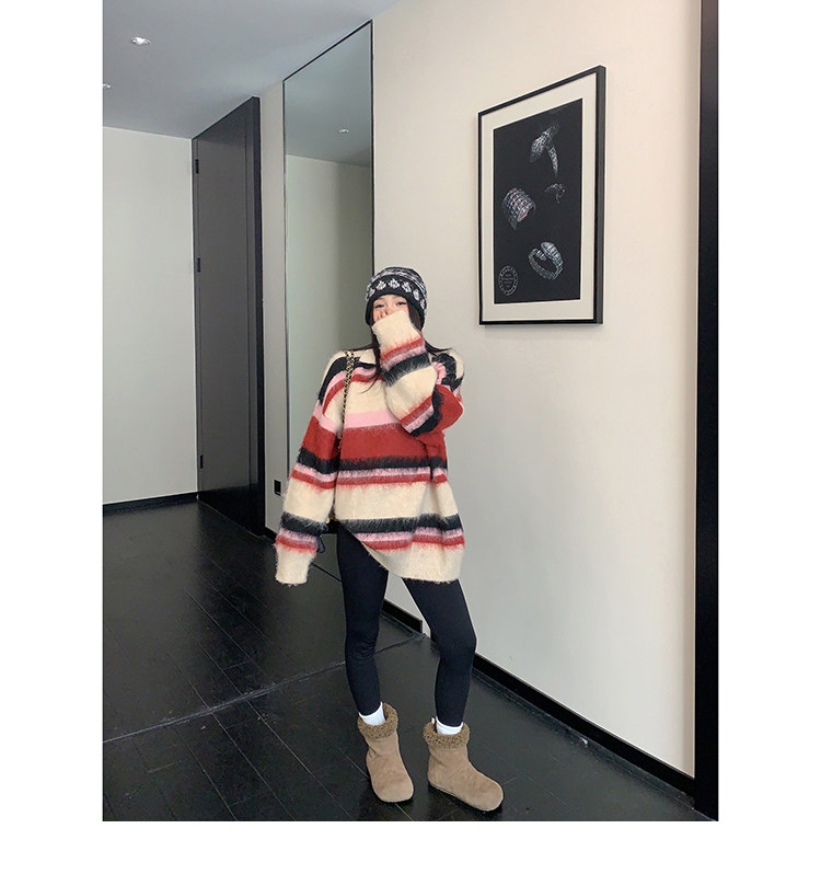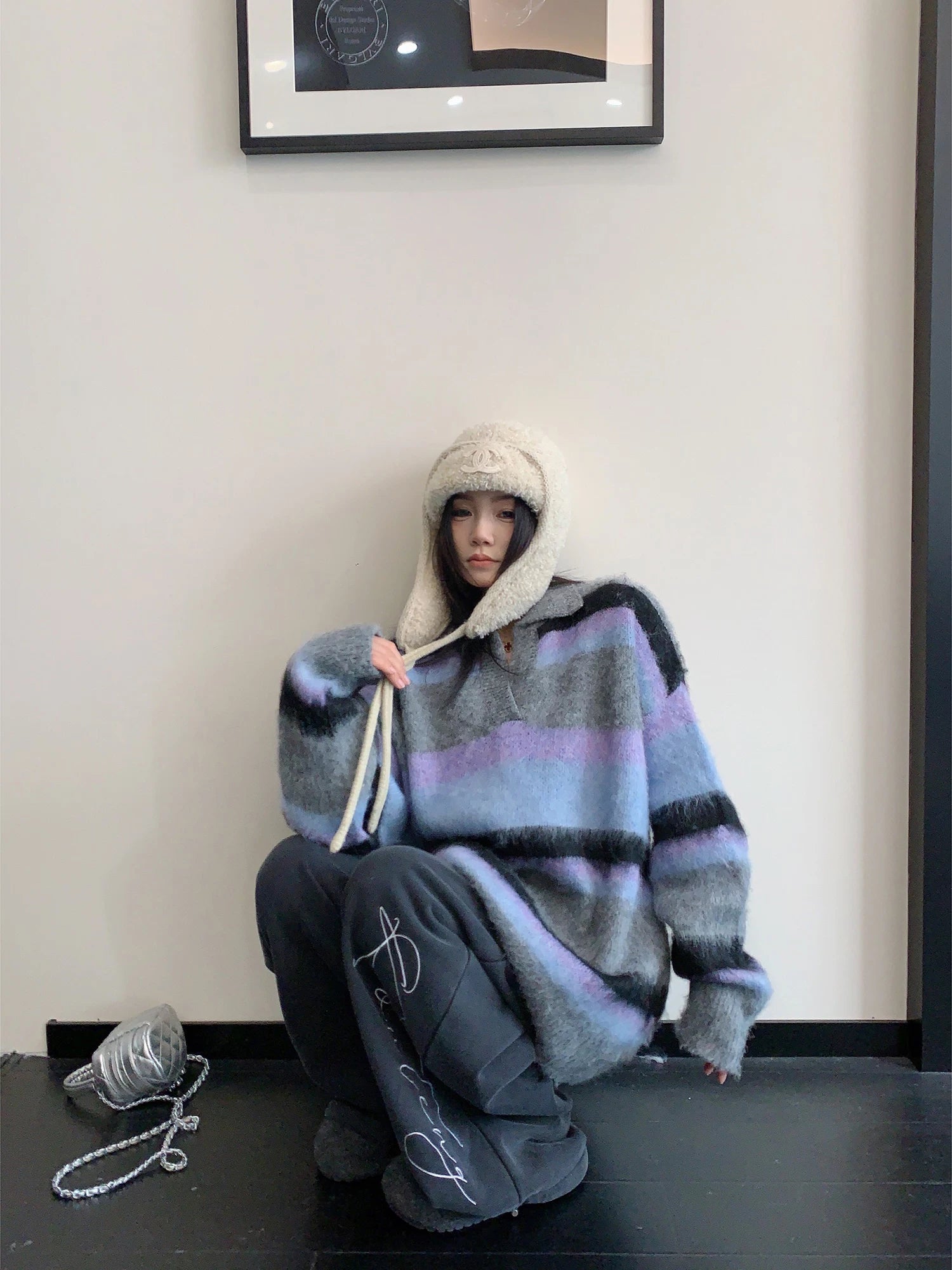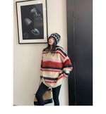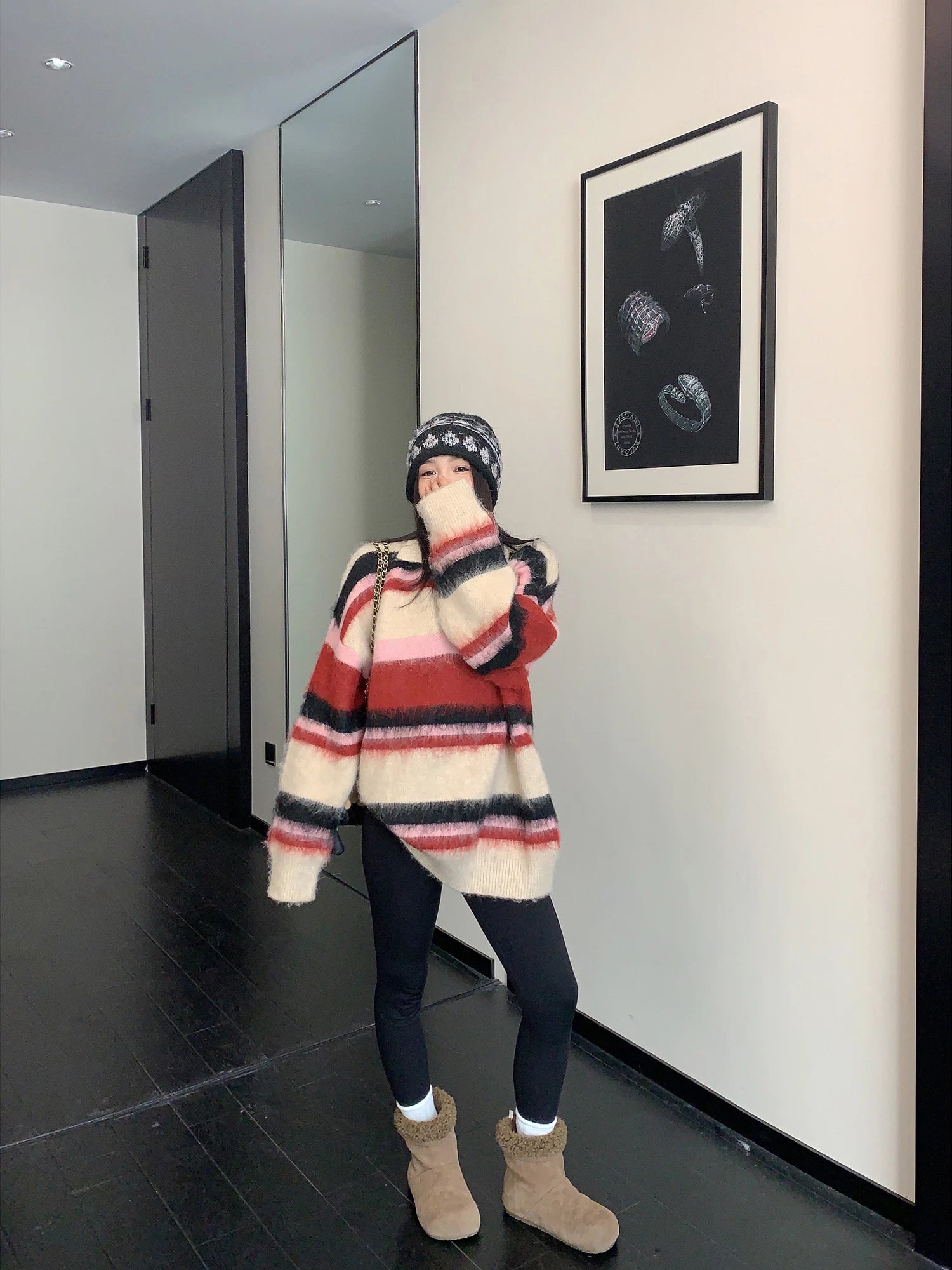 マルチボーダーとシャギーの質感が目を引く、主役級のオーバーサイズニット。