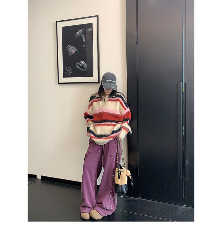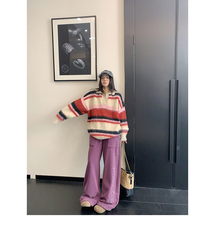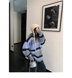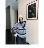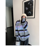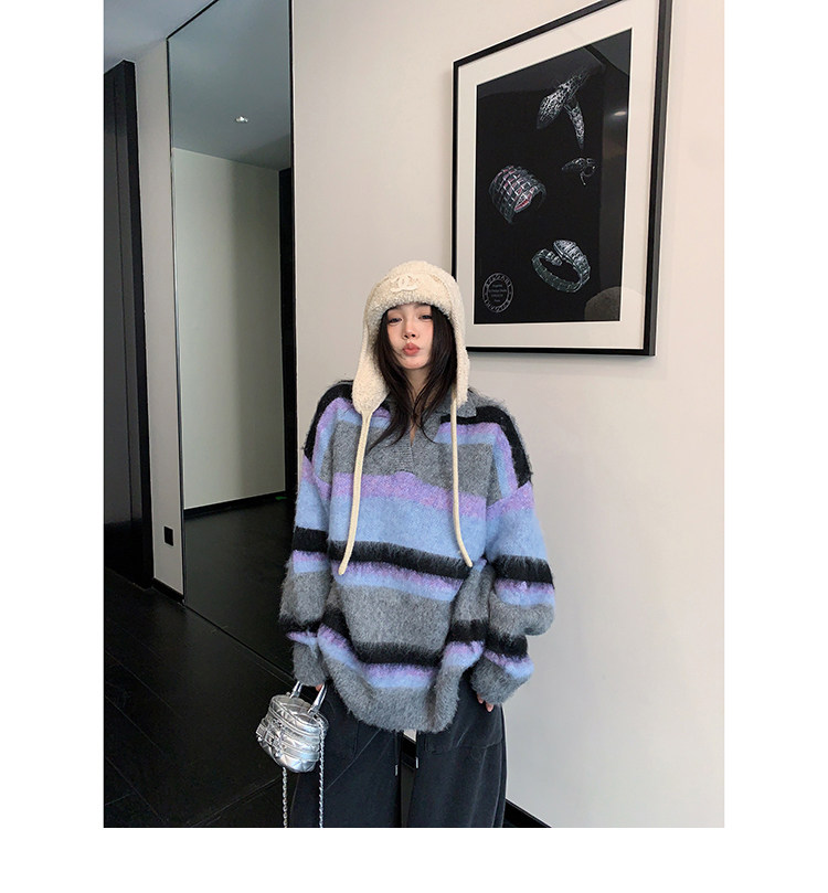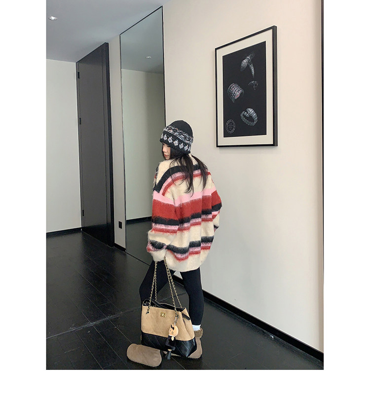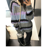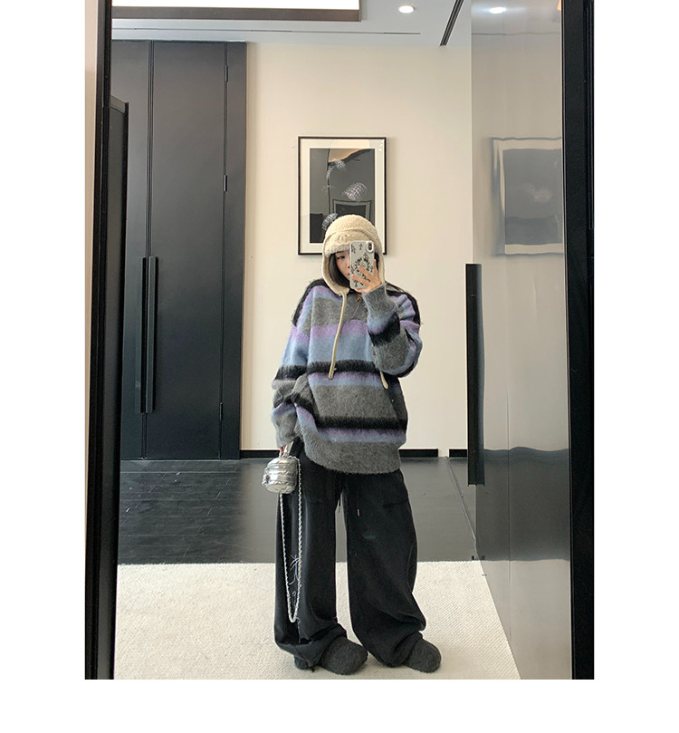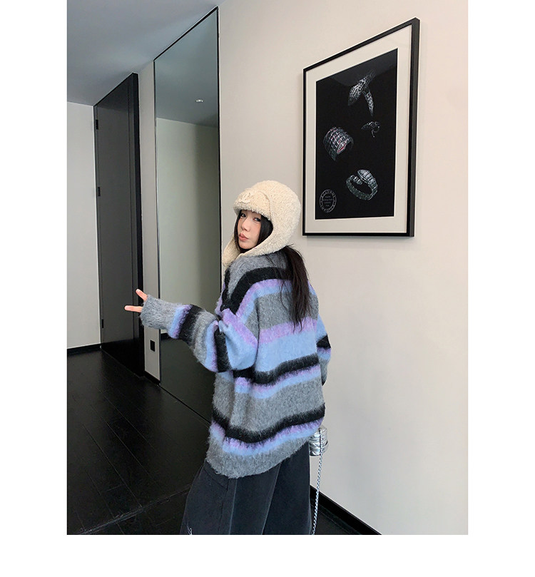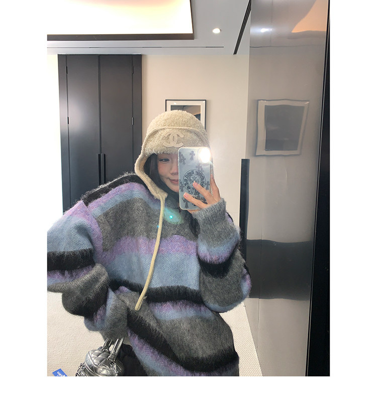 マルチボーダーとシャギーの質感が目を引く、主役級のオーバーサイズニット。