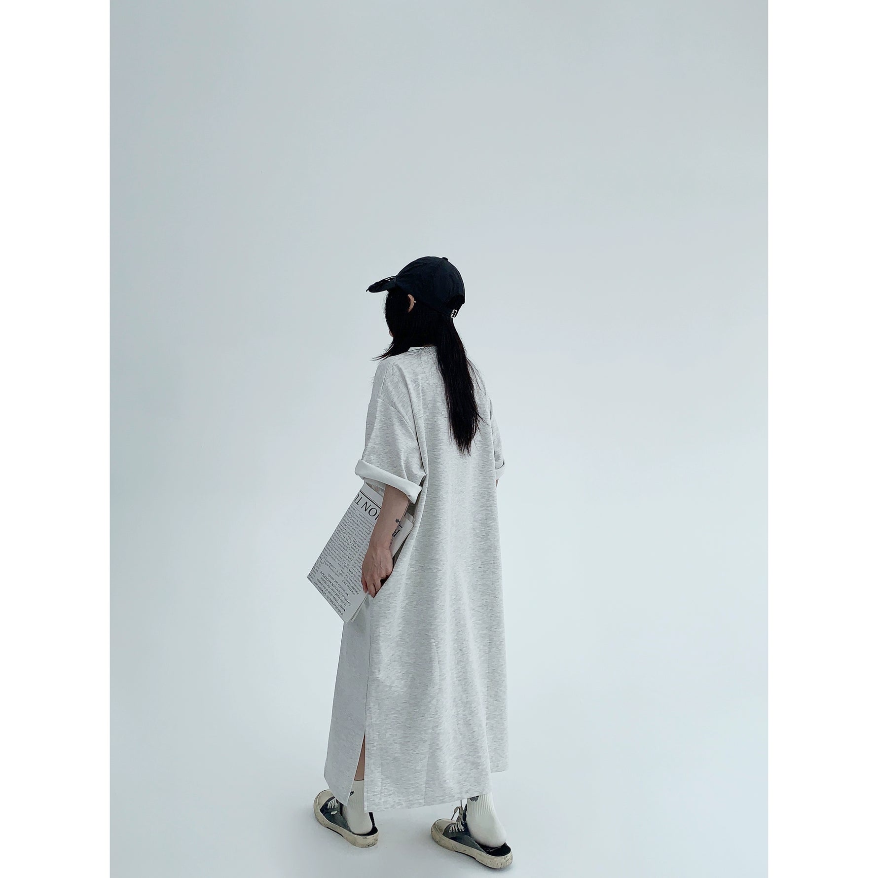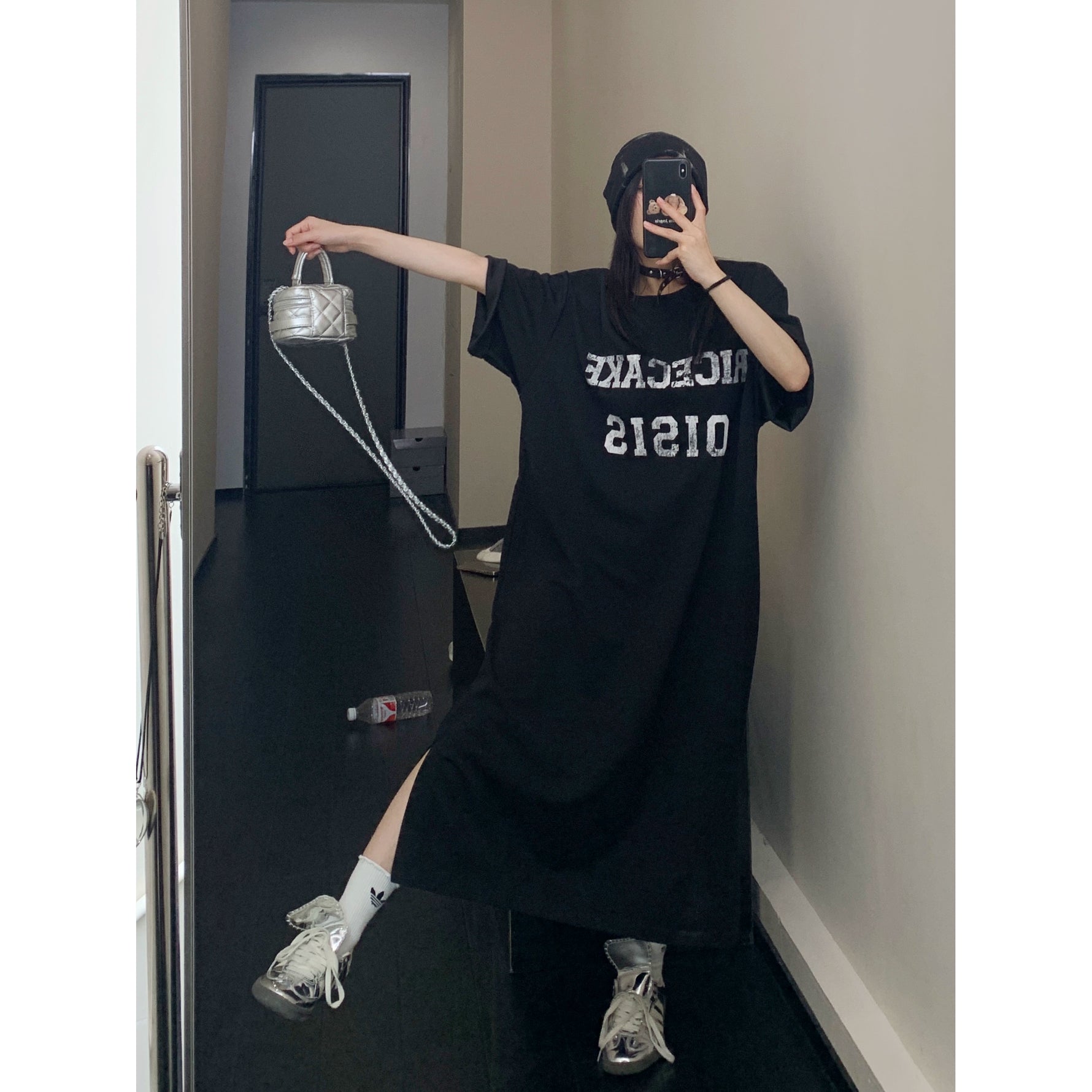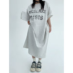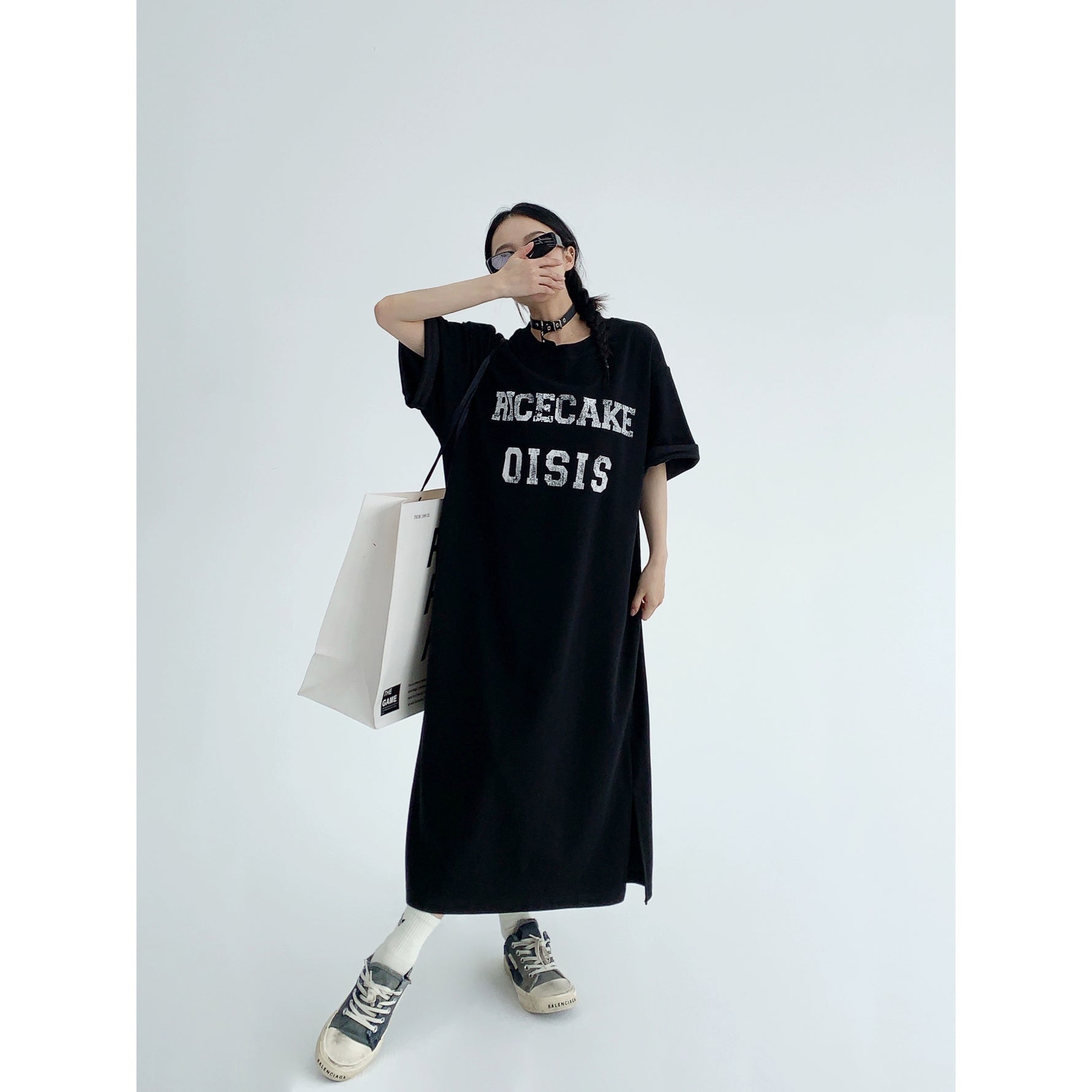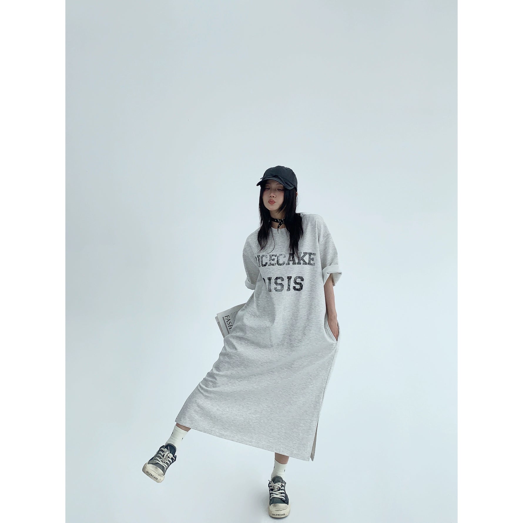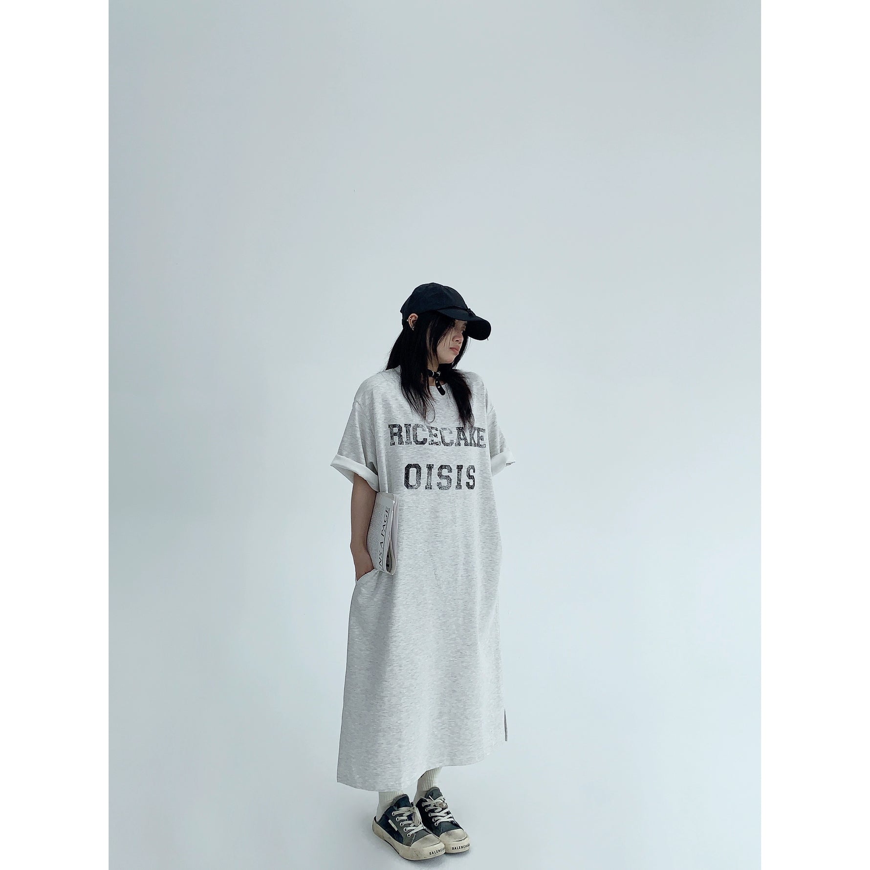 ロゴデザインが目を引く、ゆるっとシルエットのTシャツワンピ。
