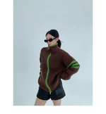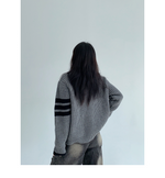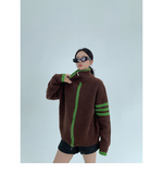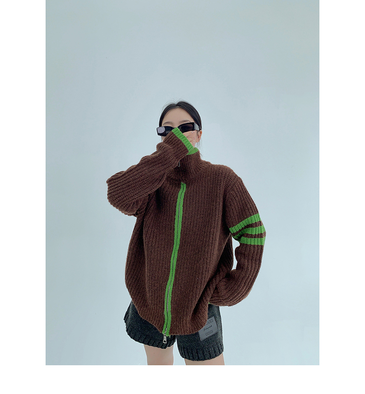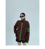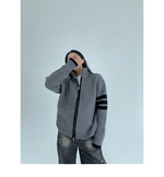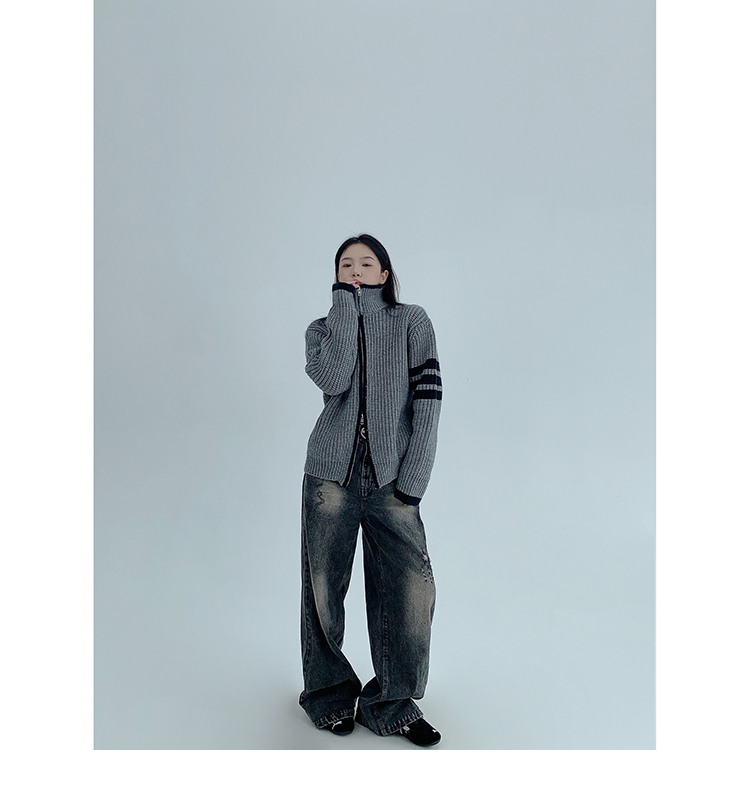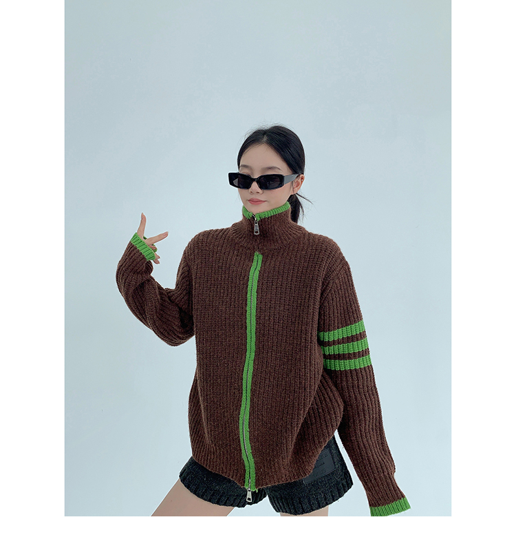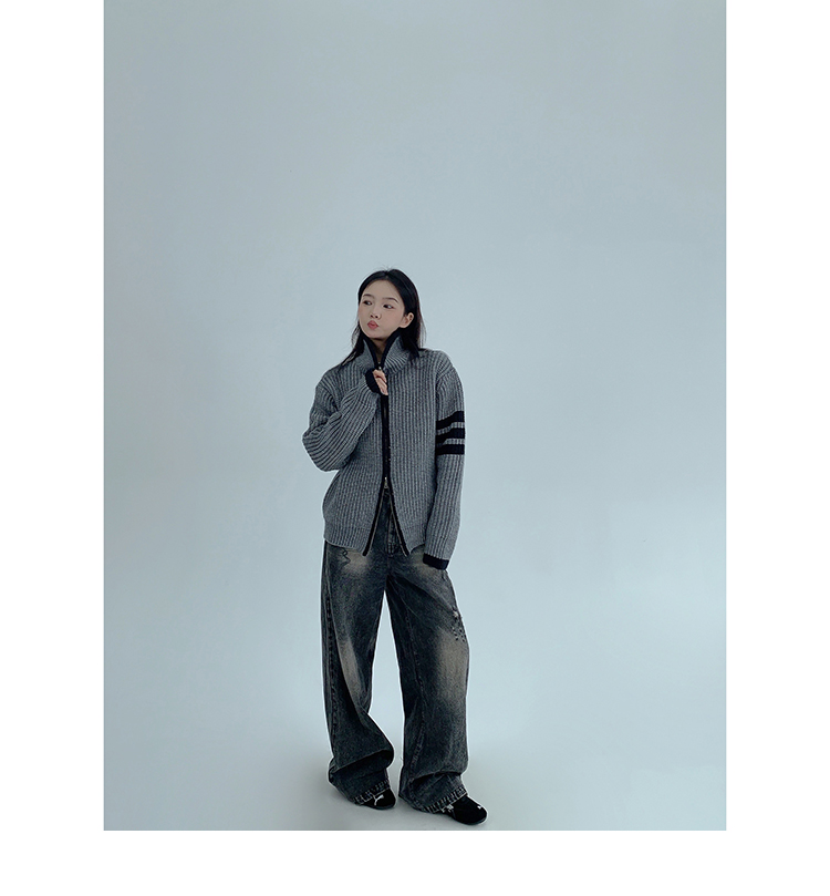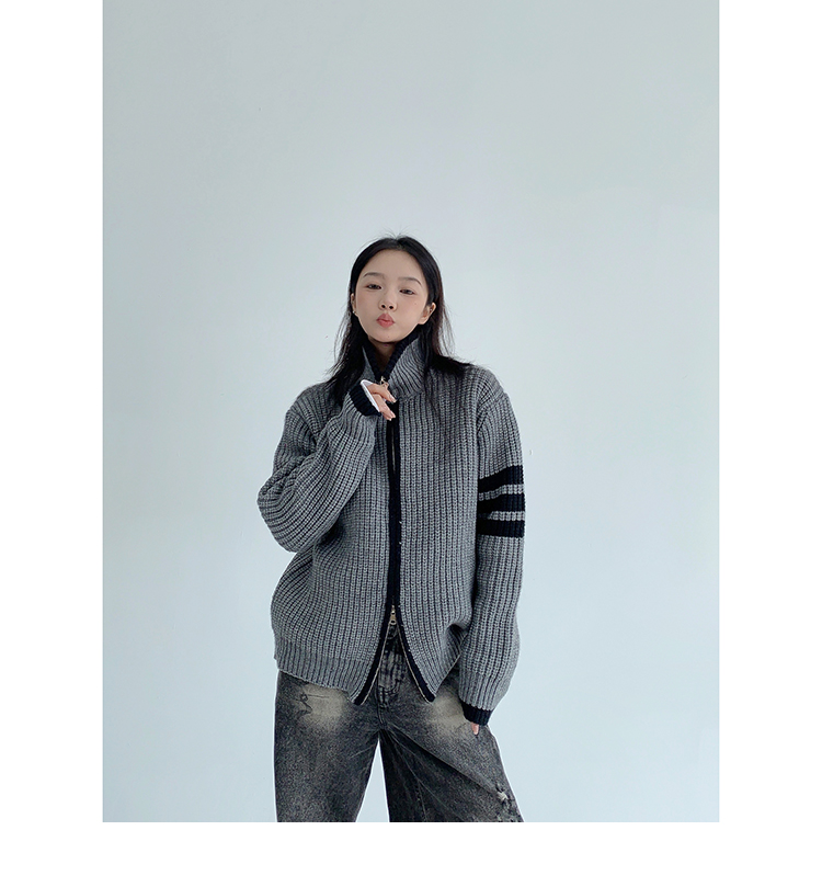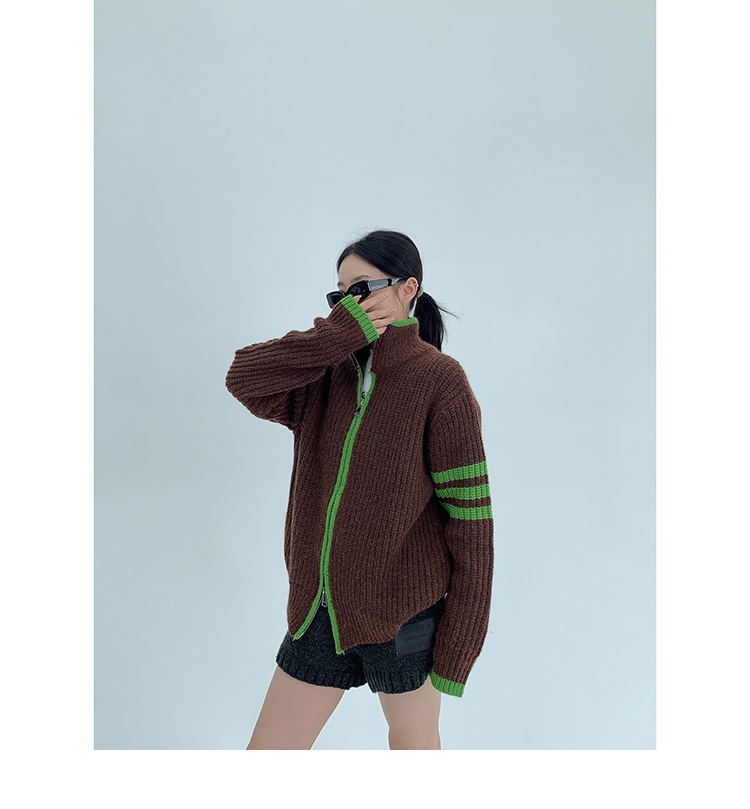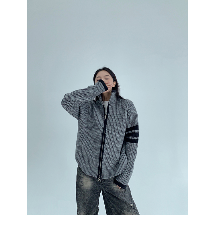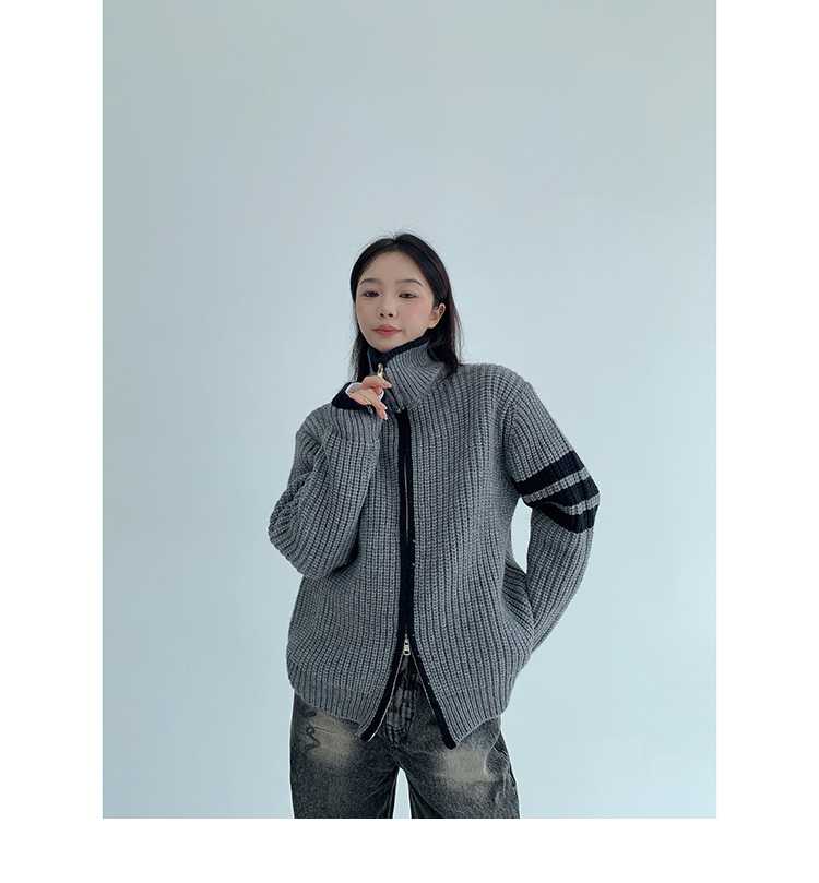 袖のラインがスポーティーなアクセントになった、リブ編みのニットジャケット。