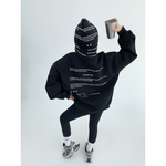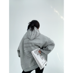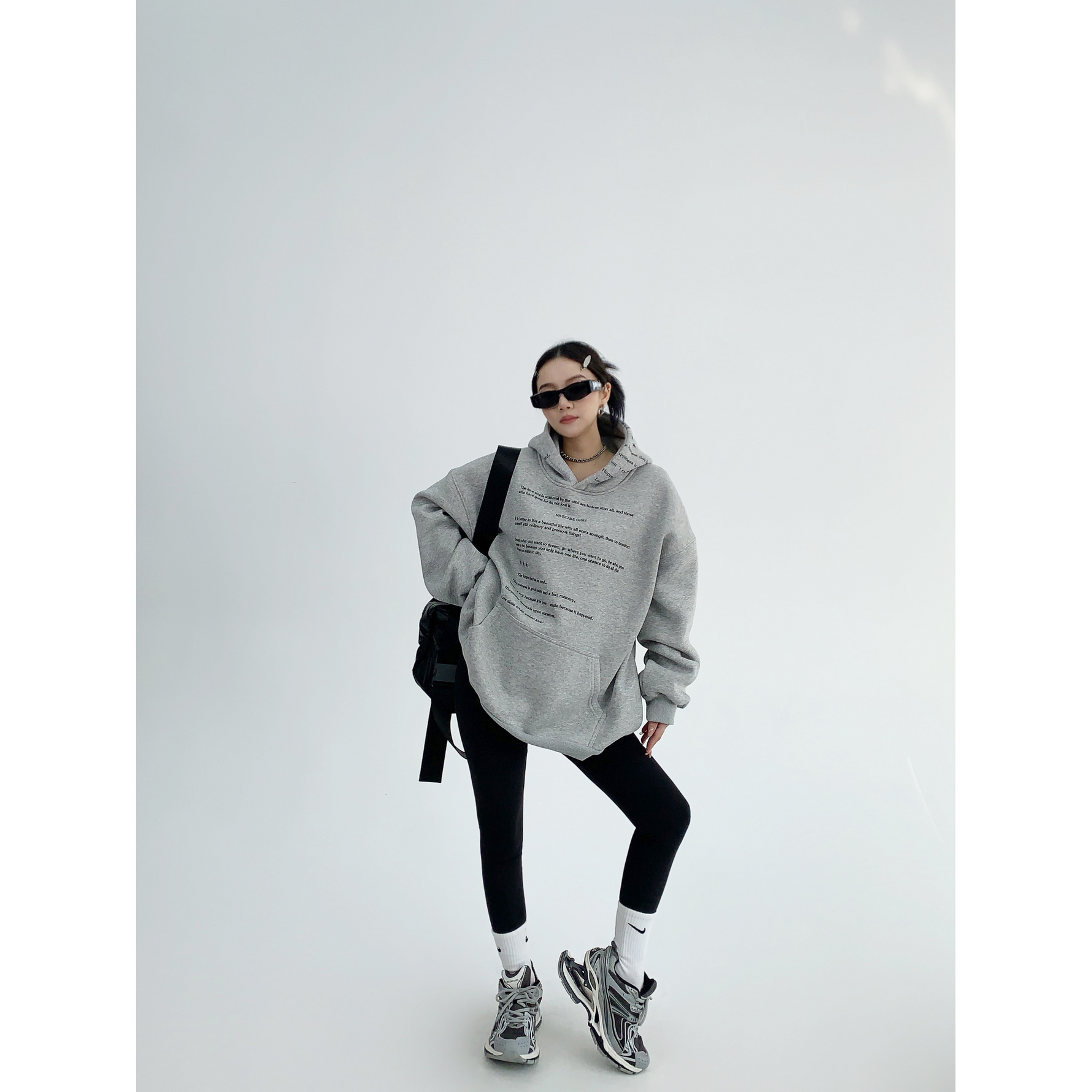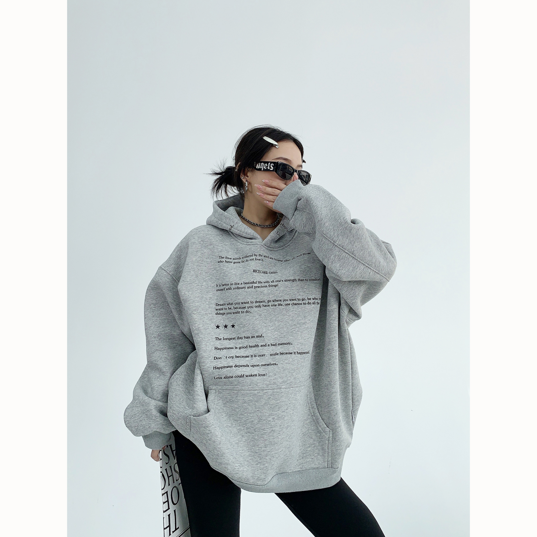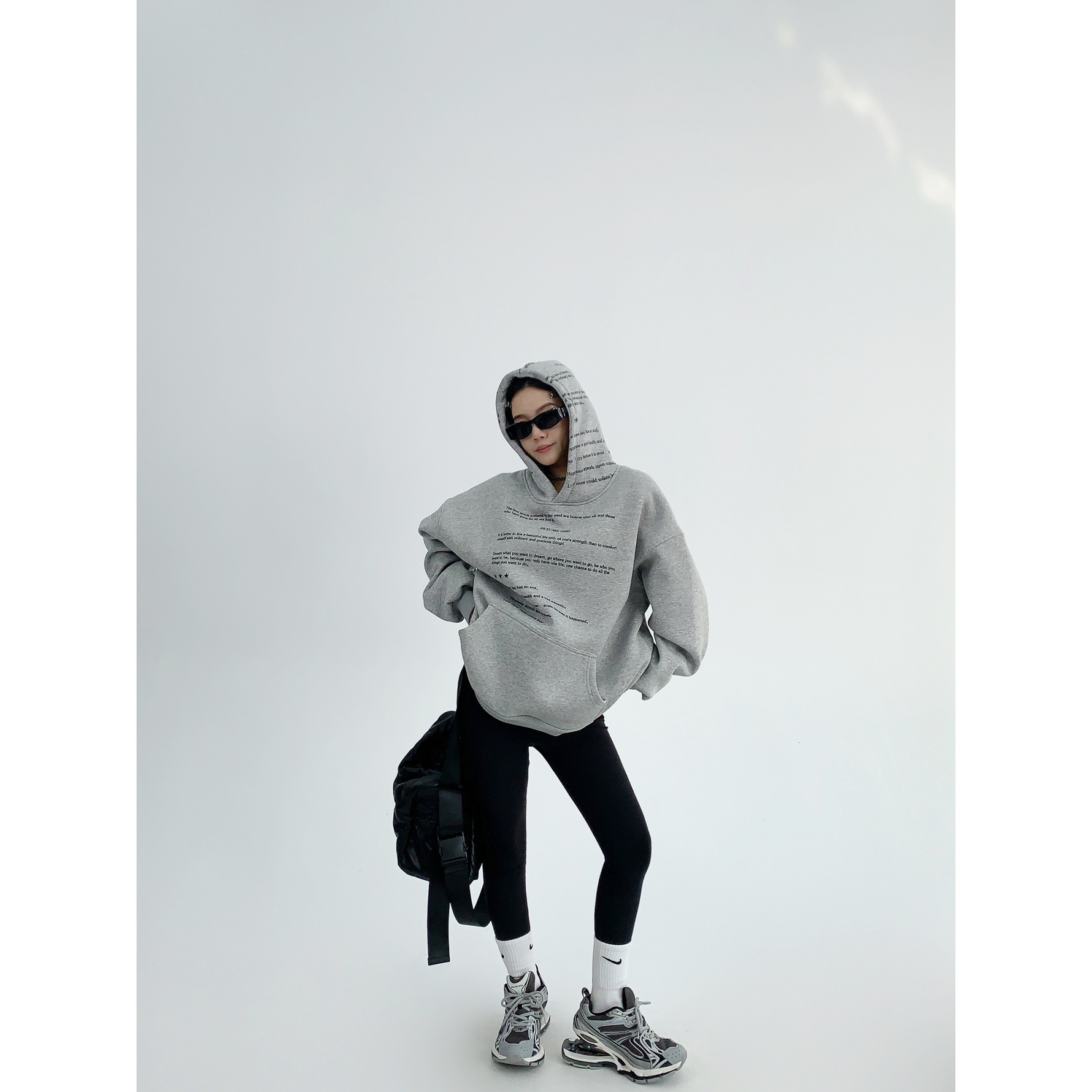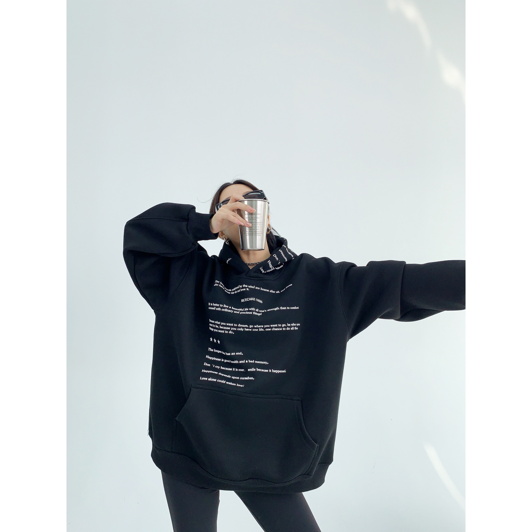 フロントからバック、フードに至るまでプリントされたメッセージロゴがインパクト抜群なフーディー。