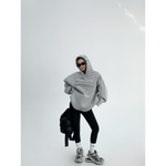 お尻まですっぽり隠れるビッグシルエットで、ワンピース風に着こなすのも可愛いよ。