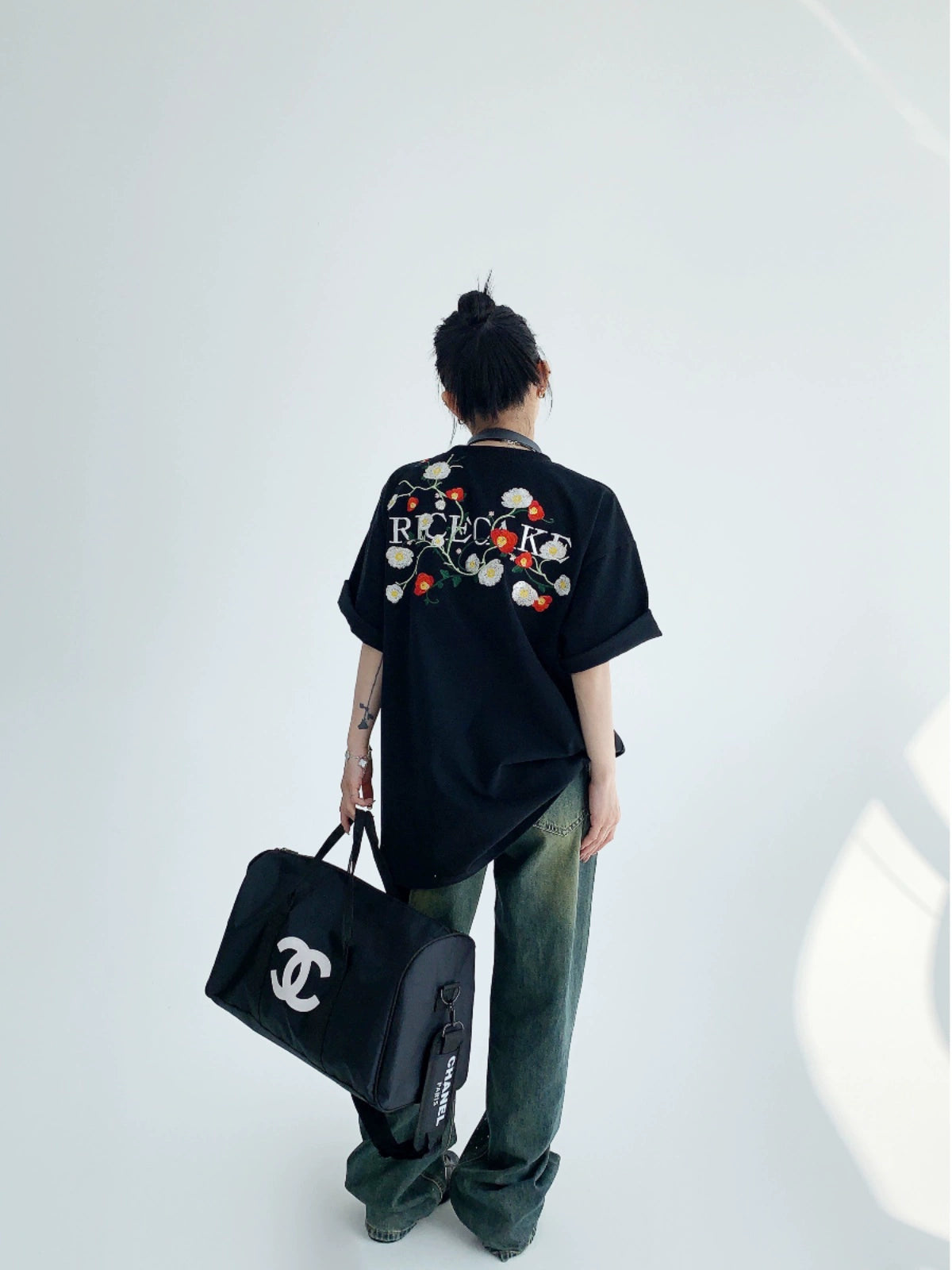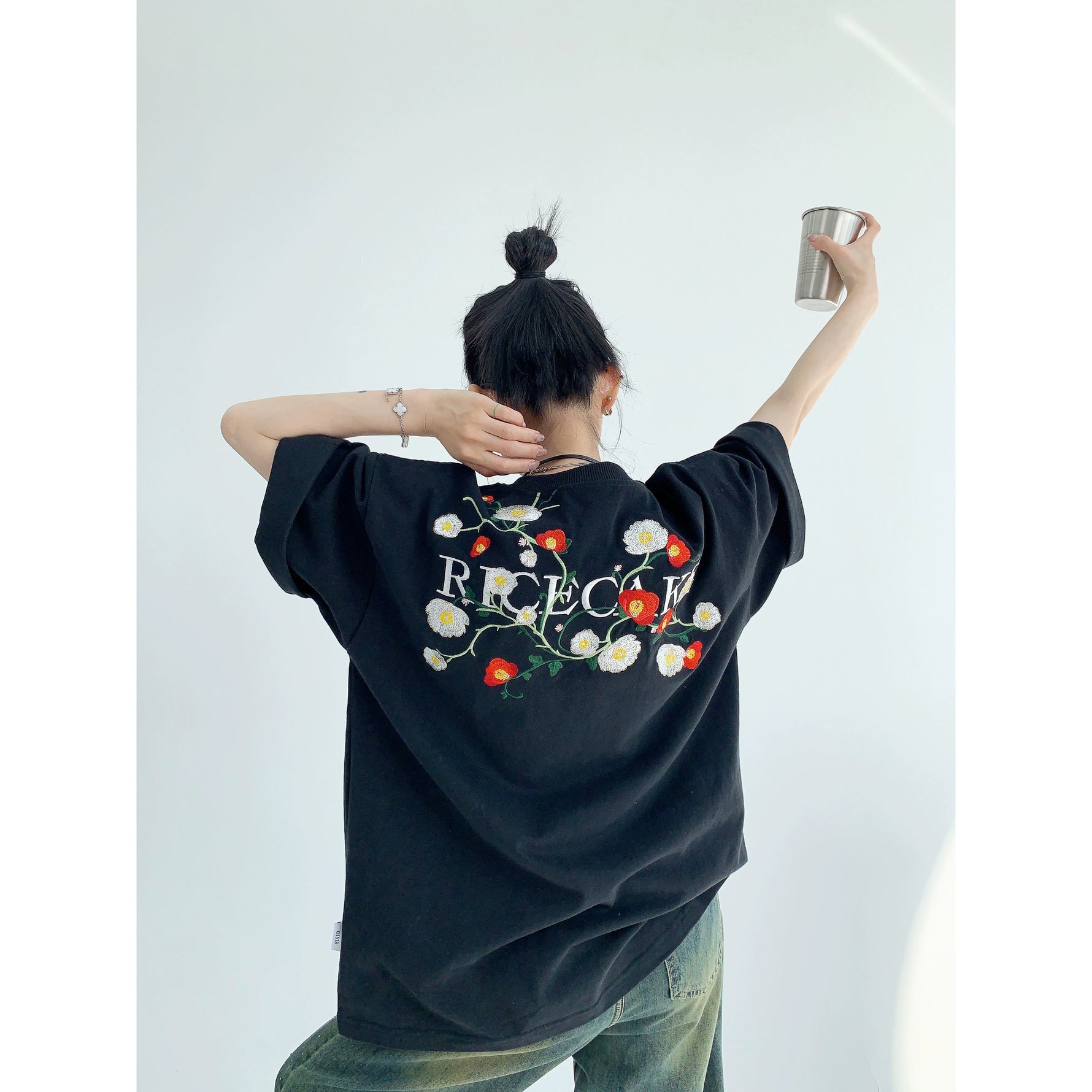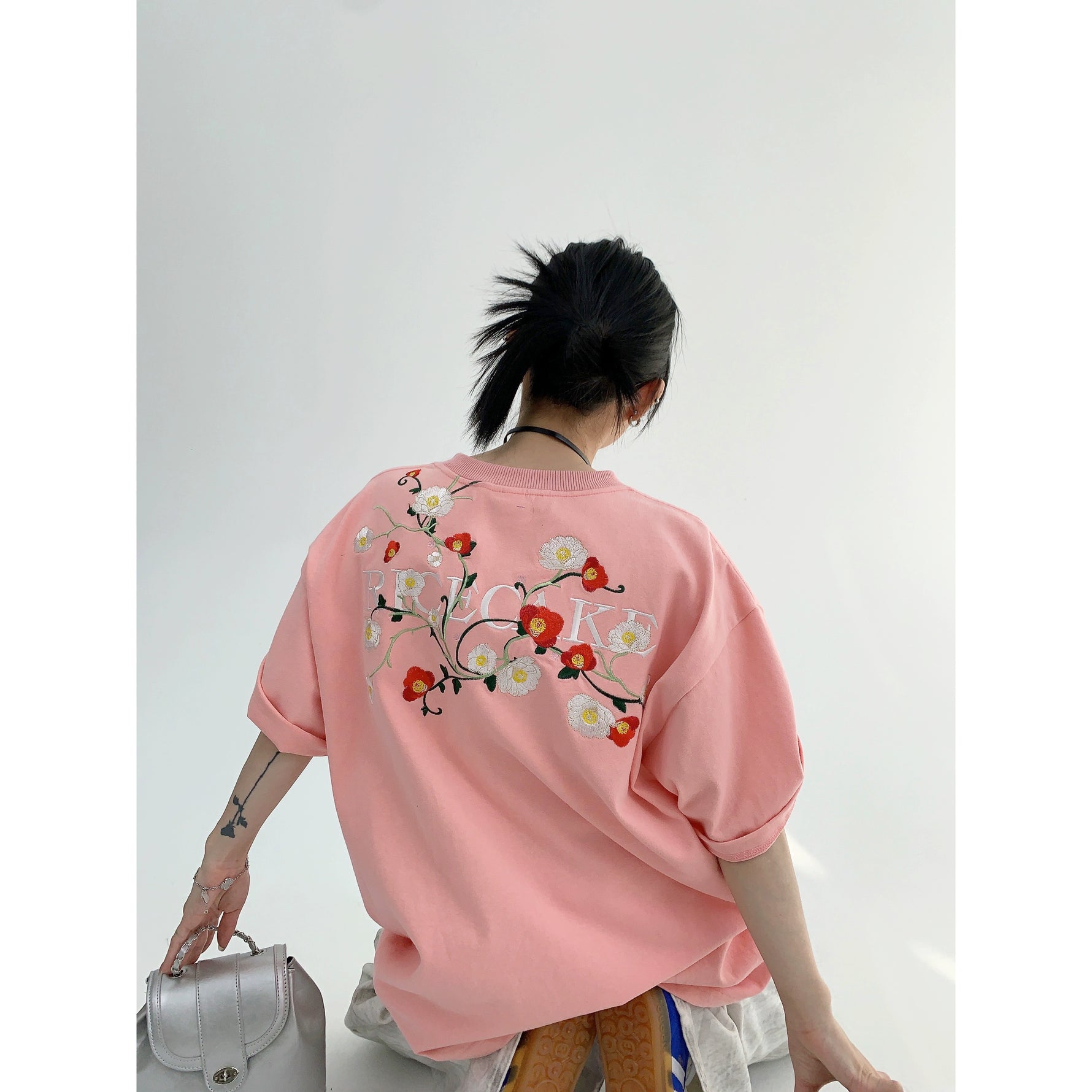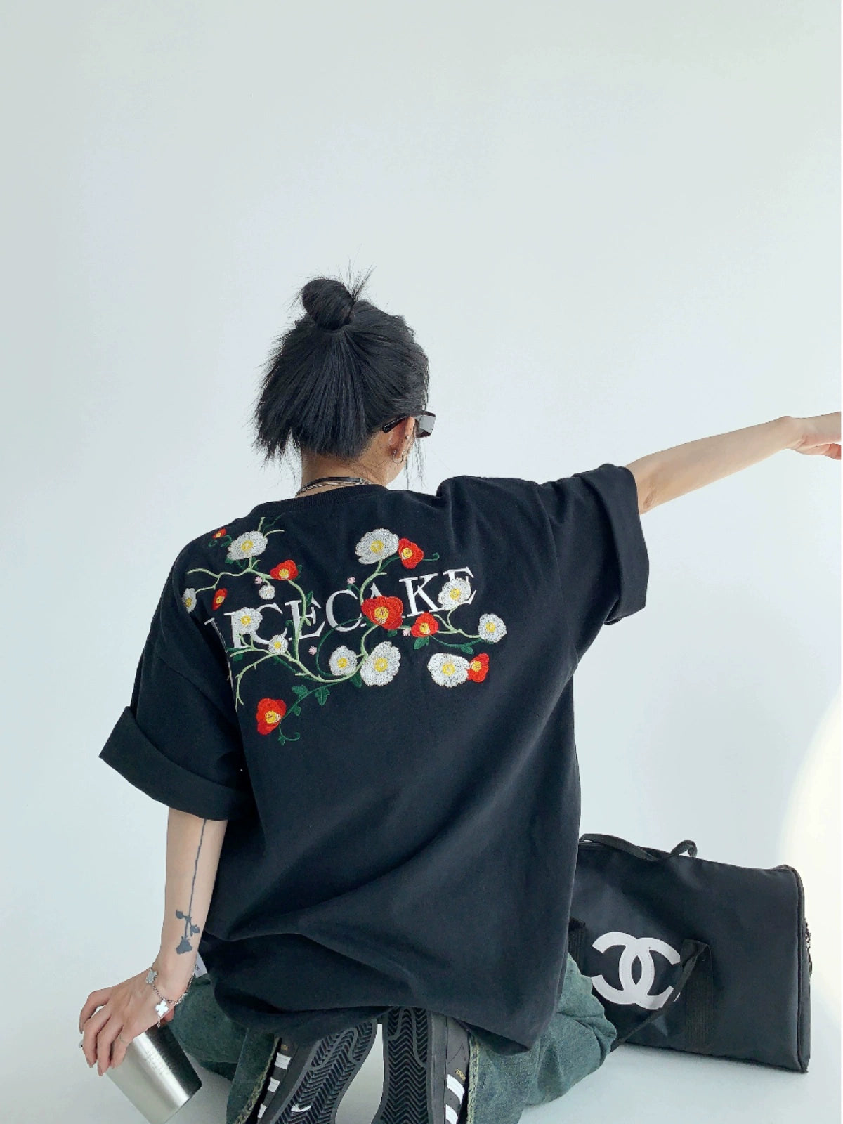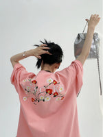 背中に咲くフラワープリントで後ろ姿も主役Tee!
